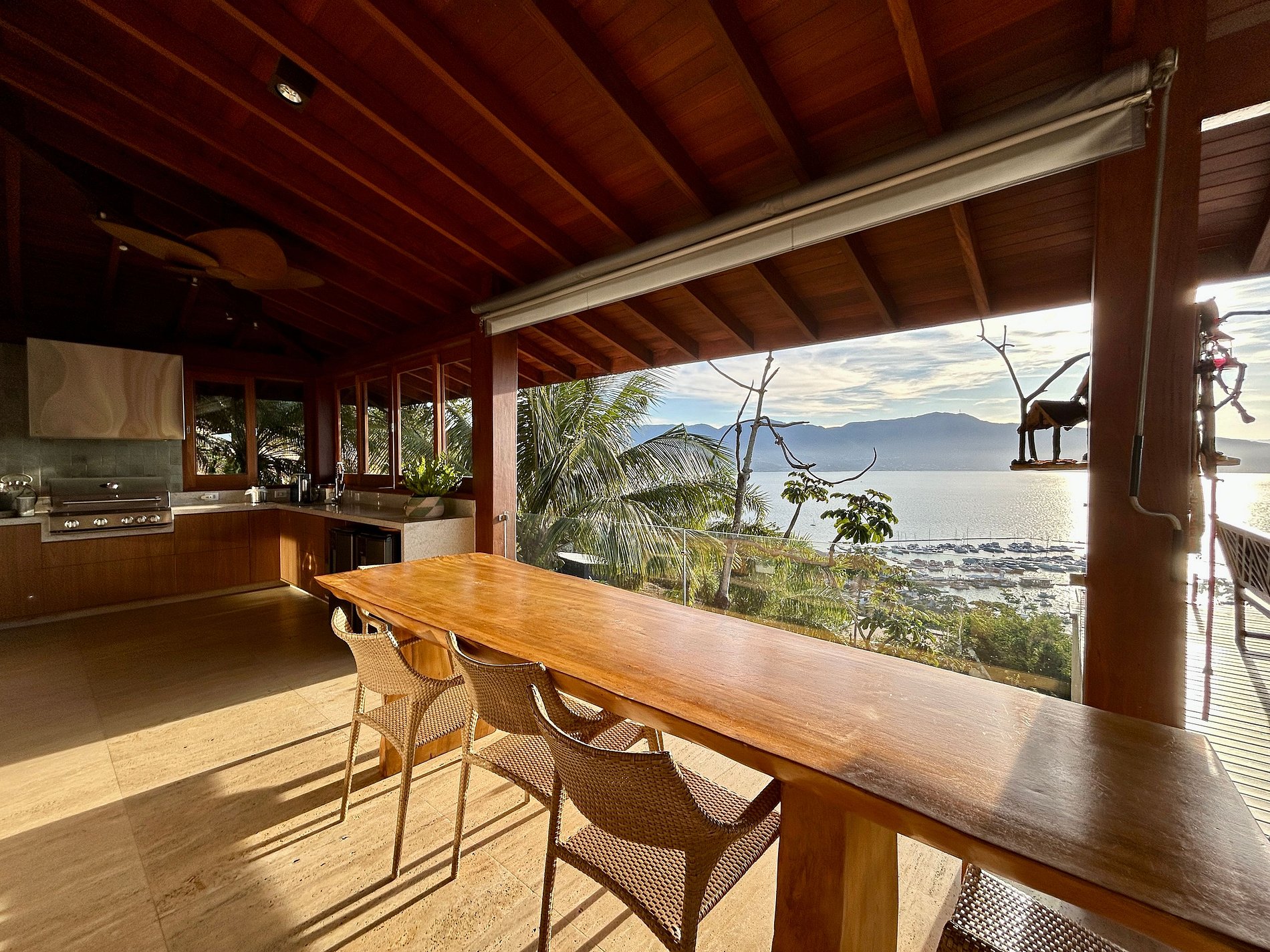 Essa casa une localização perfeita e uma vista deslumbrante! Arquitetura integrada à natureza, em condomínio exclusivo no bairro de Santa Tereza, com fácil acesso às praias de Santa Tereza, Yatch Club e Vila. Para 12 pessoas. São 6 suítes com ar-condicionado. Ambiente interno climatizado e integrado, com salas de estar, jantar, cozinha e varanda gourmet. Sala de TV com Smart TV, canais a cabo e Wi-Fi. Área externa espetacular, com deck, piscina aquecida, hidro, sauna e academia.