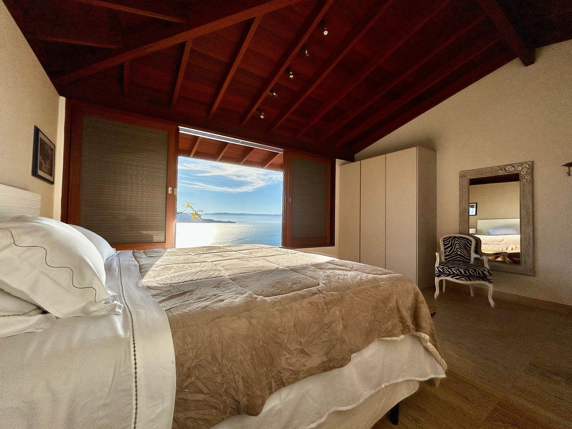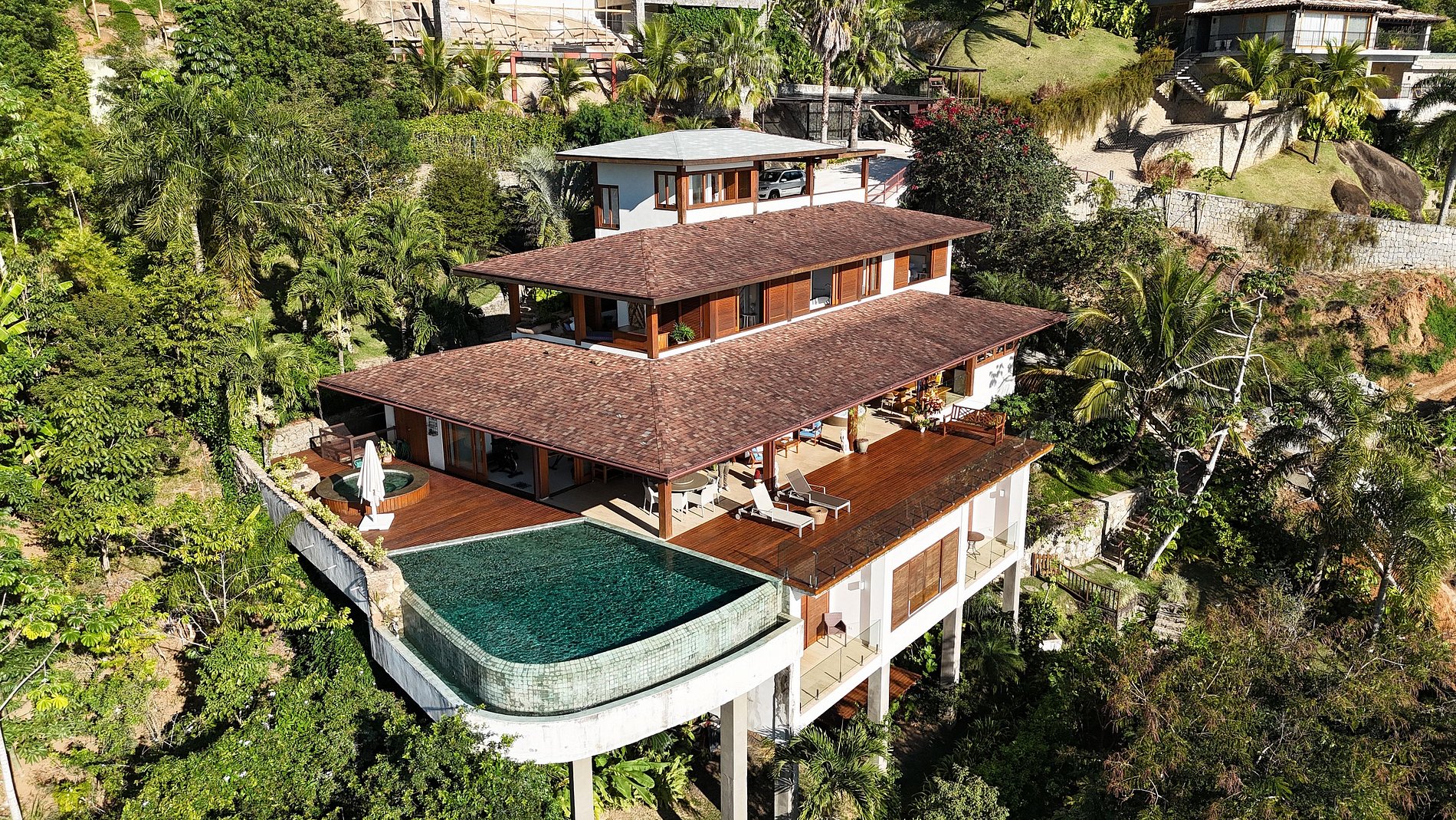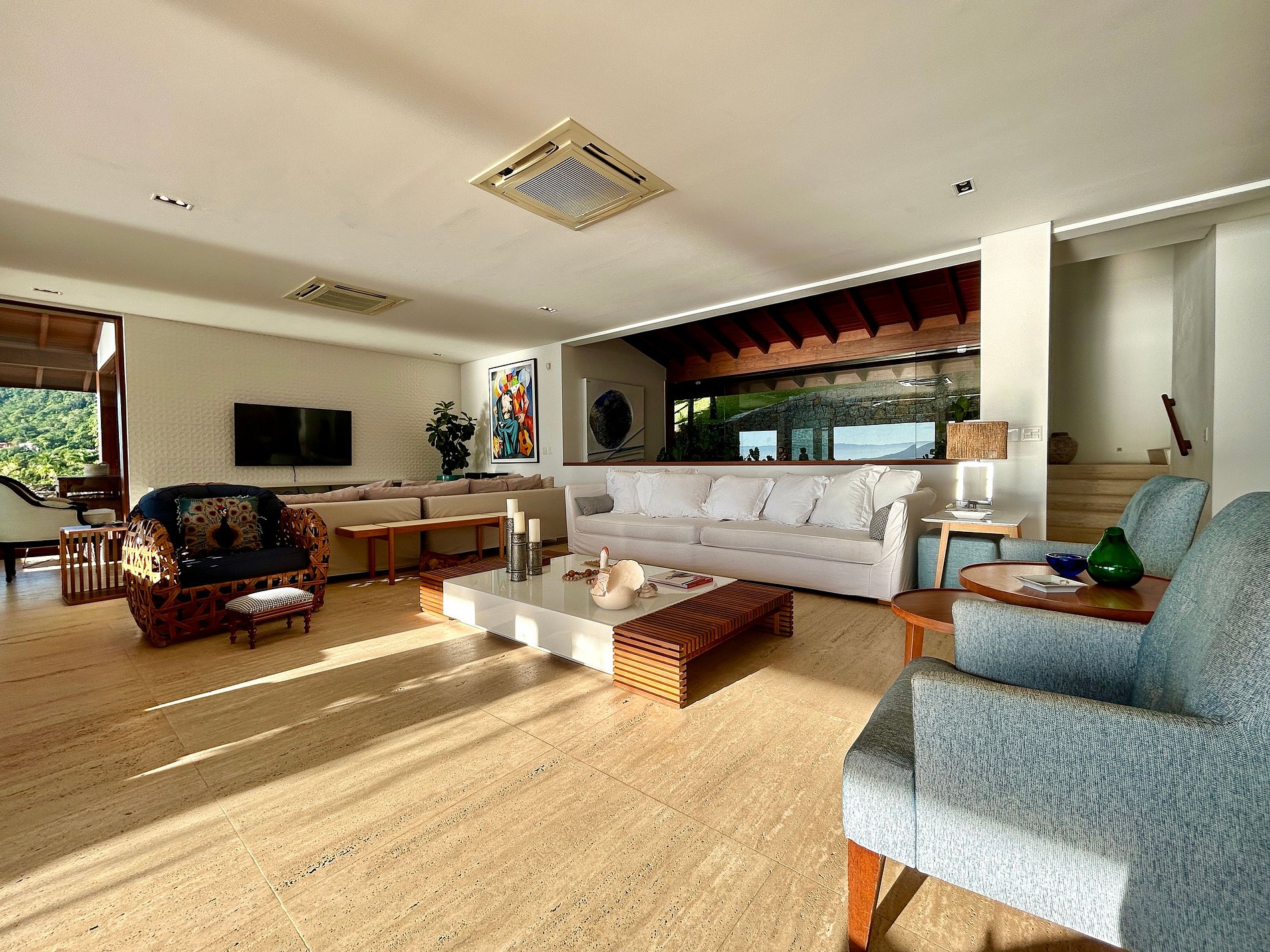 Essa casa une localização perfeita e uma vista deslumbrante! Arquitetura integrada à natureza, em condomínio exclusivo no bairro de Santa Tereza, com fácil acesso às praias de Santa Tereza, Yatch Club e Vila. Para 12 pessoas. São 6 suítes com ar-condicionado. Ambiente interno climatizado e integrado, com salas de estar, jantar, cozinha e varanda gourmet. Sala de TV com Smart TV, canais a cabo e Wi-Fi. Área externa espetacular, com deck, piscina aquecida, hidro, sauna e academia.