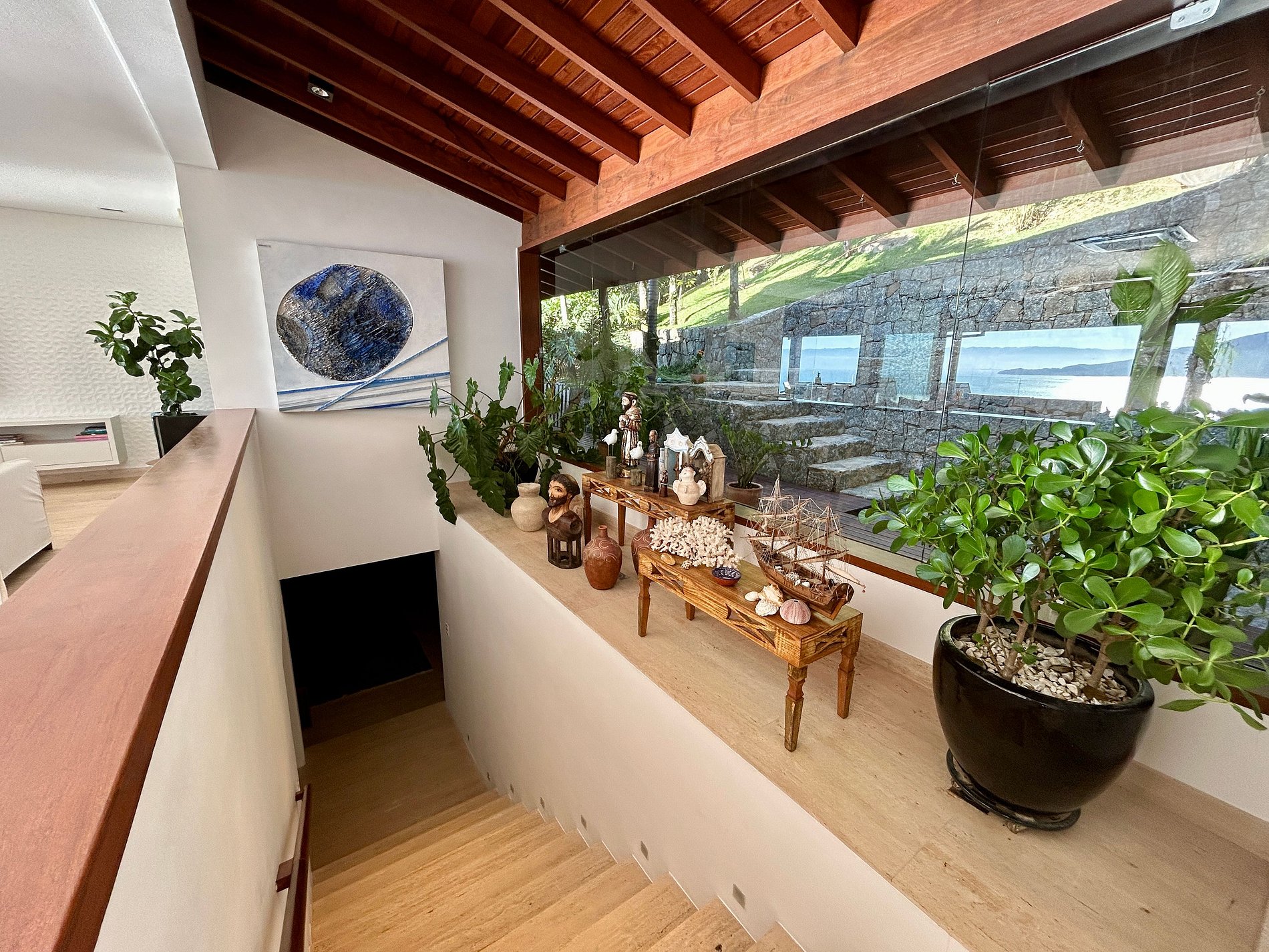 - Casa com arquitetura moderna e decoração de muito bom gosto, totalmente integrada à natureza, com localização privilegiada, em no exclusivo condomínio Indaiá, de apenas 8 casas, próxima à praia de Santa Tereza e Barreiros, consideradas as mais belas e calmas do Norte da ilha, frequentada principalmente por veranistas;