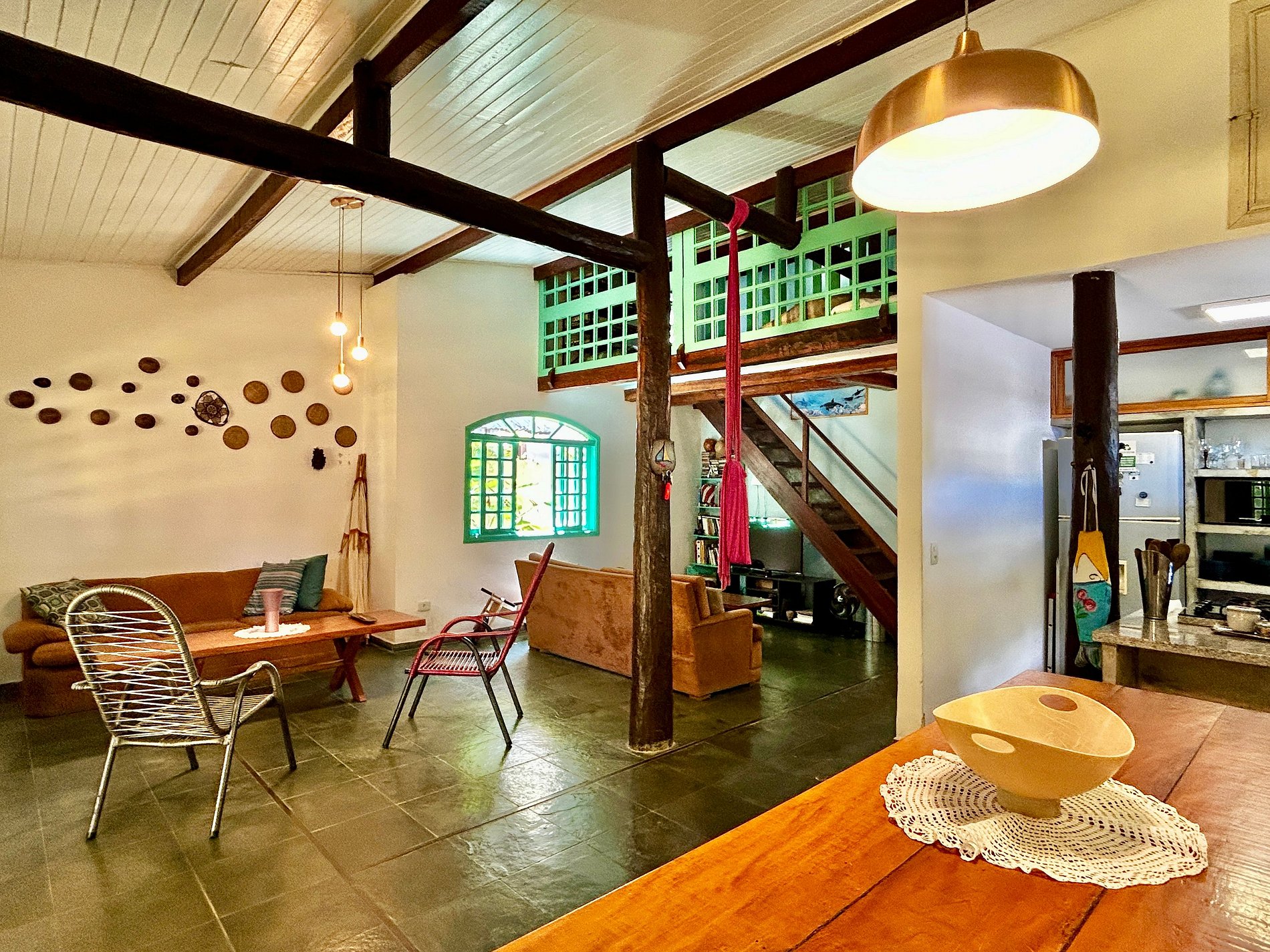 - Casa acolhedora, iluminada e arejada, com salas de estar, jantar e cozinha integradas;