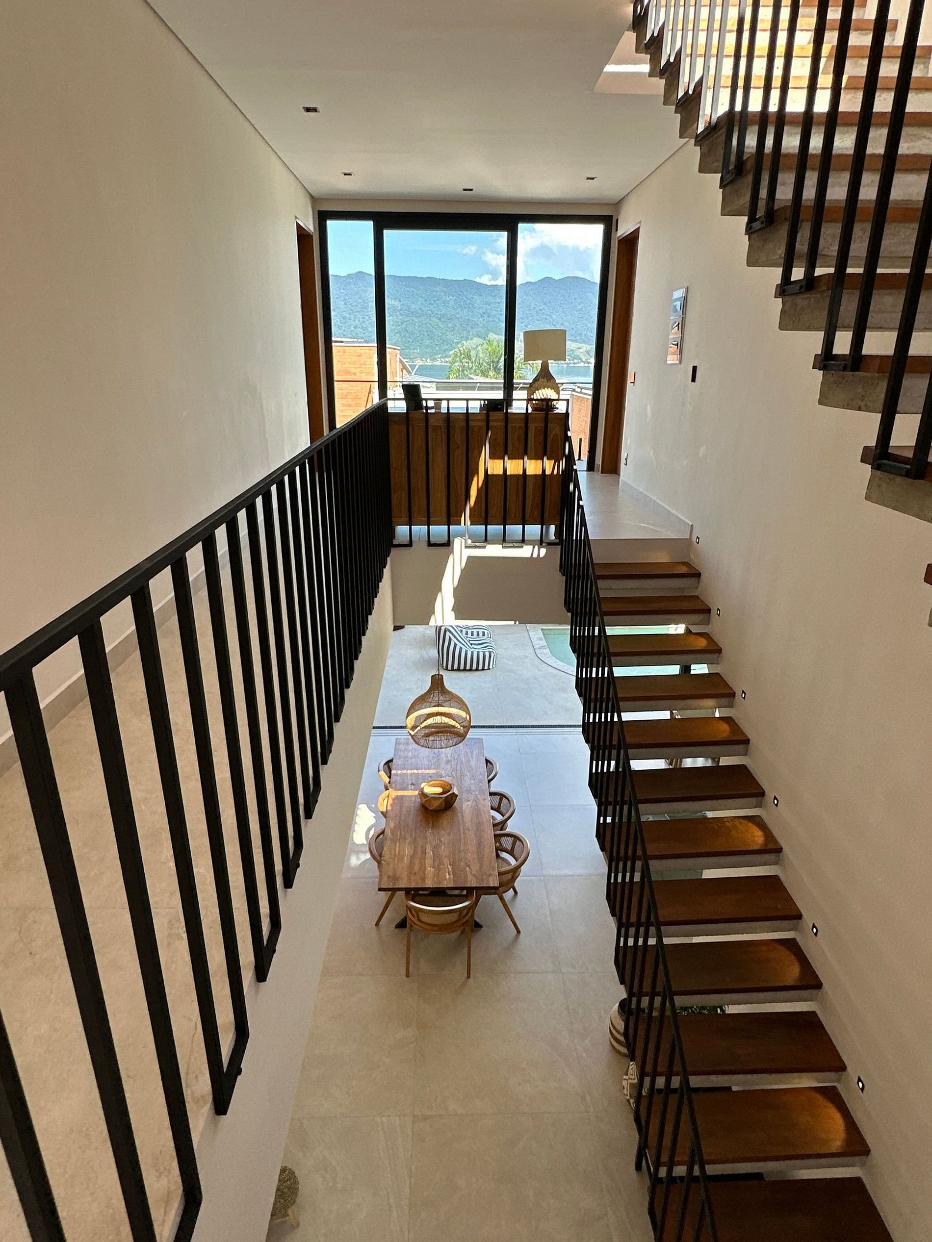 Casa nova, iluminada e espaçosa, com vista incrível mar-montanha, a 100m da praia! Ideal para até 8 pessoas, possui 4 suítes com ar-condicionado (suíte master com hidromassagem). Ambientes integrados com salas de estar, jantar e TV com Smart TV, Wi-Fi e canais a cabo. Área externa espetacular com piscina aquecida, churrasqueira, forno de pizza, fogueira e 2 vagas. Próxima à Vila Histórica e Perequê. Conforto, estilo e localização perfeita para sua estadia!