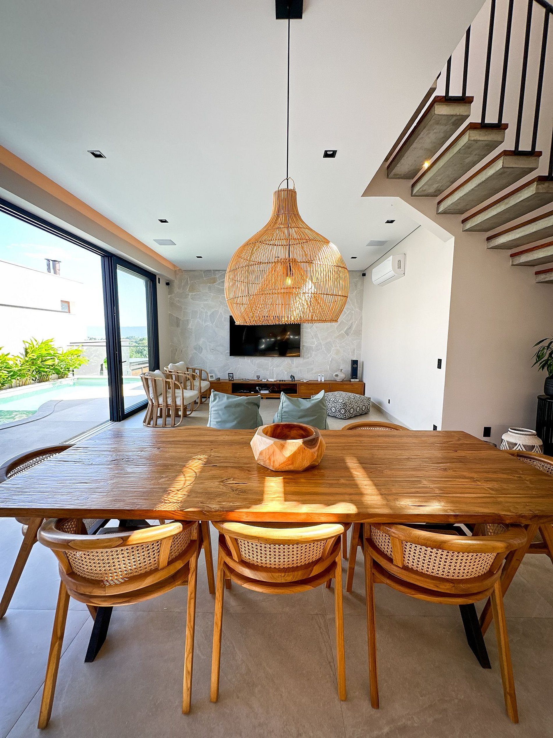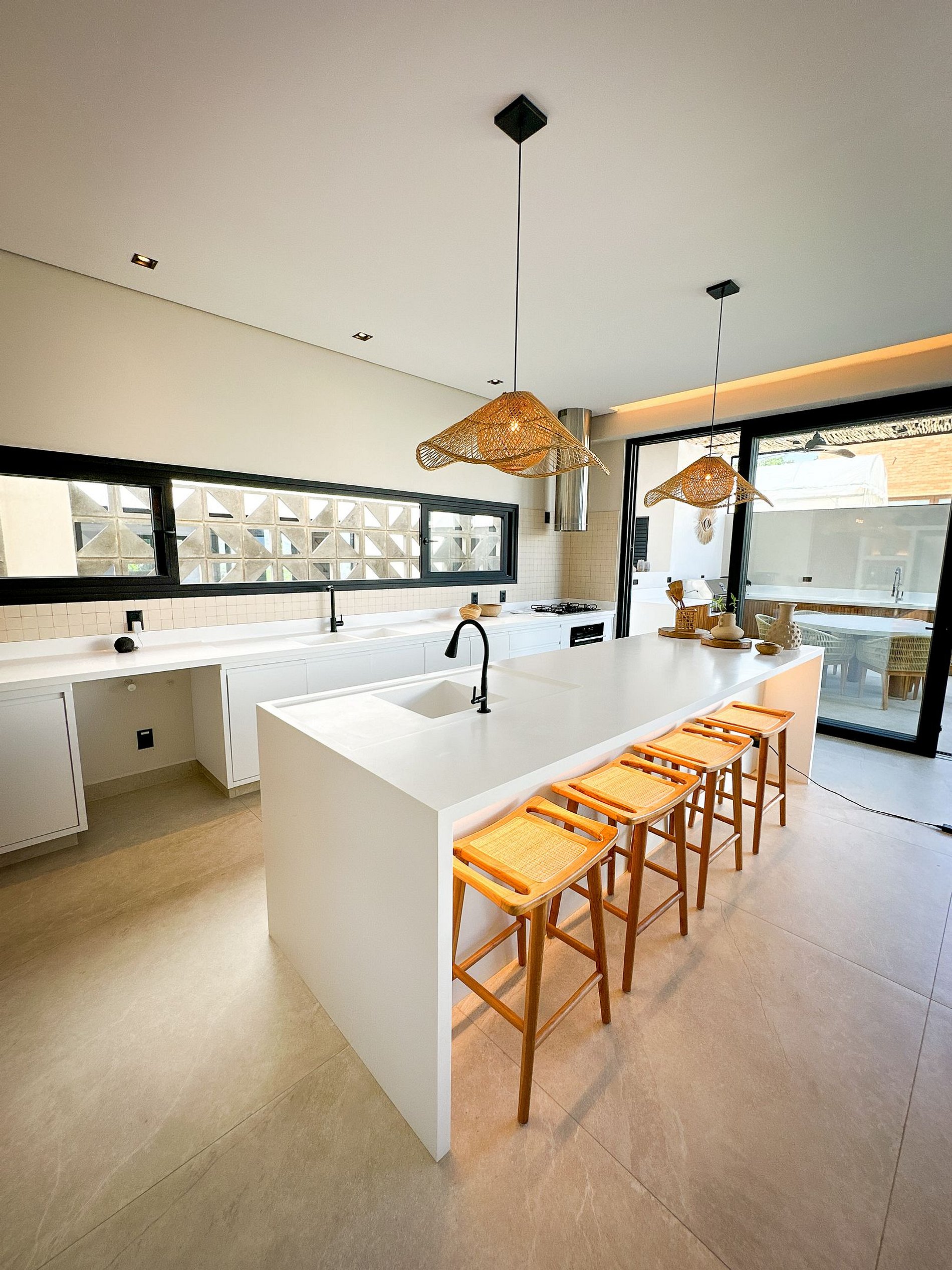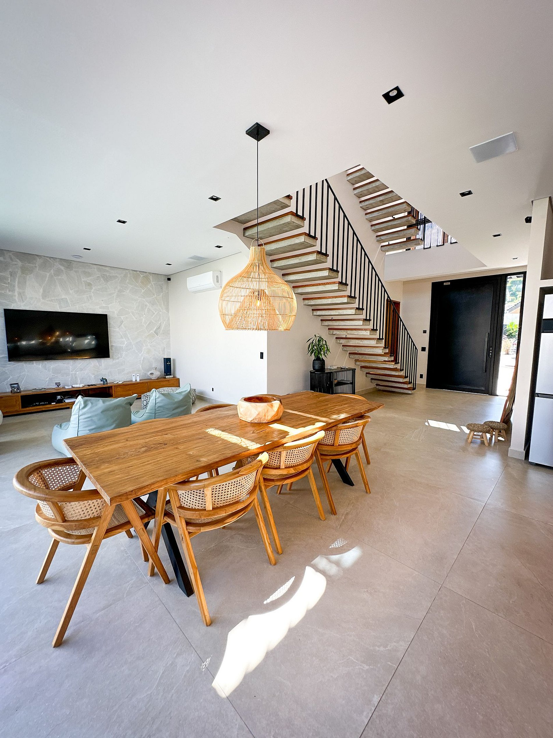 - Ambiente interno climatizado e todo integrado com lavabo, salas de estar, jantar TV e cozinha completa;