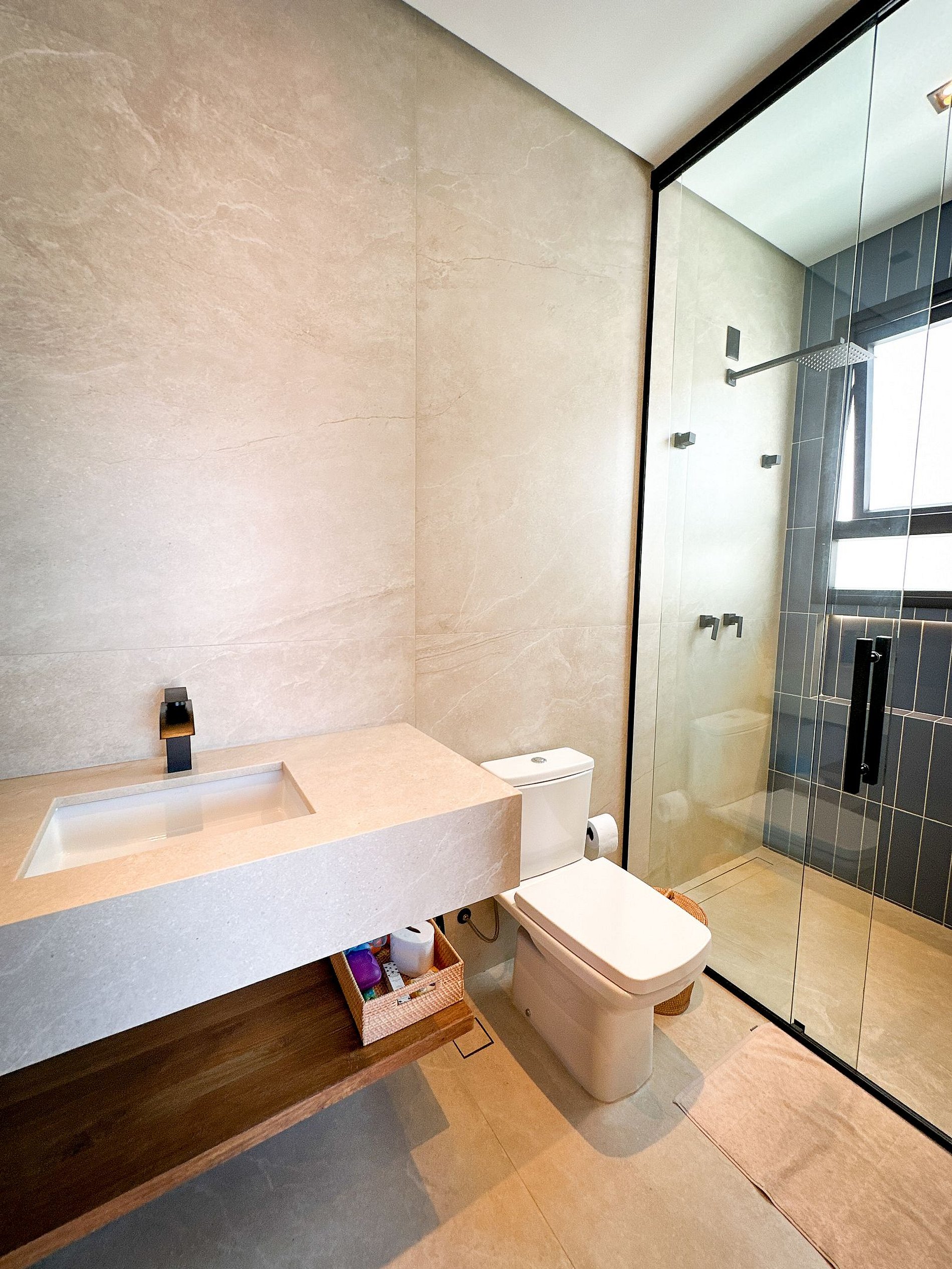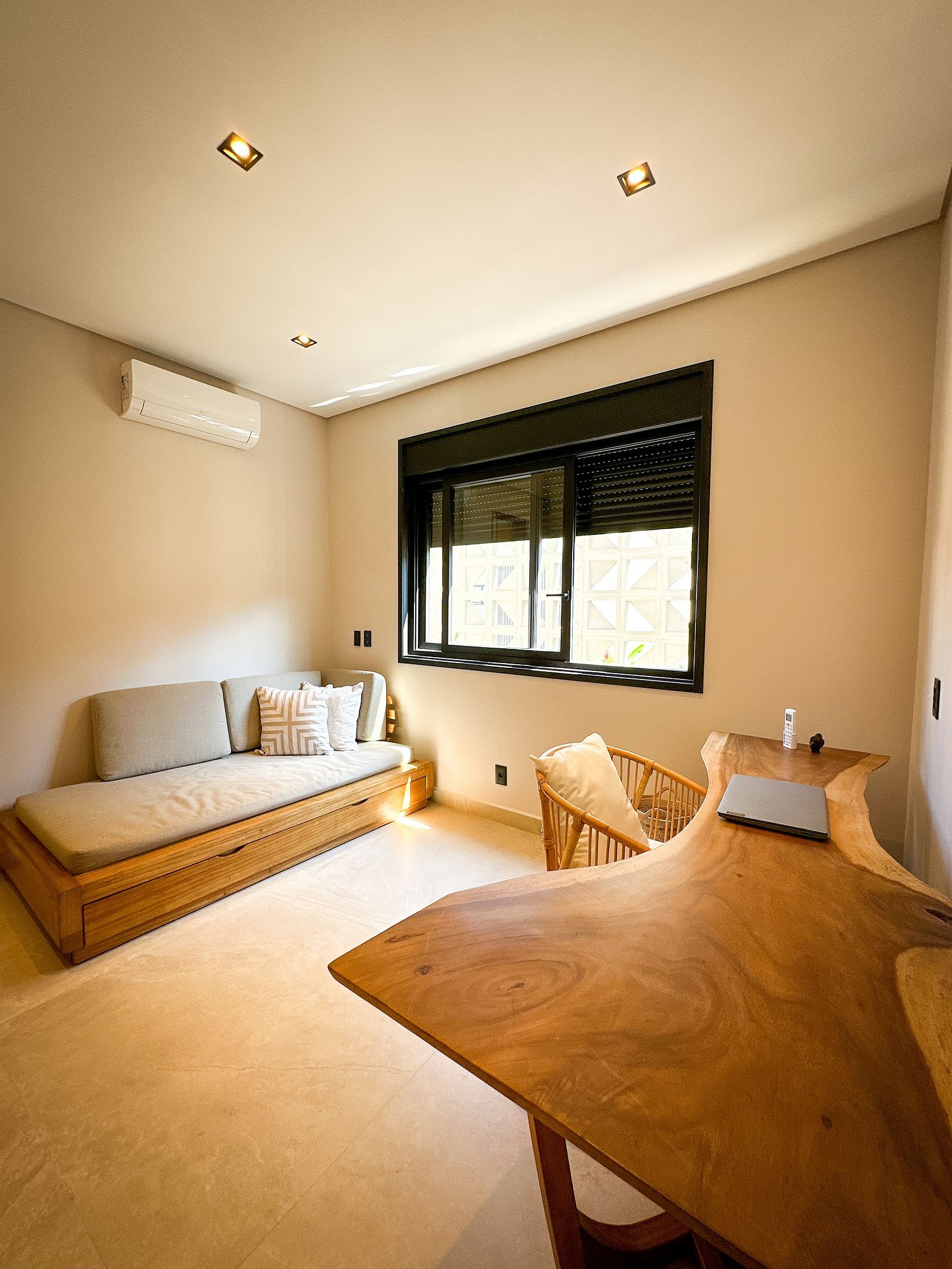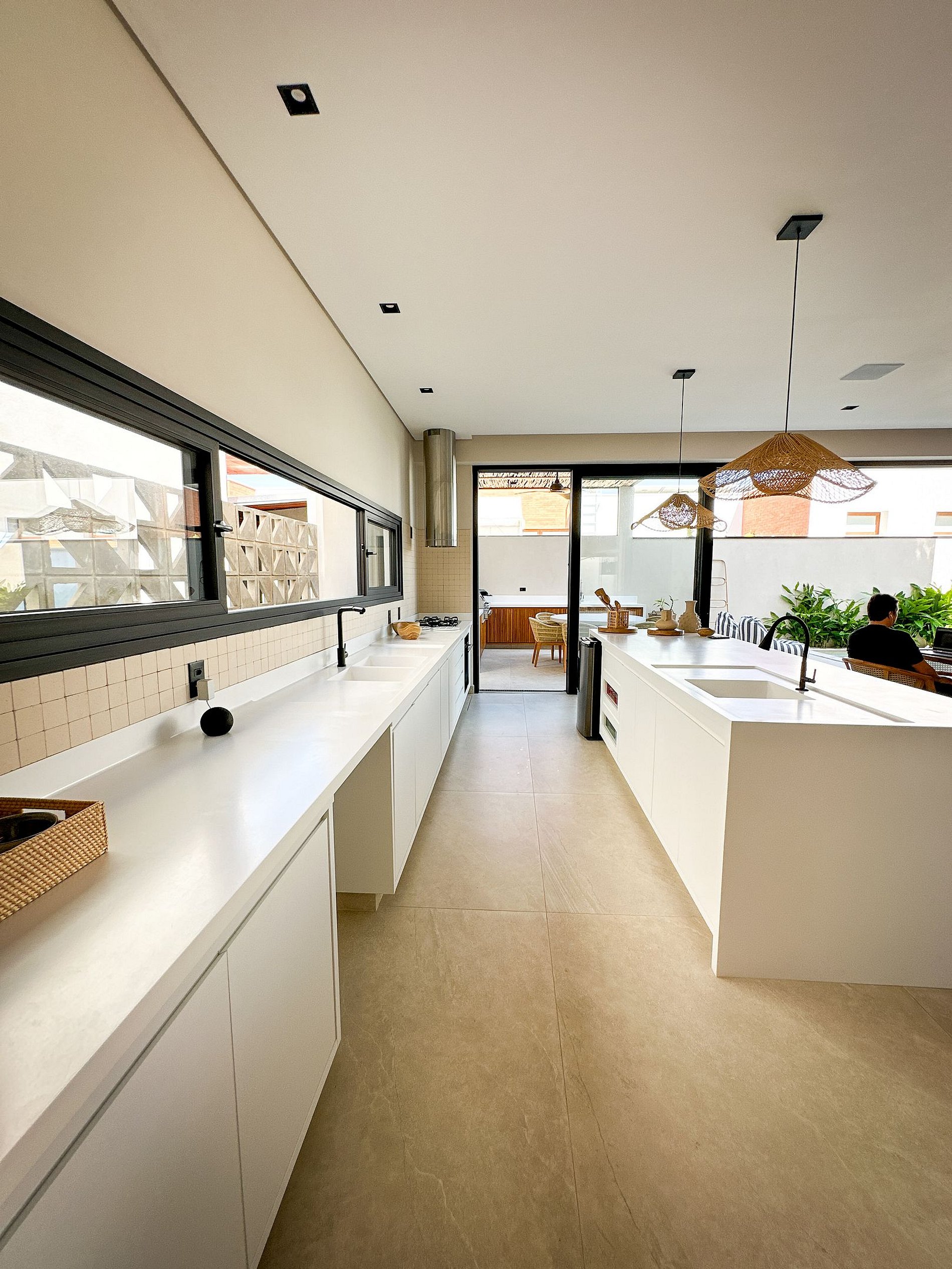 - Ambiente interno climatizado e todo integrado com lavabo, salas de estar, jantar TV e cozinha completa;