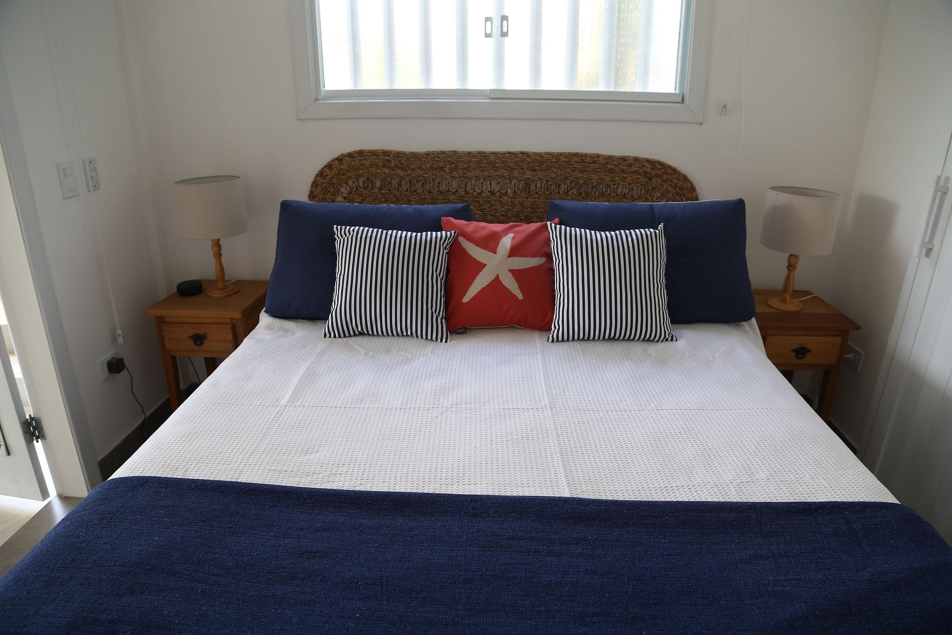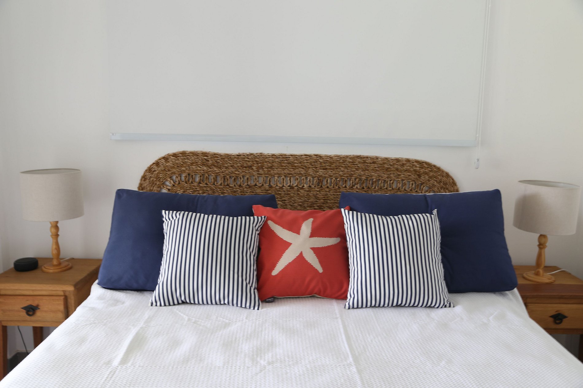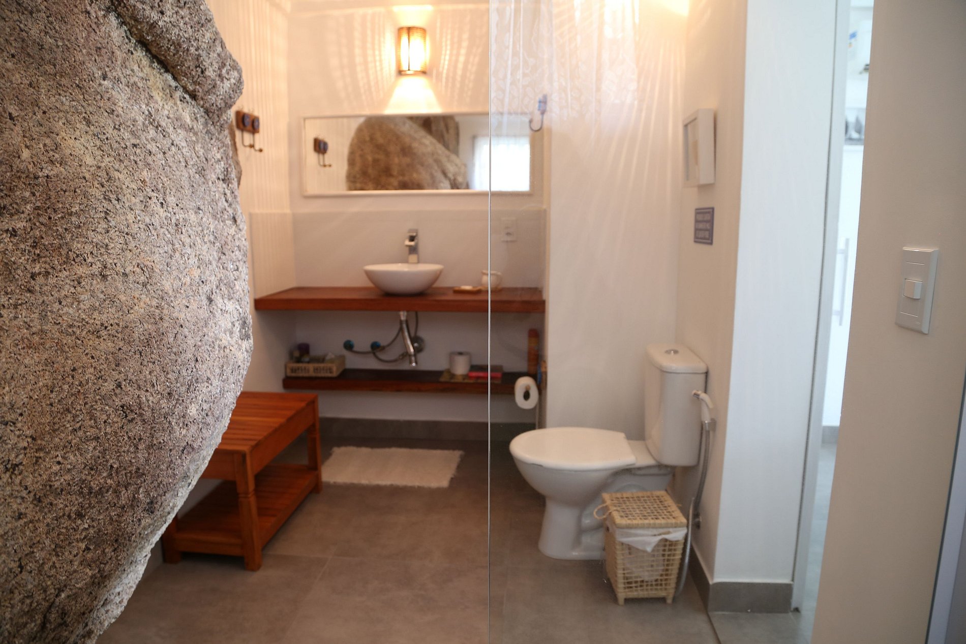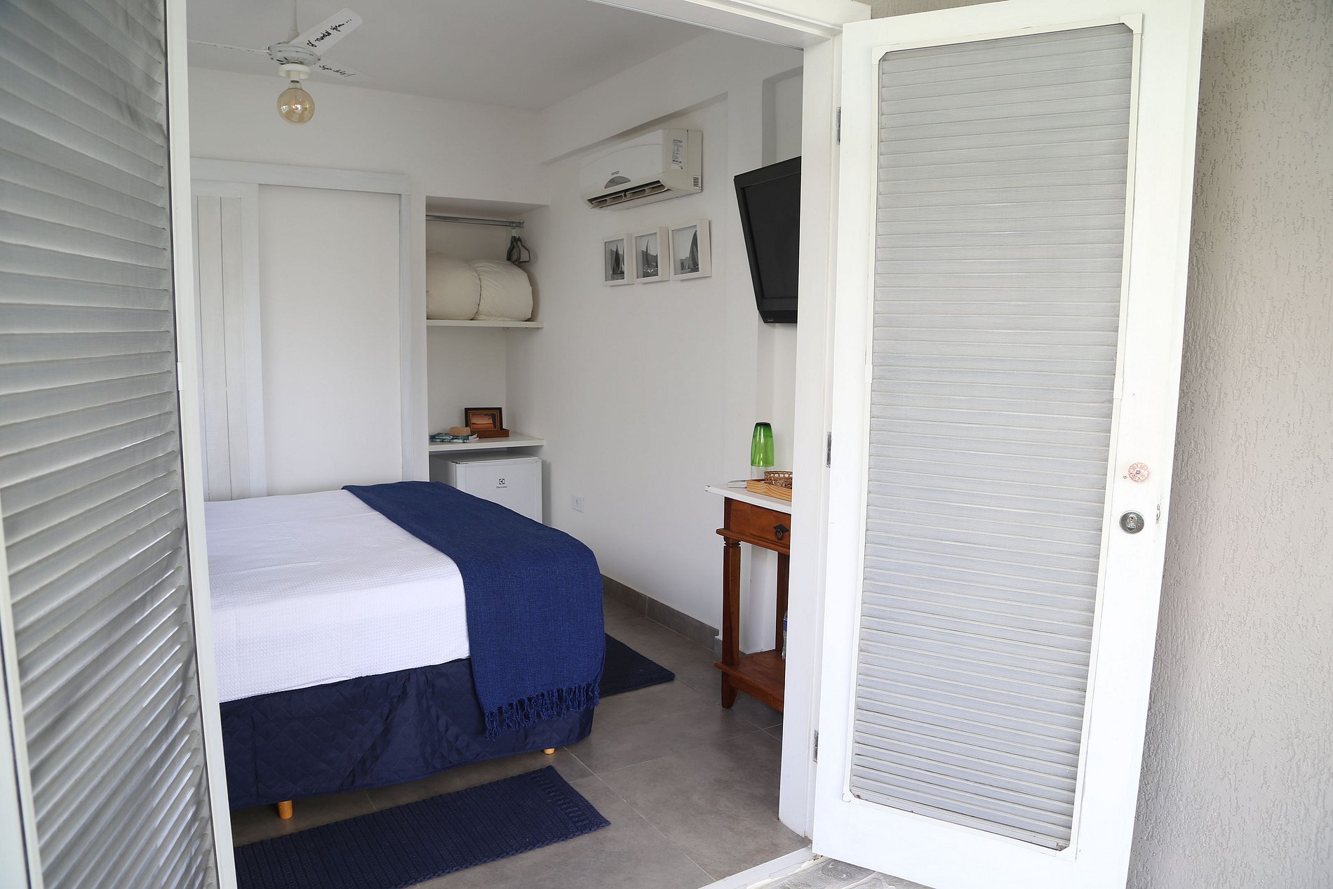 Suíte 2 (térrea) - 1 cama de casal queen, armário aberto, frigobar e Smart TV;