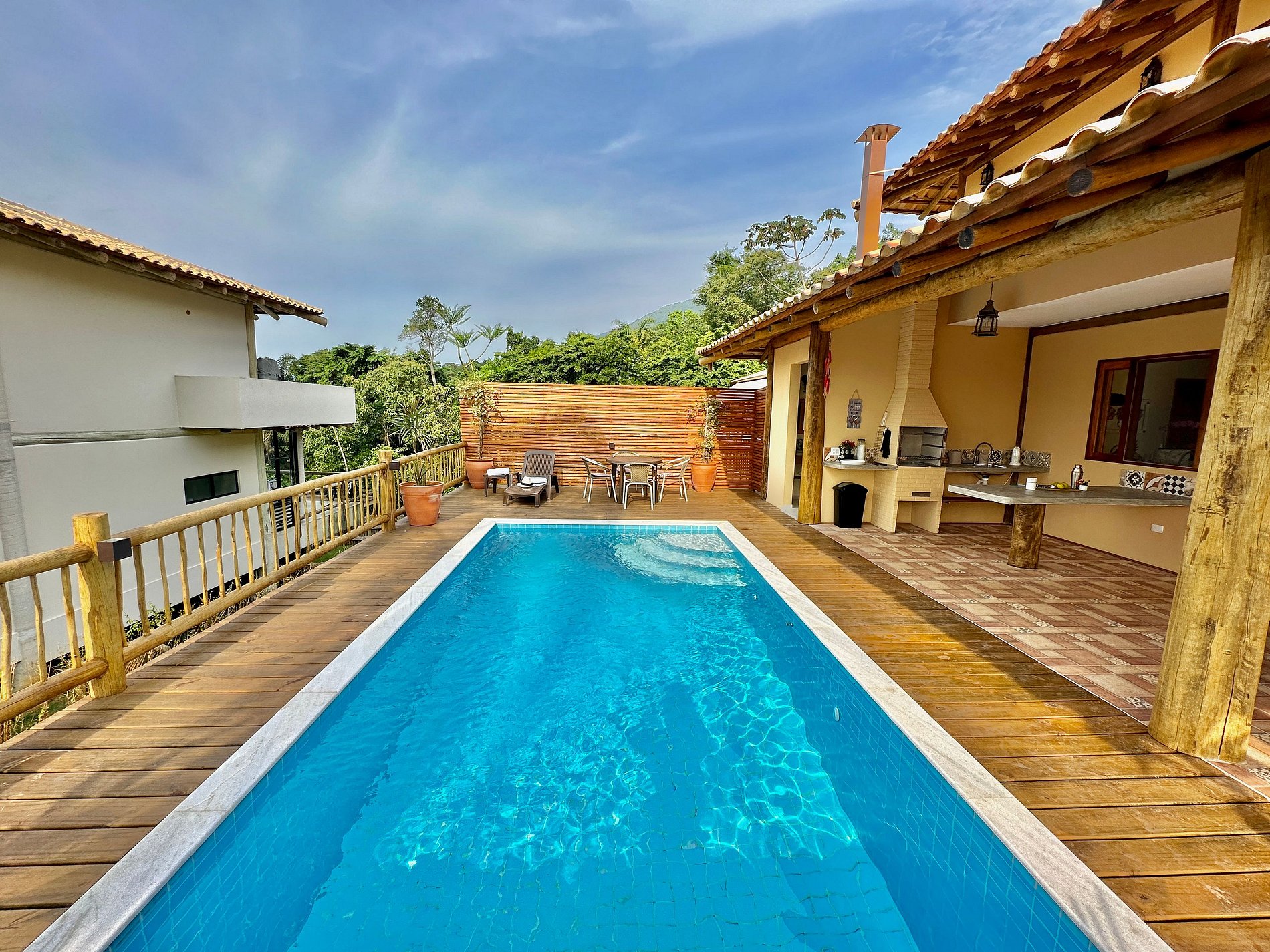Casa contemporânea, com excelente infraestrutura, em uma das regiões mais charmosas da ilha. Privacidade, aconchego, conforto e descanso, tudo isso próximo à praia do Veloso, no condomínio Ilhabela Greens Resort & Golf. São 4 suítes, todas com ar-condicionado. Ideal para 12 pessoas. Cozinha completa, Smart TV com acesso ao Netflix, Wi-fi, máquina de lavar e secadora. Varanda gourmet com churrasqueira e piscina privativa. Condomínio muito seguro e de alto padrão. Seu PET é bem-vindo!