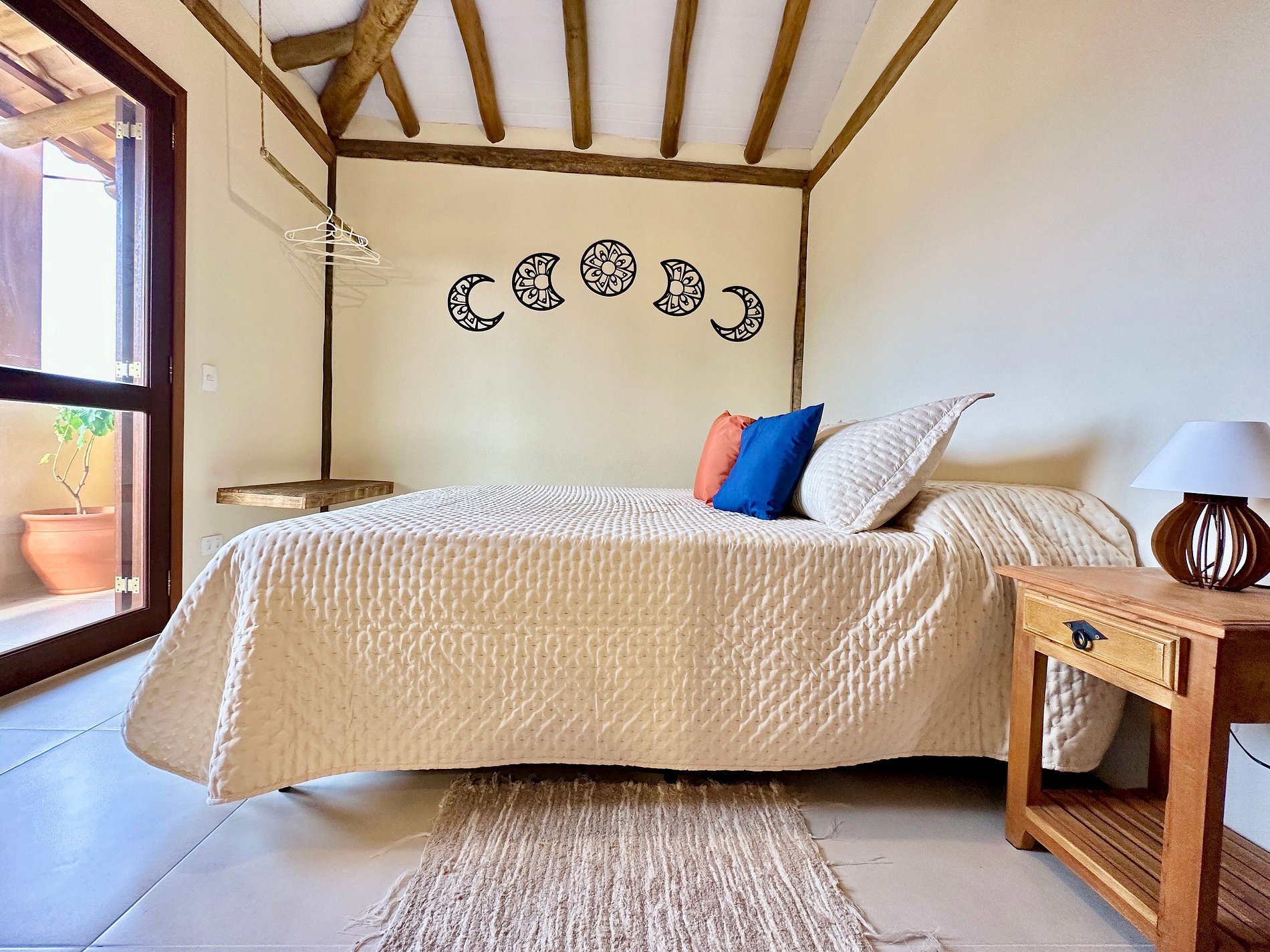 Suíte 4 - 1 cama de casal queen, 1 caminha adicional , armário e varanda (única varanda que não tem vista pro mar).
