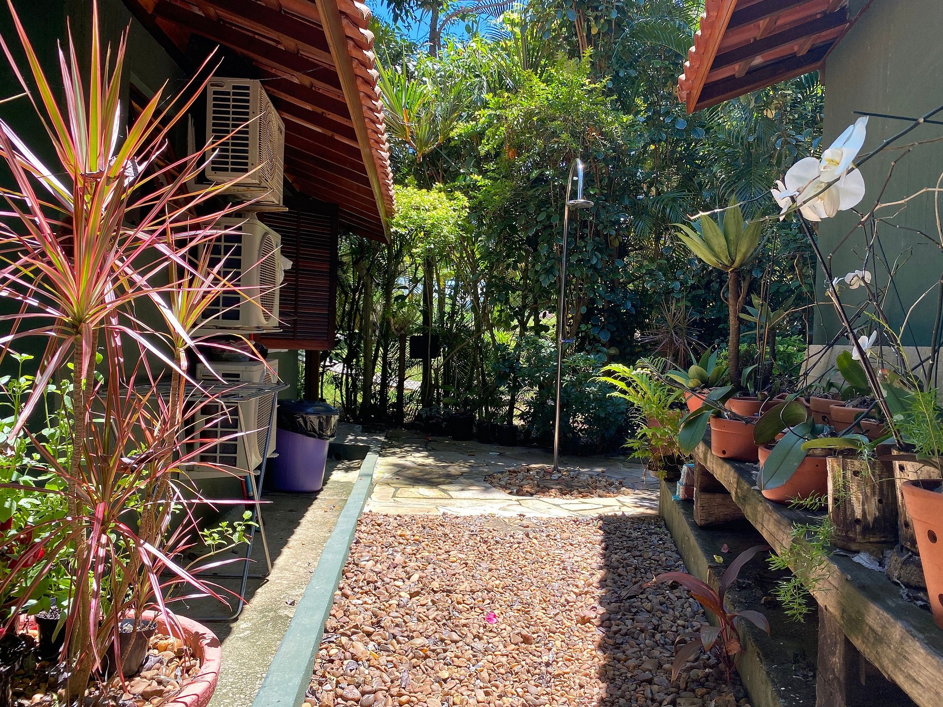O bangalô fica num terreno com uma casa principal e mais 2 chalés, mas são bem isolados uns dos outros, garantindo muita privacidade e tranquilidade.