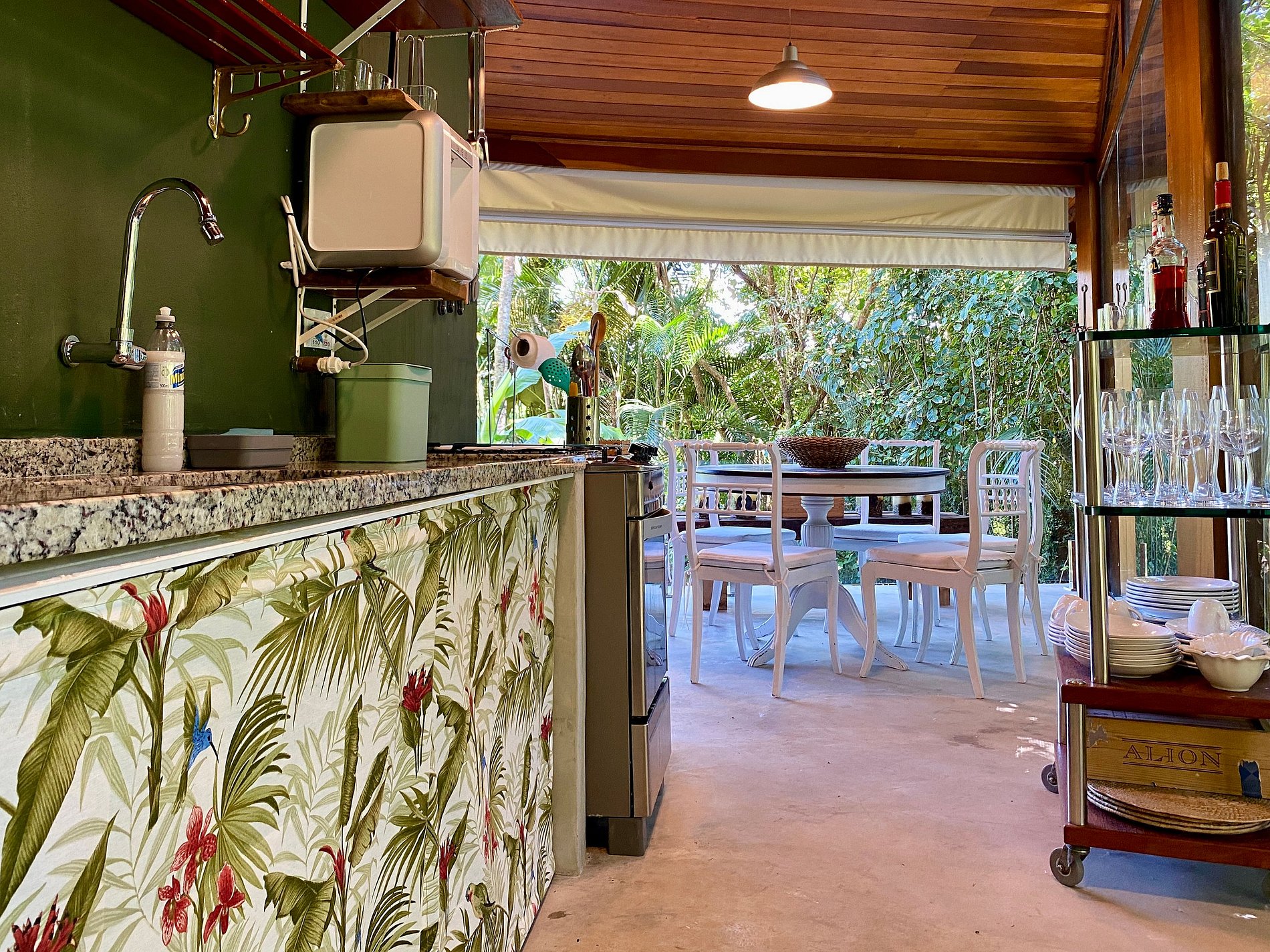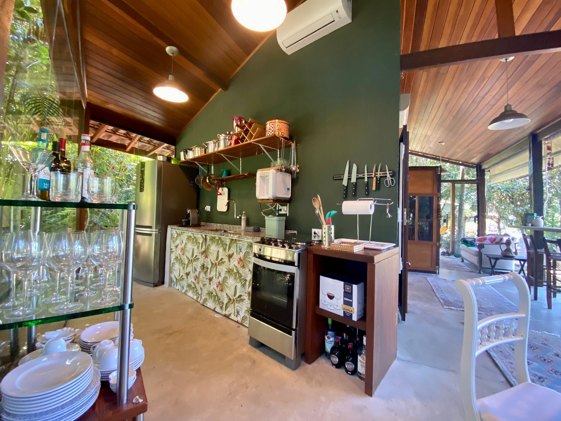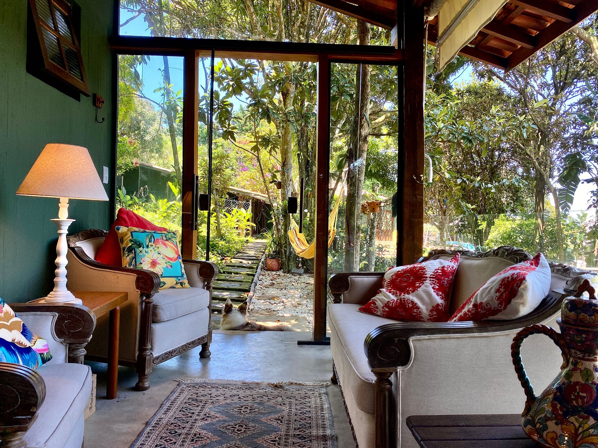 A casa é linda! ambiente tranquilo e conectado com a natureza. A vista da sala é espetacular, ótimo para um café da manhã.