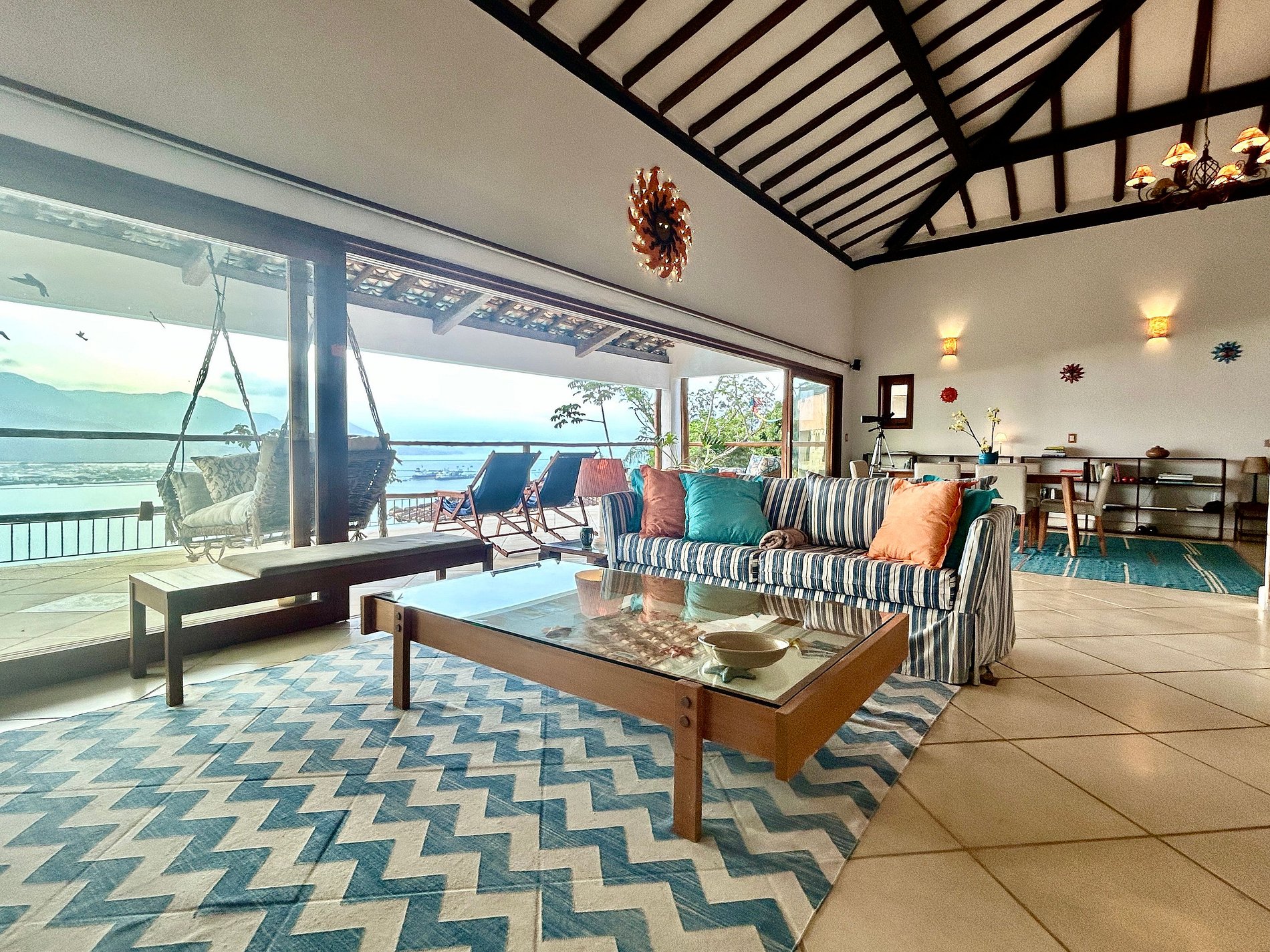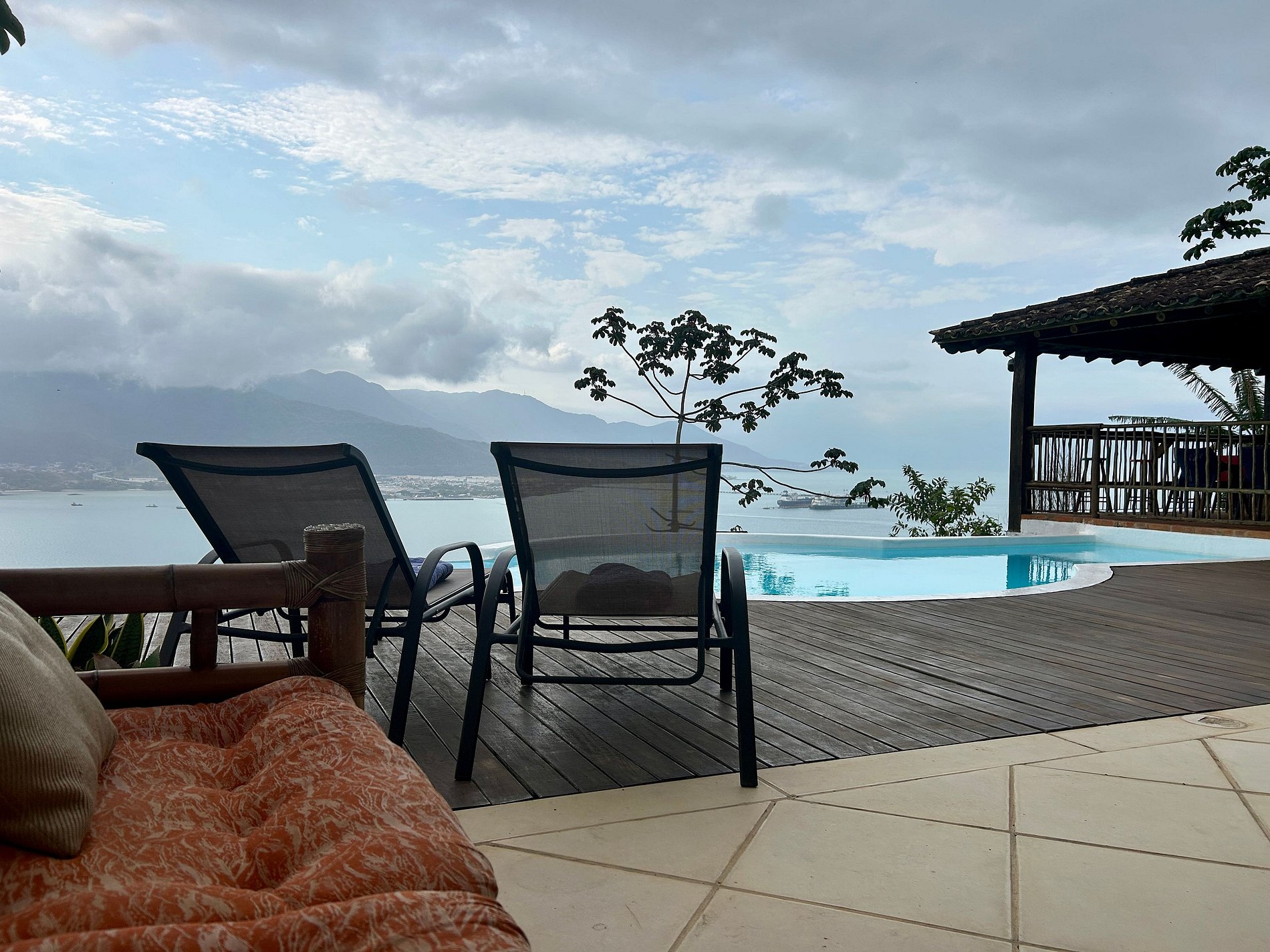 Viva uma das experiências mais encantadoras de Ilhabela. Casa aconchegante, arquitetura ilhabelense, vista maravilhosa para mar e montanha, no alto do Piuva, ao Sul da ilha. Ideal para 10 pessoas. São 3 suítes e 2 quartos, todos com ar-condicionado. A área de lazer é incrível e completa, conta com piscina integradas à área gourmet com churrasqueira, mesa para refeições ao ar livre e uma varanda deliciosa. Smart TV e Wi-fi. Área interna integrada com salas de estar, TV, jantar e cozinha completa.