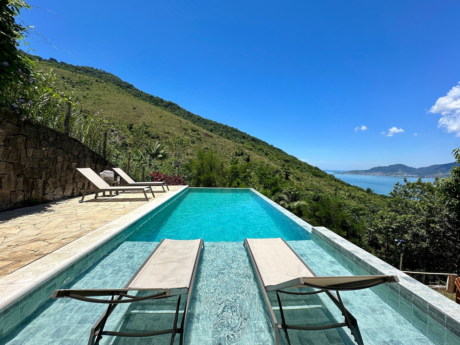 Uma das melhores localizações de Ilhabela! Casa com linda vista para mar, montanha e pôr do sol incrível, na Praia da Siriúba, Norte de Ilhabela. Ideal para 8 pessoas. São 2 suítes sendo uma com jacuzzi e 2 quartos, todos com ar-condicionado. Área interna integrada, com salas de estar, jantar e cozinha completa, mesa de sinuca. Wi-fi e Smart TV. Área externa agradável, com piscina aquecida, espaço gourmet com churrasqueira, forno a lenha. Perfeita para viver momentos inesquecíveis em família!