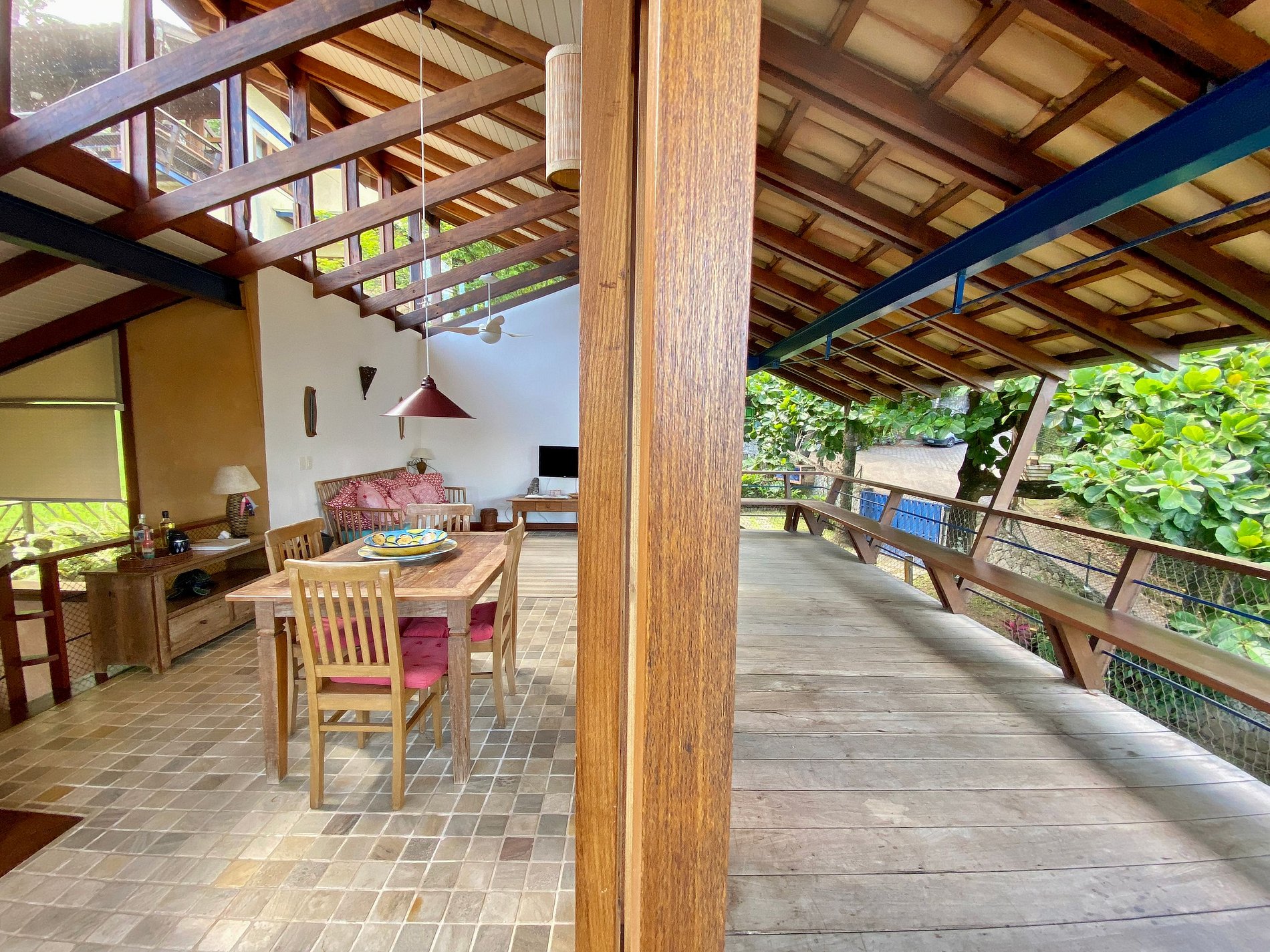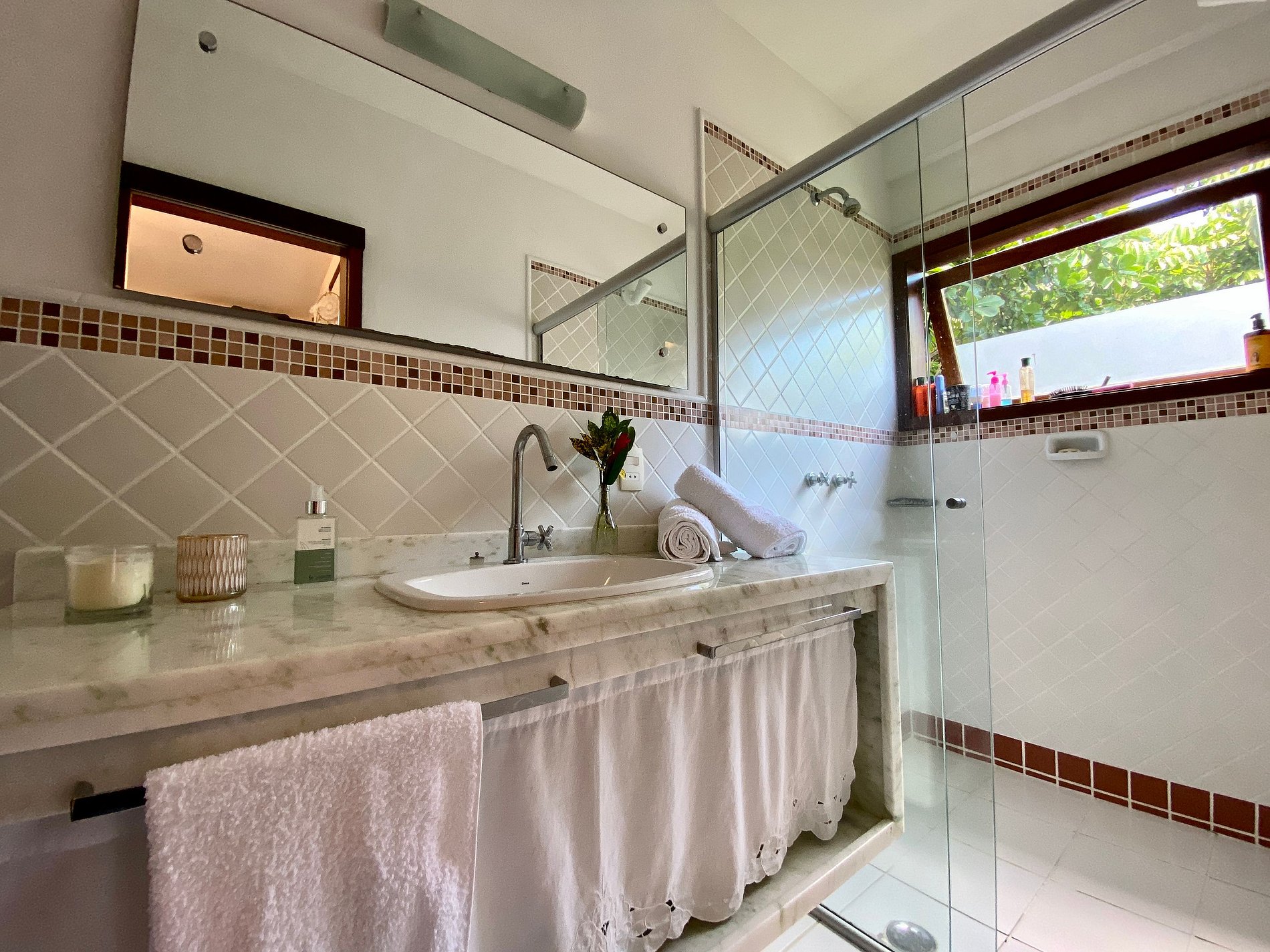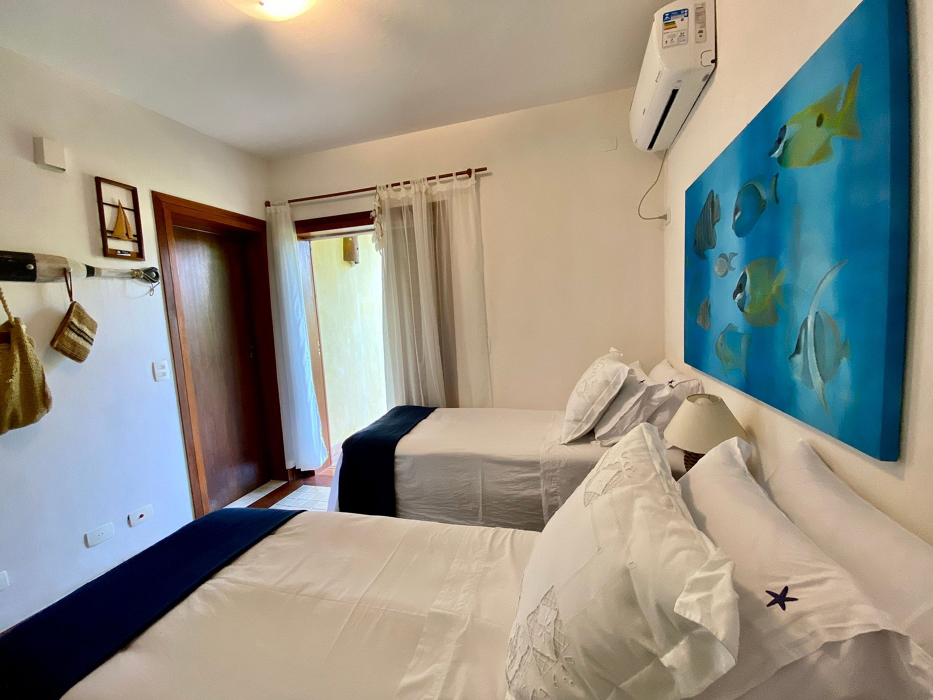 Casa super charmosa, com espaço muito bem cuidado e cheia de detalhes que vão encantar a todos! Localizada na Siriuba, norte de Ilhabela. Ideal para 5 pessoas. São 2 suítes, ambas com ar-condicionado e varanda que dá acesso a um jardim. Subindo as escadas há uma cozinha completa, sala de TV com Smart TV e canais a cabo, sala de jantar e um terraço espaçoso com uma vista espetacular para o mar. Conta ainda com ótimo sinal de Wi-fi. São 2 vagas na garagem e seu PET de porte pequeno é bem-vindo!!