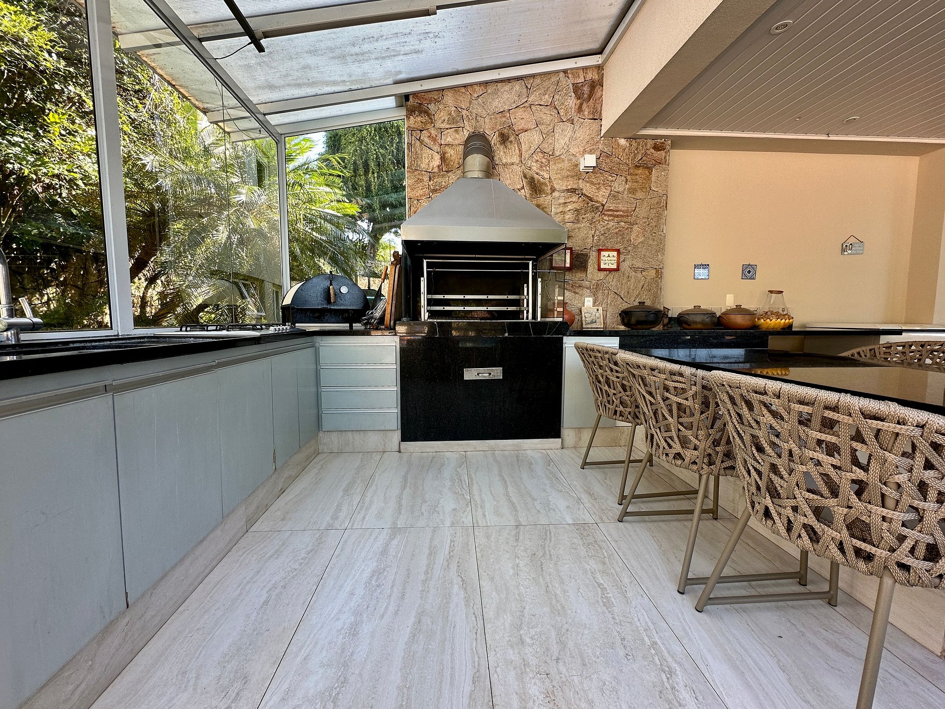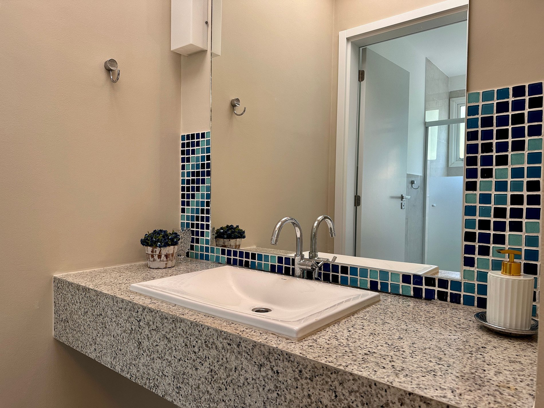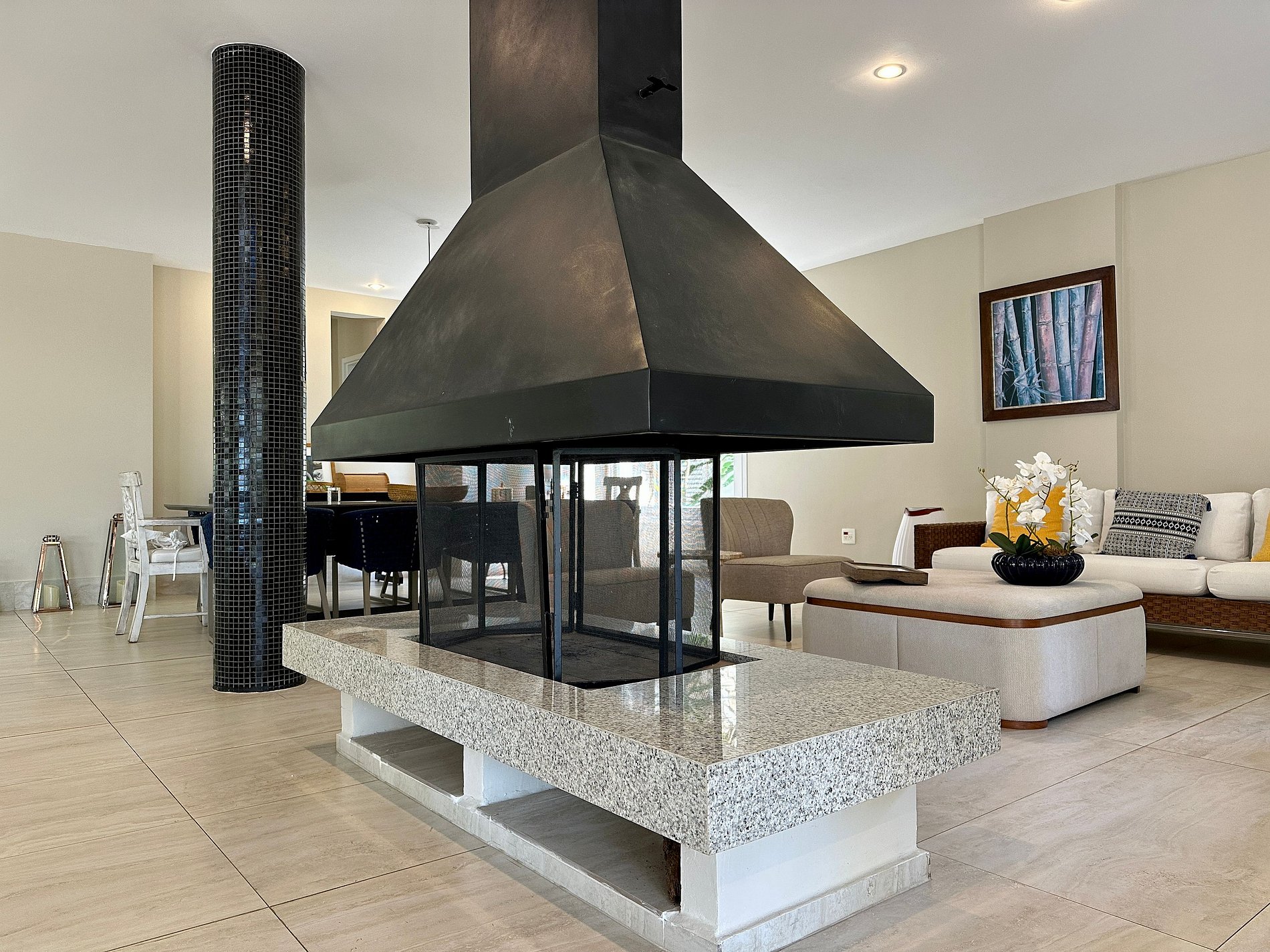 - A parte interna com decoração de bom gosto, com 2 lavabos, salas de estar, jantar, TV e cozinha completa, em ambiente integrado, iluminado e muito arejado, com um visual magnífico;