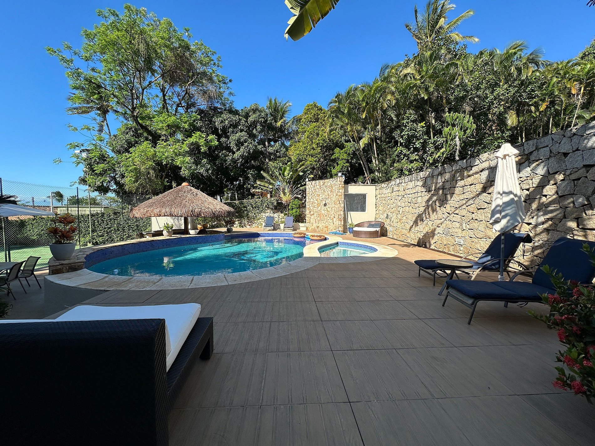 Com 8 suítes, acomoda grandes grupos ou famílias — alta demanda em Ilhabela para temporada de férias e feriados.