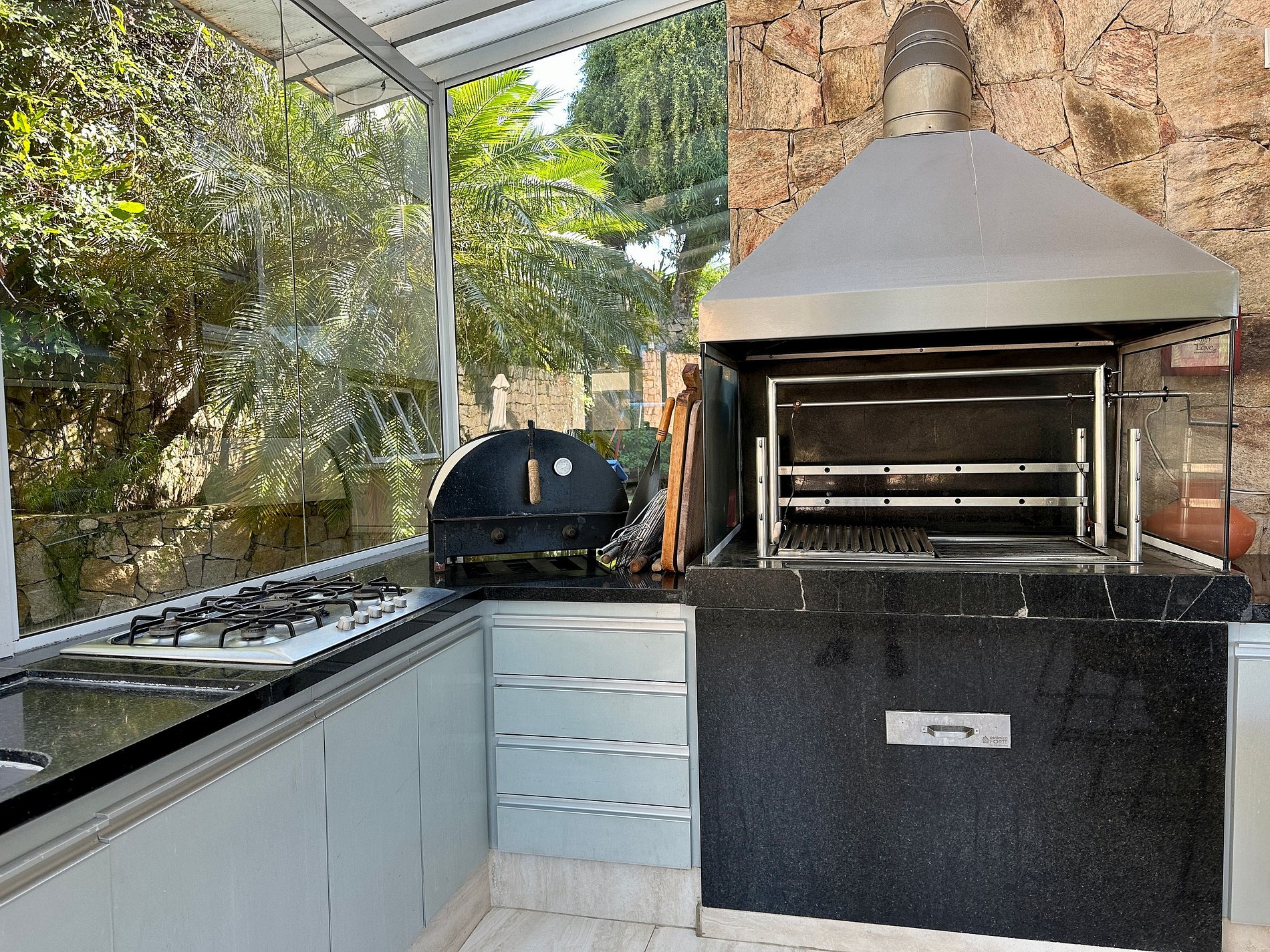 Espaço gourmet com churrasqueira e forno de pizza