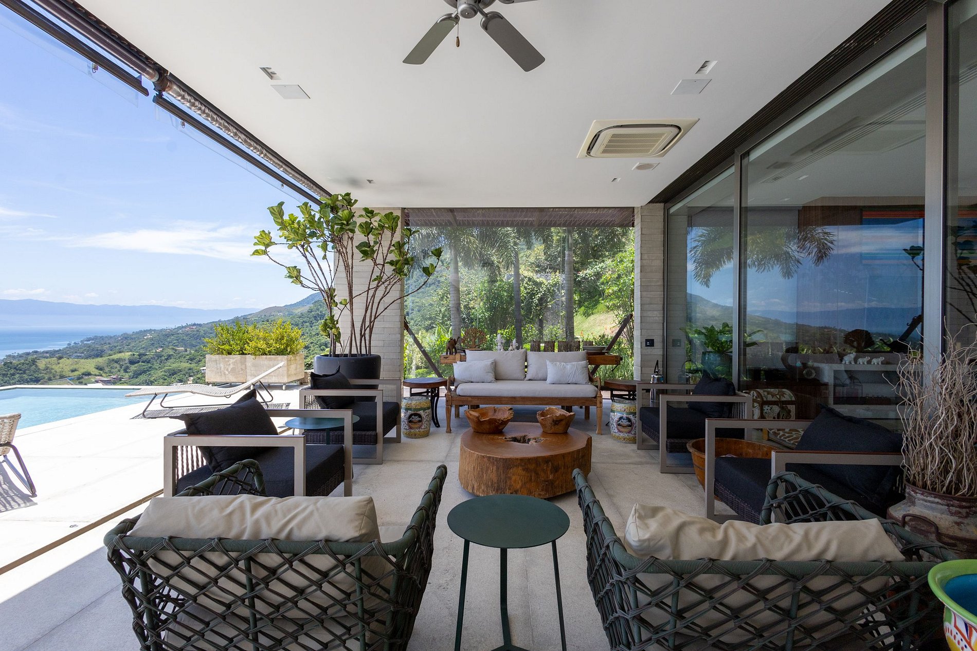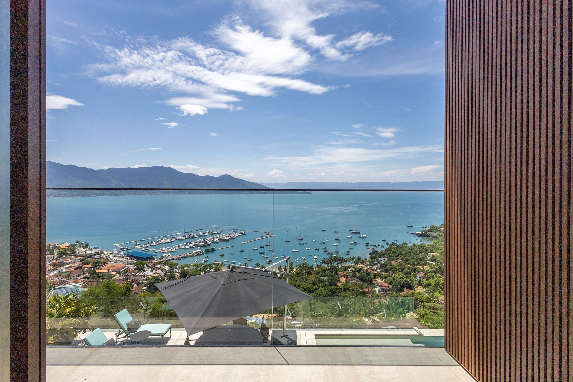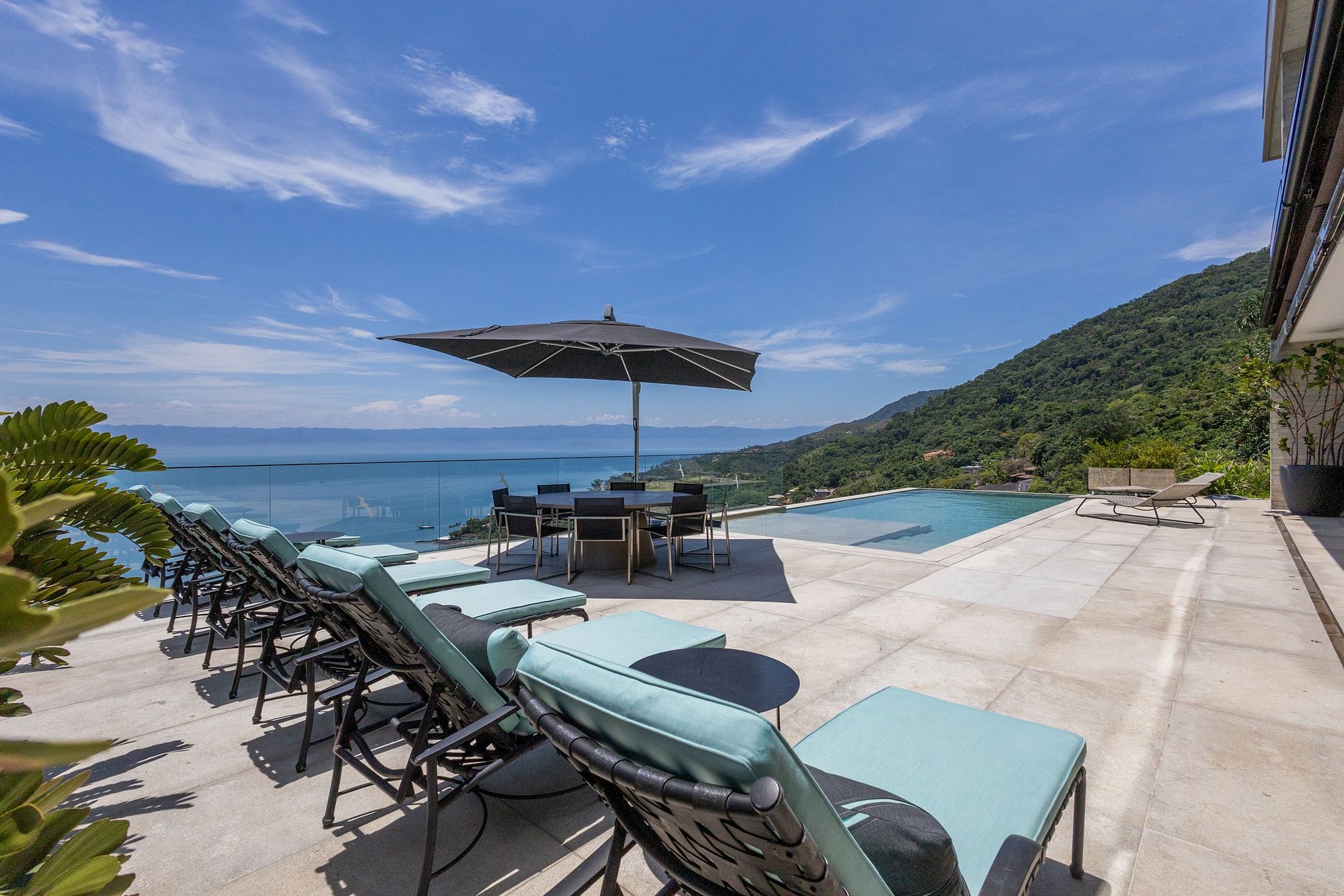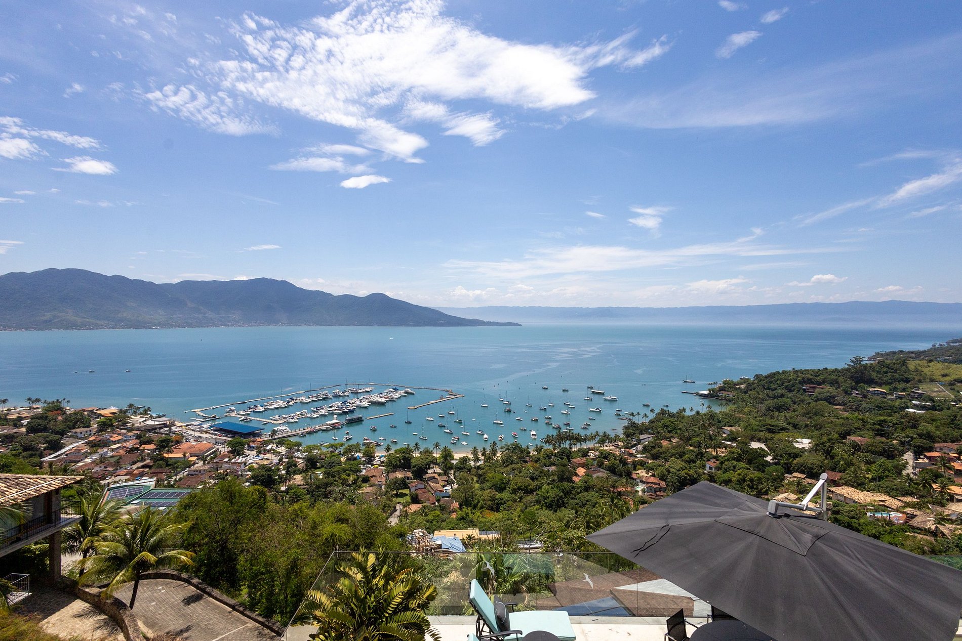 Experiência encantadora entre mar e montanha! Casa contemporânea voltada para o mar, com vista deslumbrante e fácil acesso às praias de Santa Tereza, Barreiros, Yatch Club e Vila. Para 12 pessoas. São 6 suítes com ar-condicionado. Ambientes integrados: salas de estar, jantar e varanda gourmet. Cozinha completa e academia. Sala de TV com Smart TV, canais a cabo e Wi-Fi. Área externa com piscina aquecida, mesa para refeições, espreguiçadeiras e espaço para fogueira. Refúgio perfeito para relaxar!