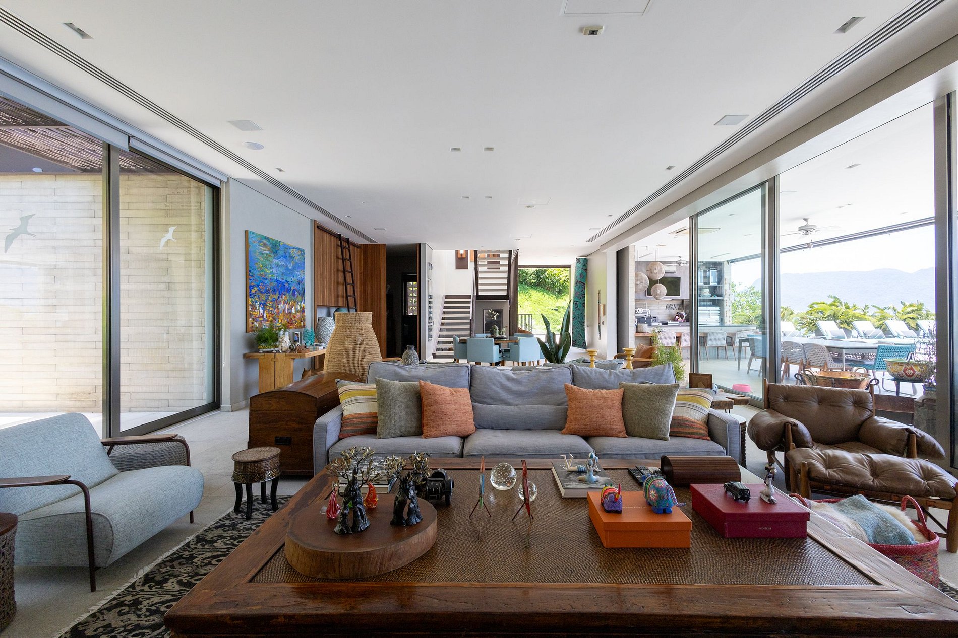 - A área externa é incrível e perfeita para reunir familiares e amigos! Piscina aquecida com vista para o mar e espreguiçadeiras, integrada à varanda da casa, onde fica o espaço gourmet com churrasqueira, forno de pizza, mesa para refeições ao ar livre e uma belíssima varanda mobiliada;