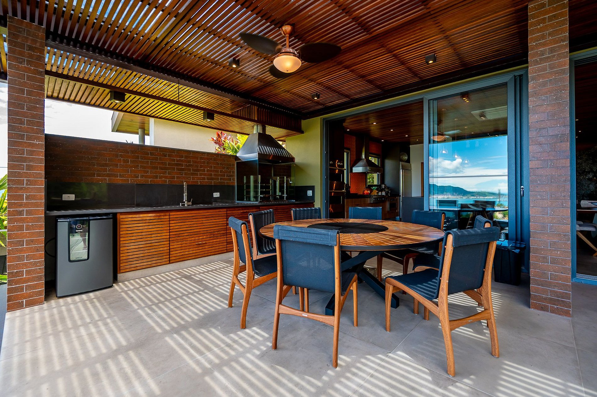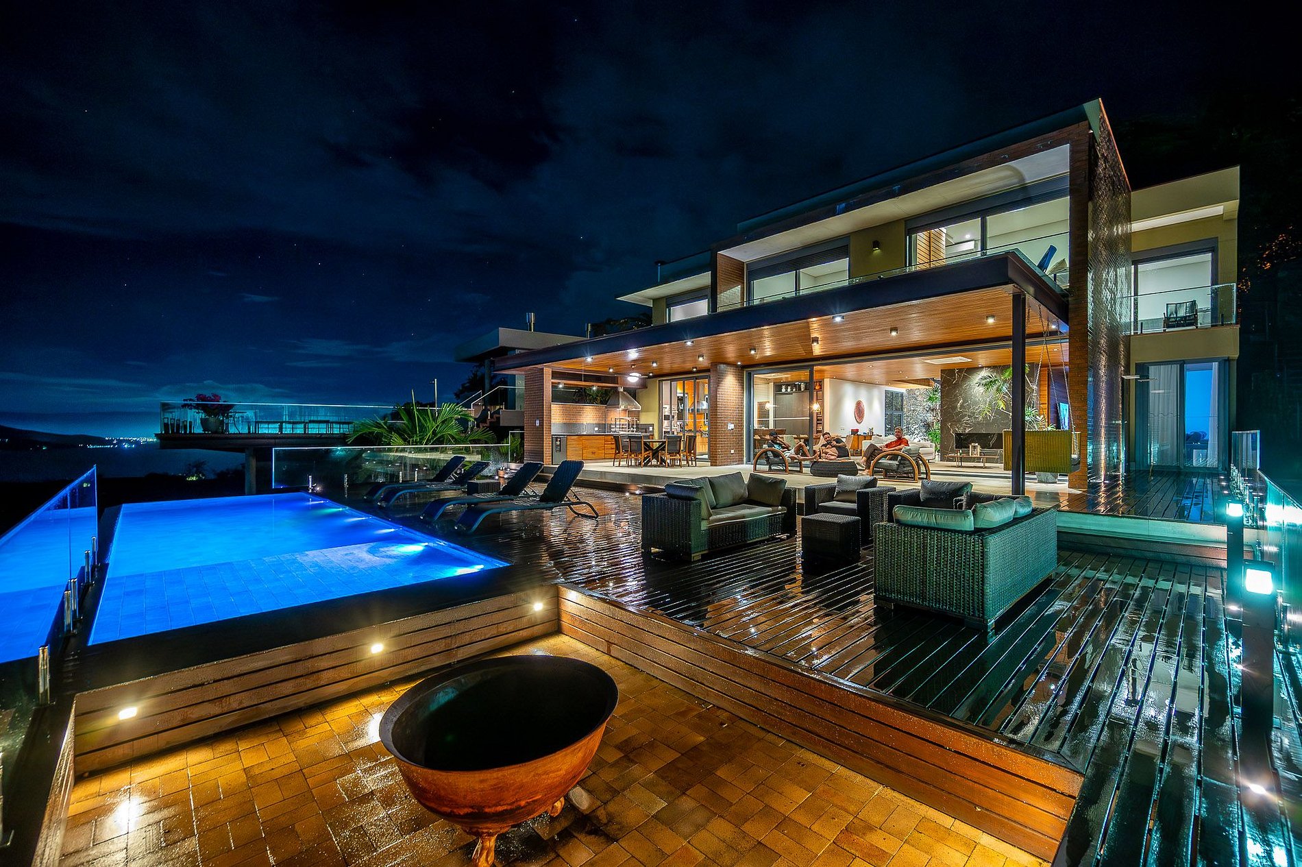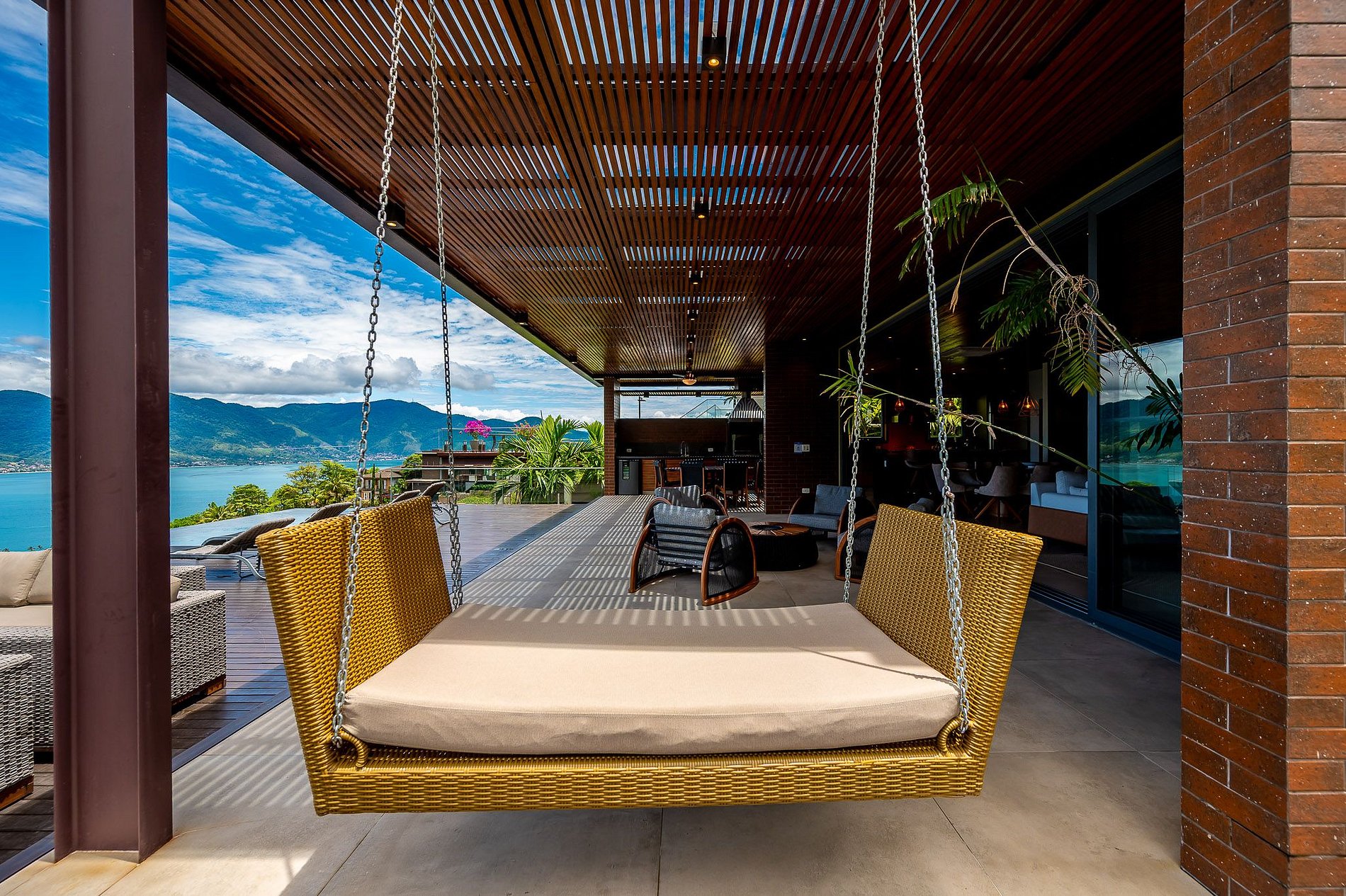 - A parte externa é espetacular: lounge com lareira externa e poltronas confortáveis, um espaço com churrasqueira completíssimo e uma deslumbrante piscina de borda infinita, aquecida, e com uma vista incrível;