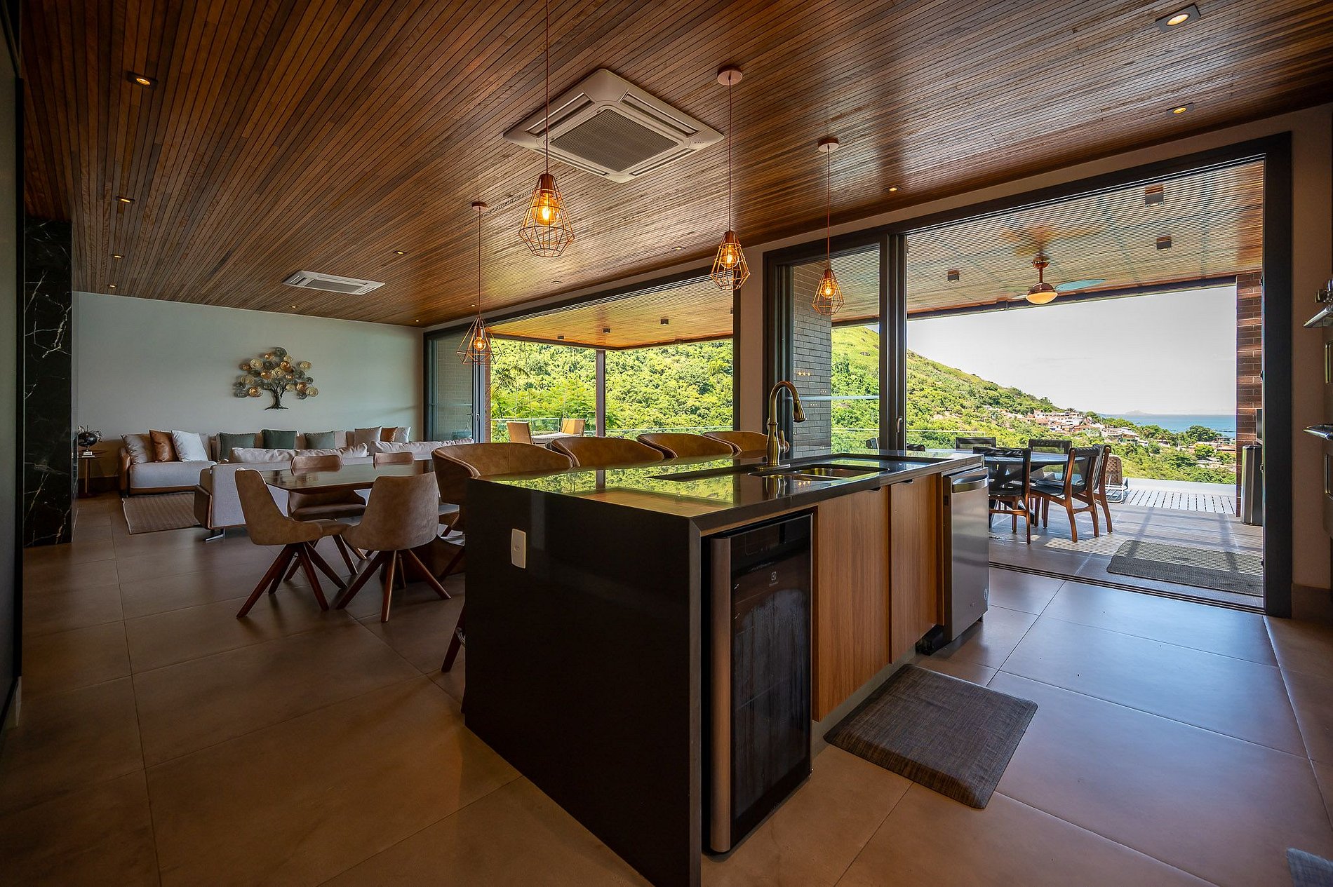 - Salas de estar, jantar e cozinha integradas;