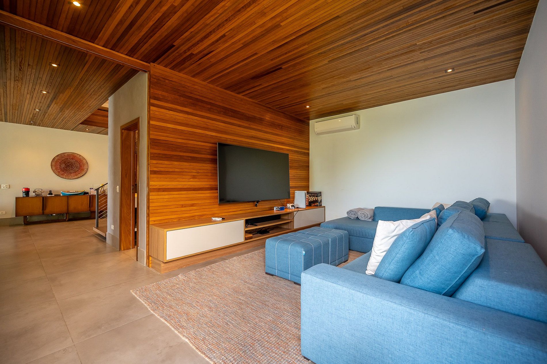 - Sala de TV com Smart TV de 65 polegadas, acesso ao Netflix e PlayStation 5, para garantir a diversão em família;