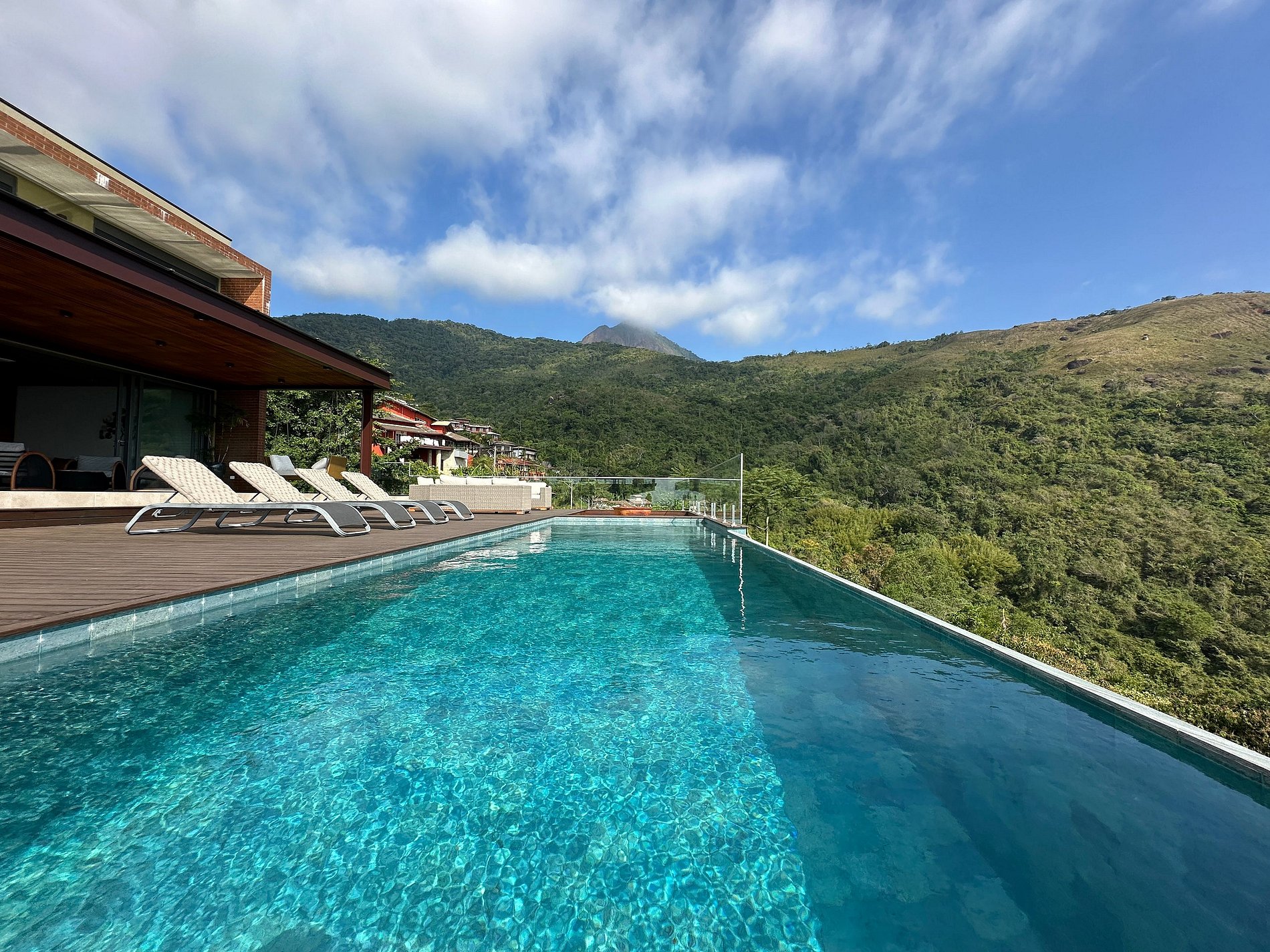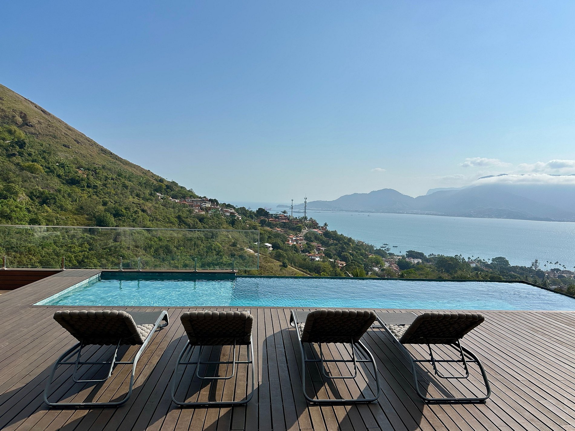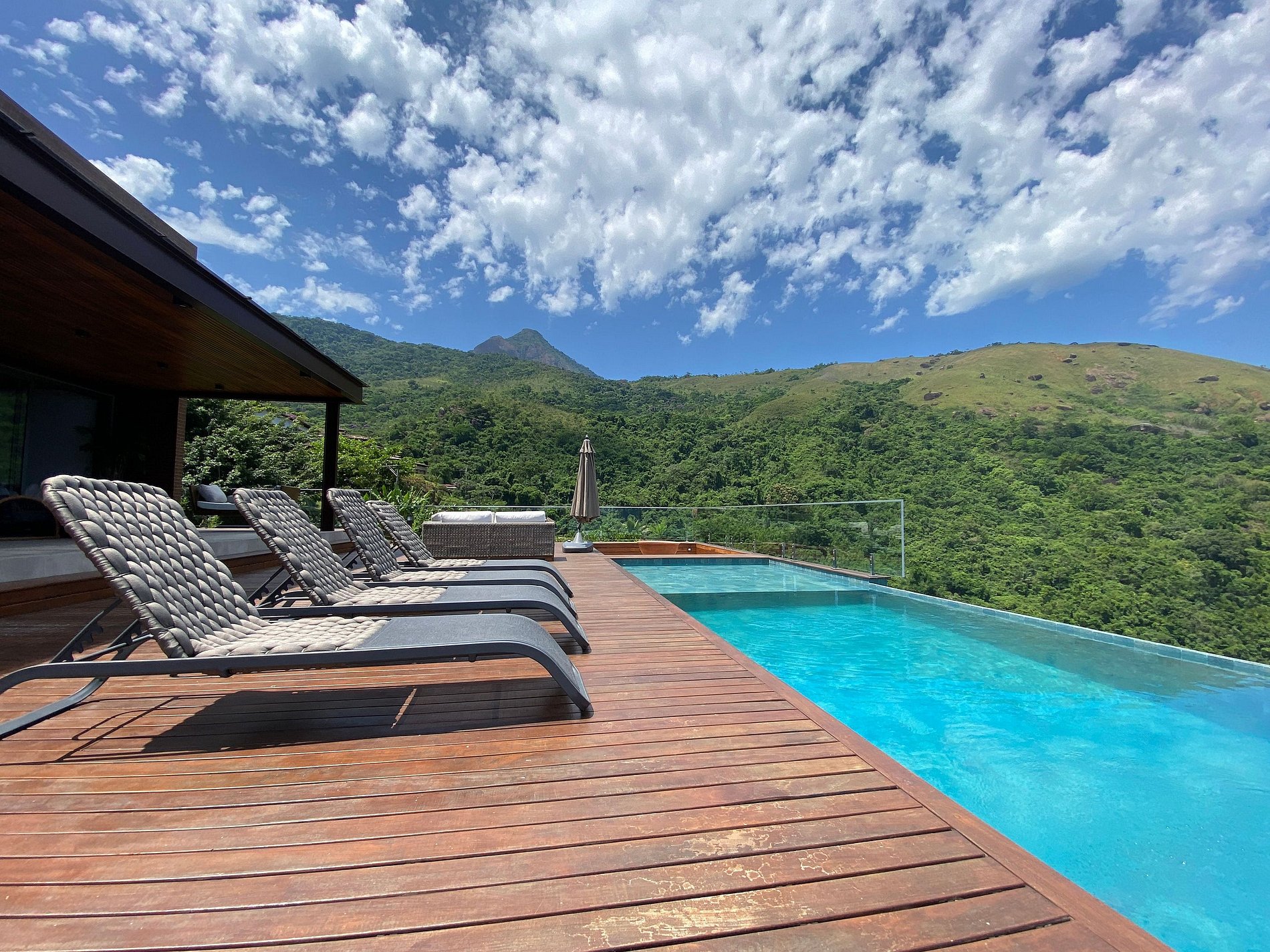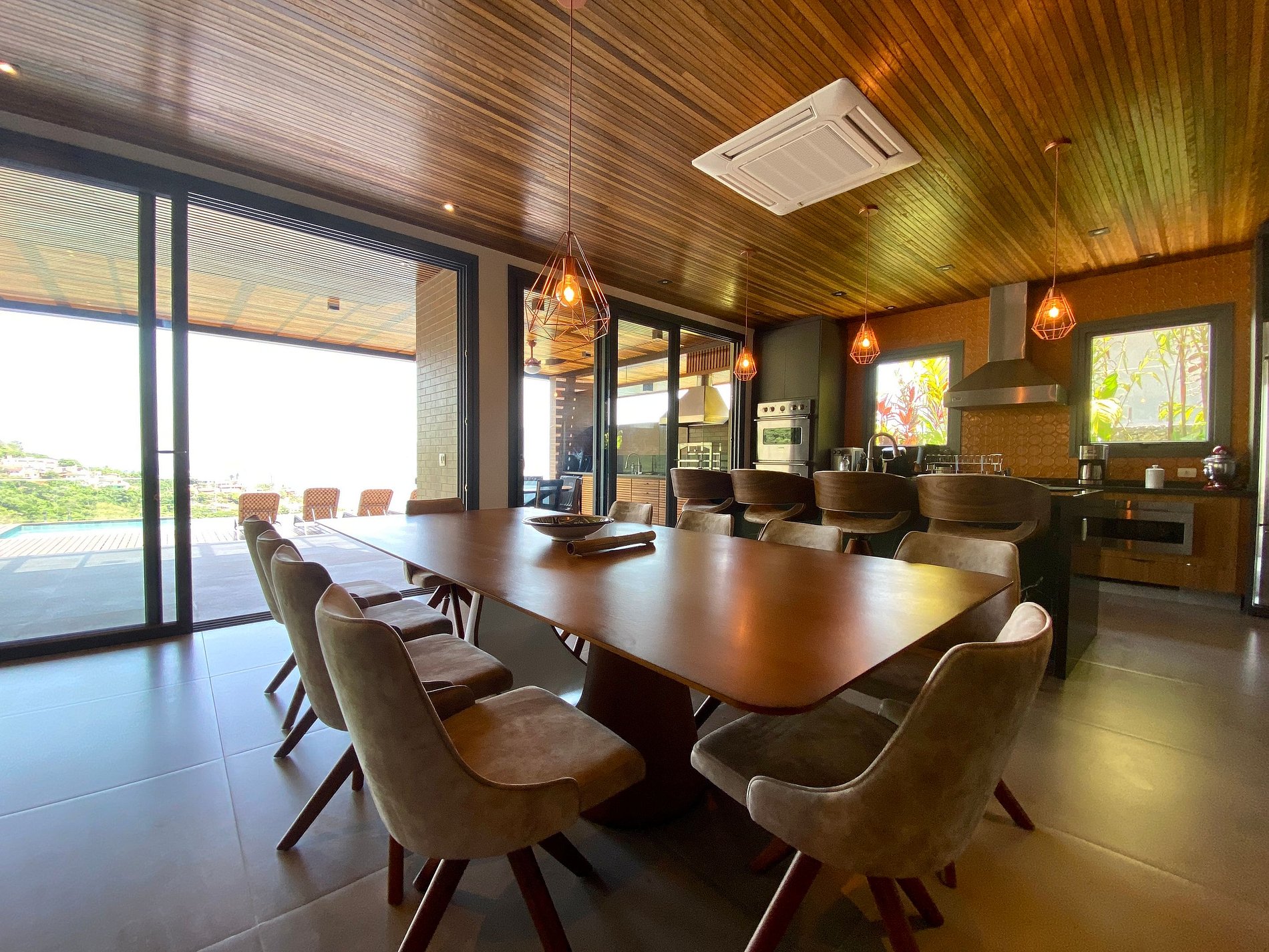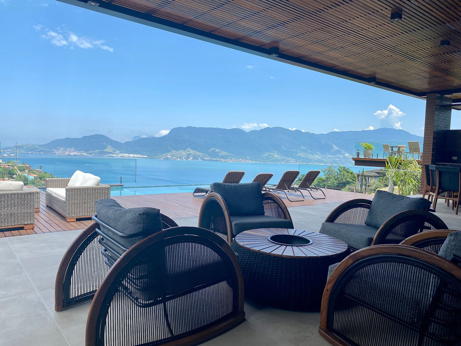 Casa moderna e luxuosa, em condomínio fechado de alto padrão, o condomínio Sobreomar, localizado a poucos metros da Vila Histórica Um refúgio com conforto e requinte, em meio à exuberante Mata Atlântica. São 4 suítes com ar-condicionado e TV,. Áreas sociais integradas, com incrível vista para o mar e montanha. Área externa sensacional, com varanda gourmet, piscina aquecida com borda infinita, espaço para fogueira.