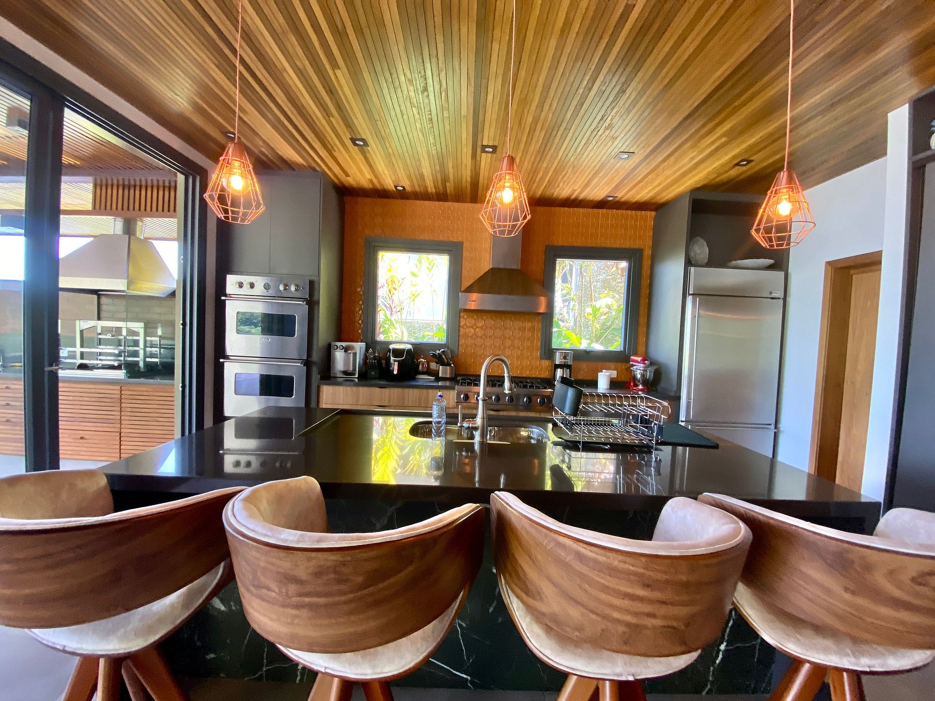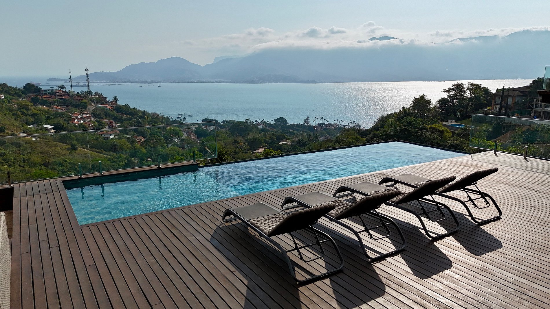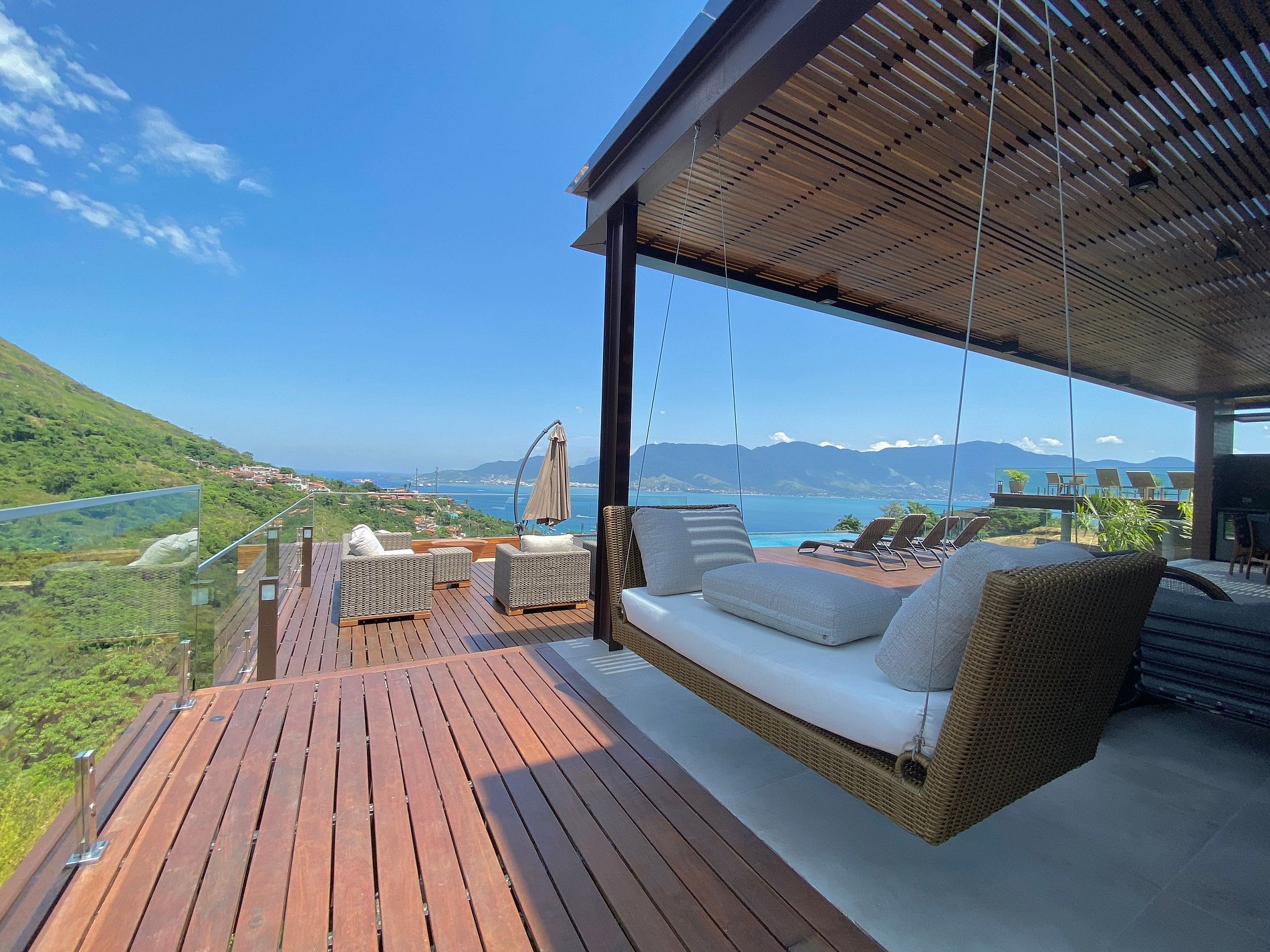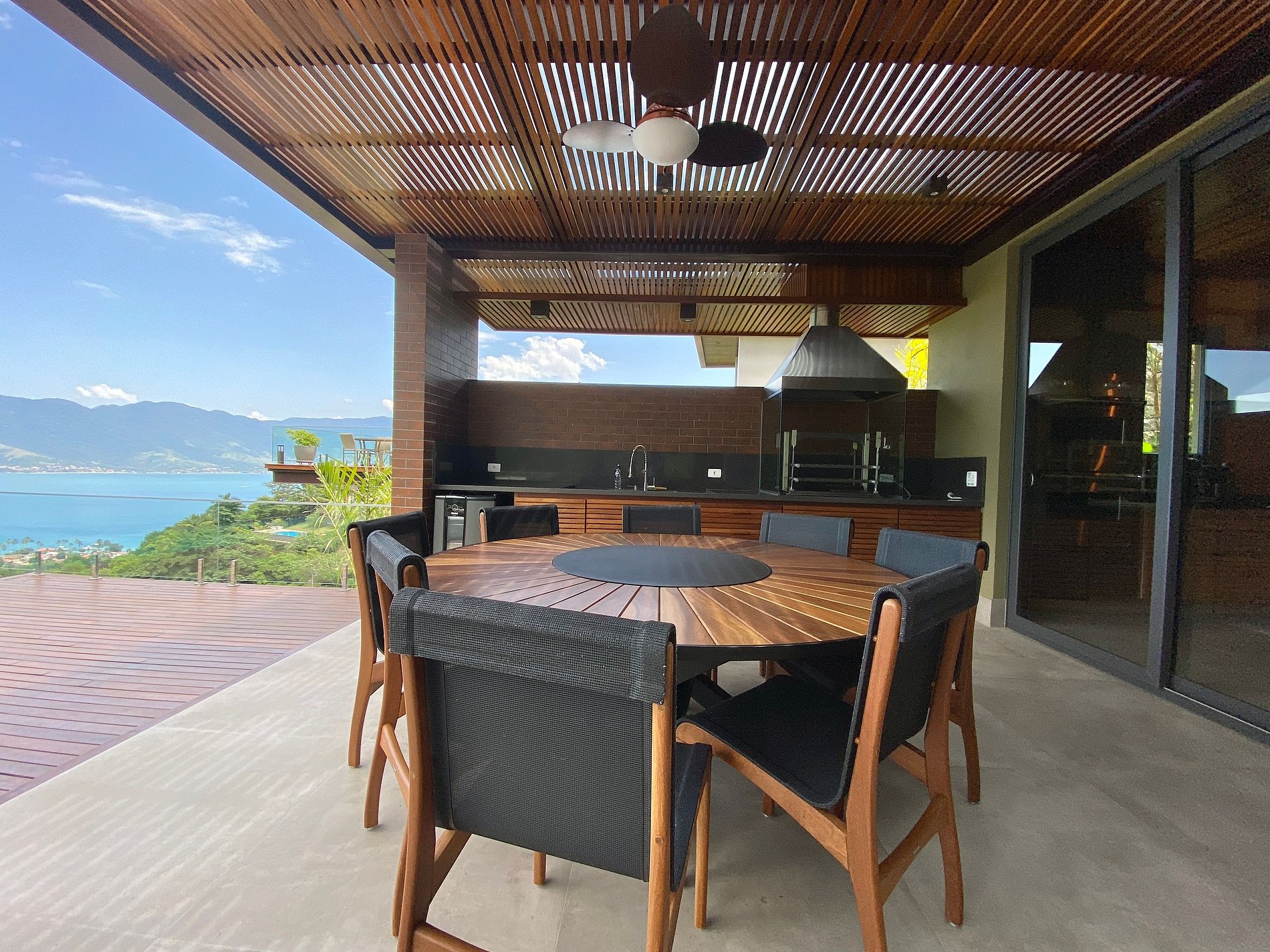 Casa moderna e luxuosa, em condomínio fechado de alto padrão, o condomínio Sobreomar, localizado a poucos metros da Vila Histórica Um refúgio com conforto e requinte, em meio à exuberante Mata Atlântica. São 4 suítes com ar-condicionado e TV,. Áreas sociais integradas, com incrível vista para o mar e montanha. Área externa sensacional, com varanda gourmet, piscina aquecida com borda infinita, espaço para fogueira.