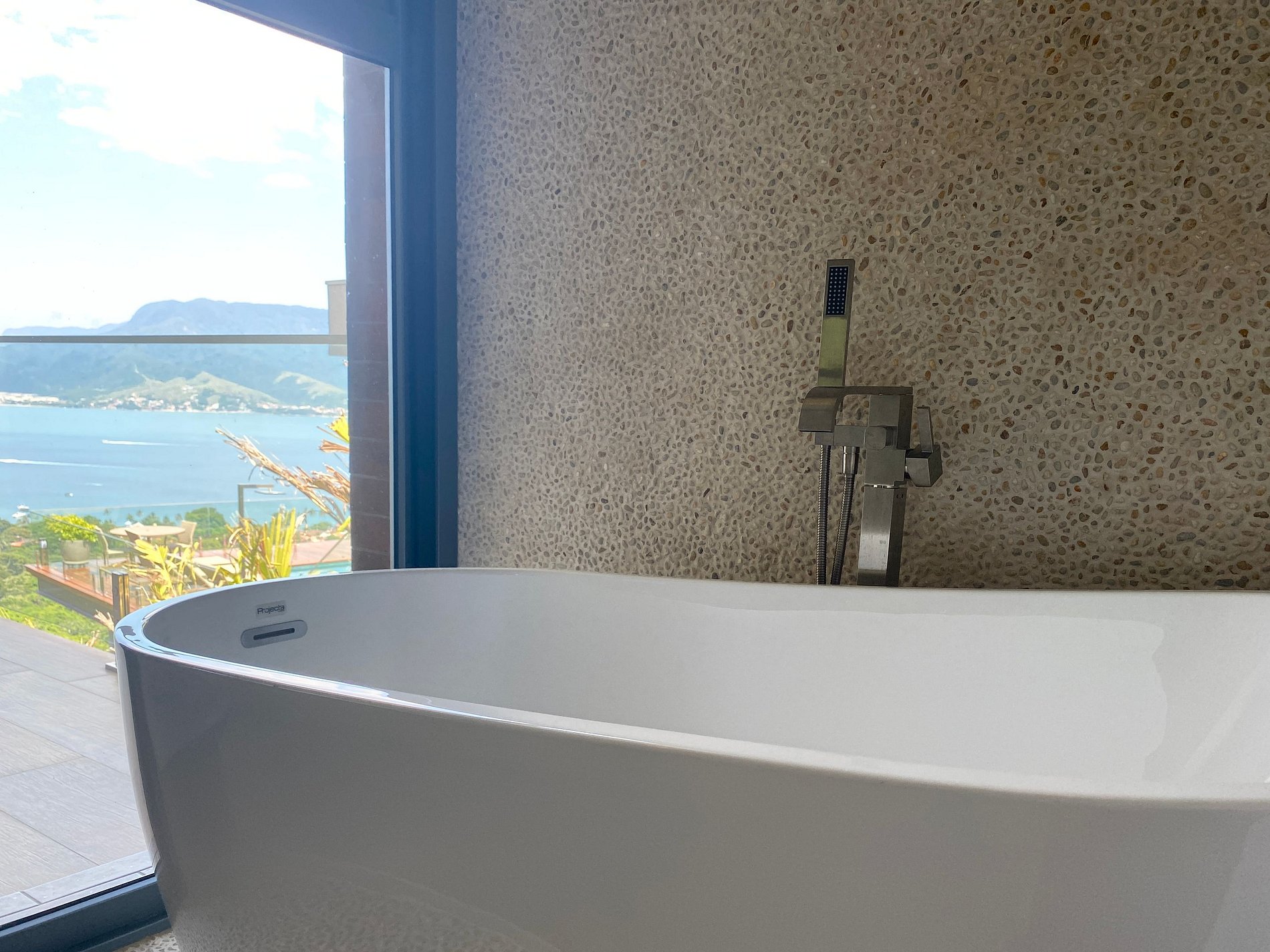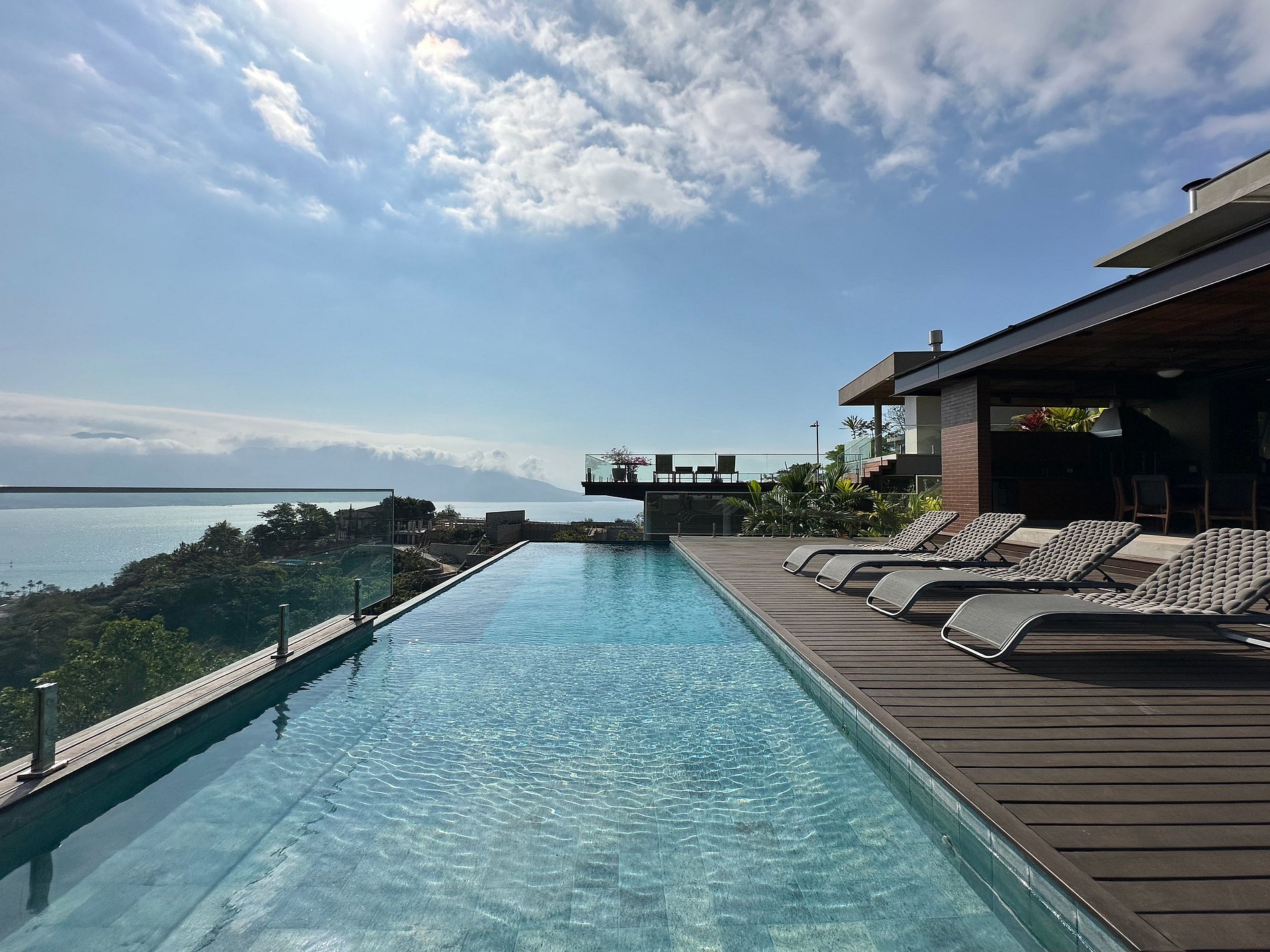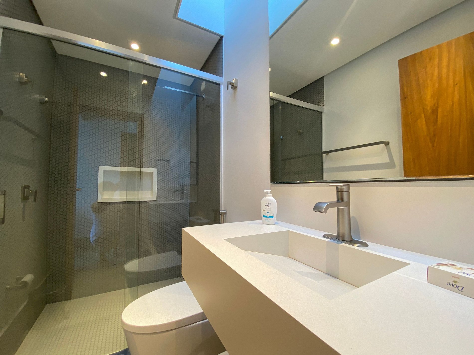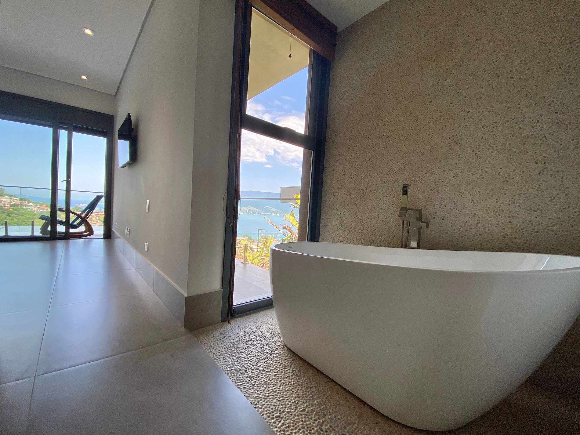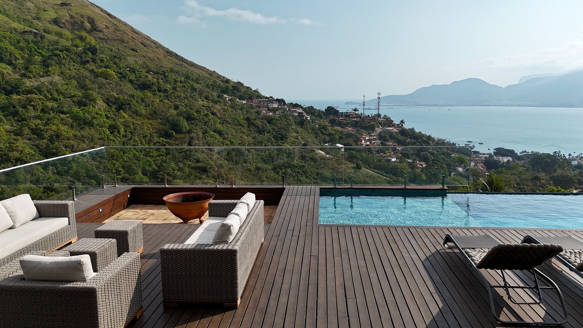 Casa moderna e luxuosa, em condomínio fechado de alto padrão, o condomínio Sobreomar, localizado a poucos metros da Vila Histórica Um refúgio com conforto e requinte, em meio à exuberante Mata Atlântica. São 4 suítes com ar-condicionado e TV,. Áreas sociais integradas, com incrível vista para o mar e montanha. Área externa sensacional, com varanda gourmet, piscina aquecida com borda infinita, espaço para fogueira.