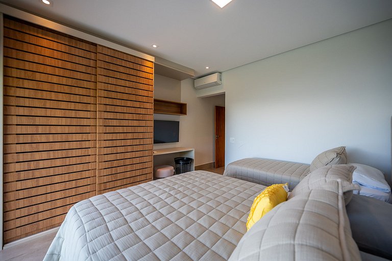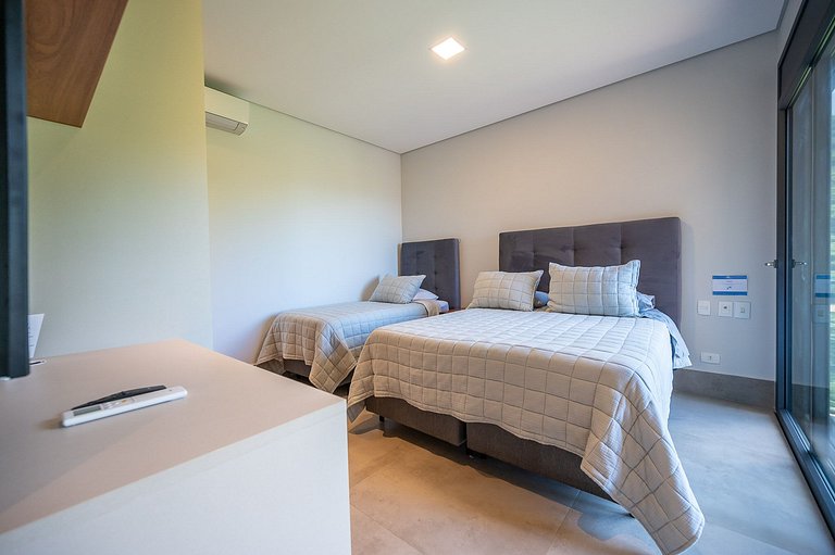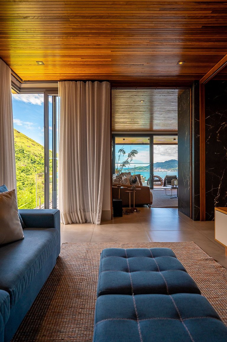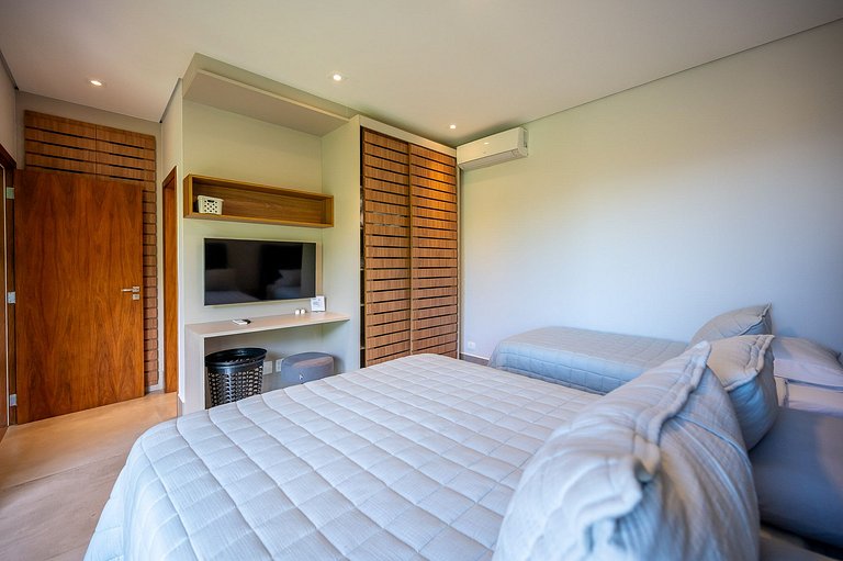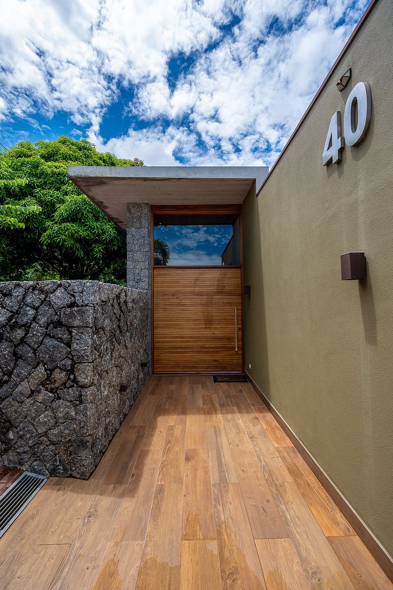 Casa moderna e luxuosa, em condomínio fechado de alto padrão, o condomínio Sobreomar, localizado a poucos metros da Vila Histórica Um refúgio com conforto e requinte, em meio à exuberante Mata Atlântica. São 4 suítes com ar-condicionado e TV,. Áreas sociais integradas, com incrível vista para o mar e montanha. Área externa sensacional, com varanda gourmet, piscina aquecida com borda infinita, espaço para fogueira.