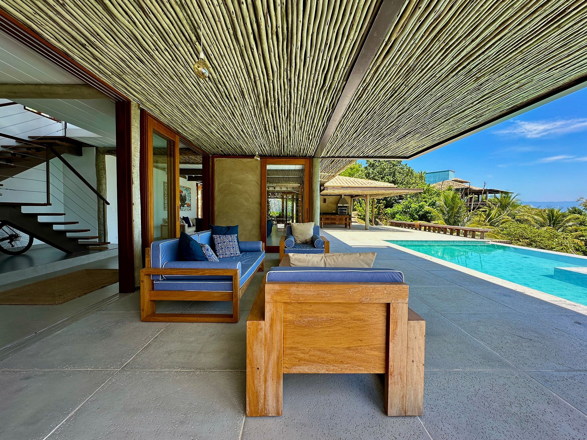 - A área interna integra a sala de estar, sala de jantar e uma cozinha completa com a lindo visual da área externa.