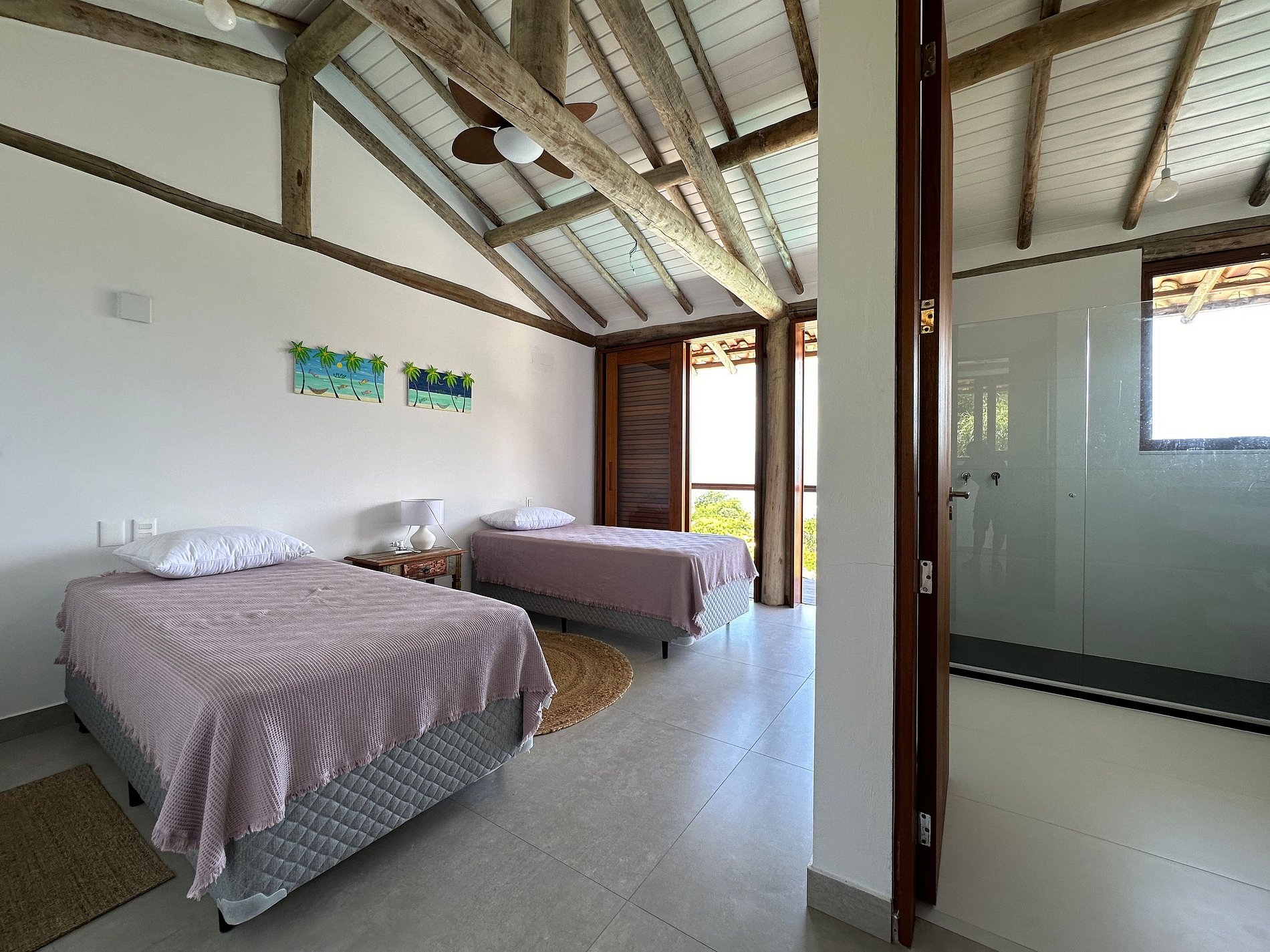 Suíte 4 (andar superior) - 1 cama de casal king (ou 2 camas de solteiro) , armário aberto e varanda;