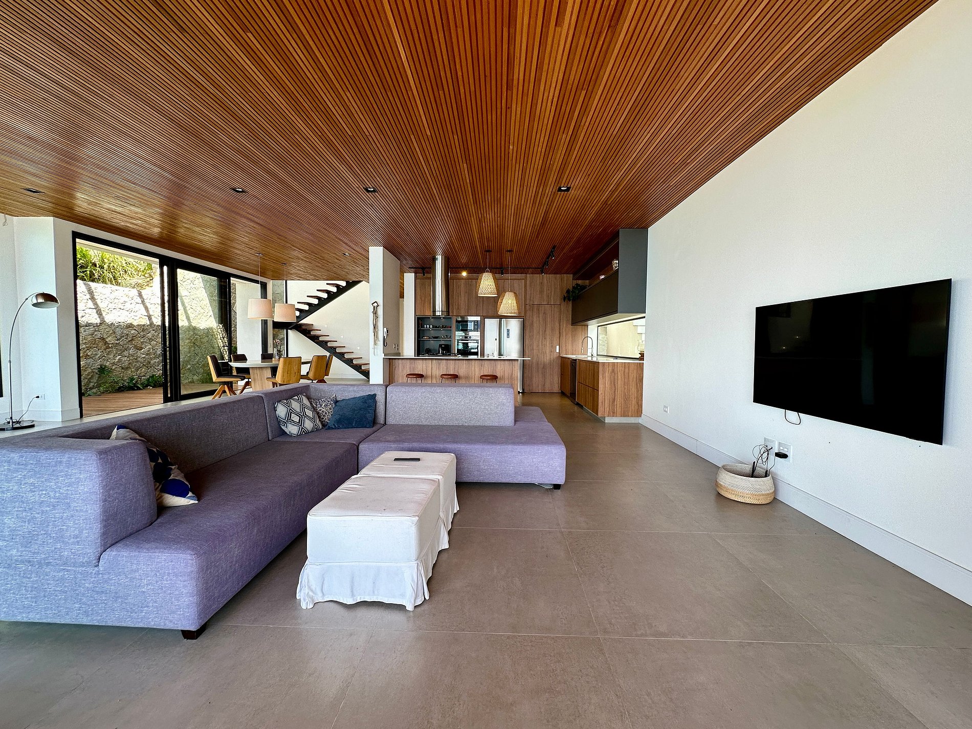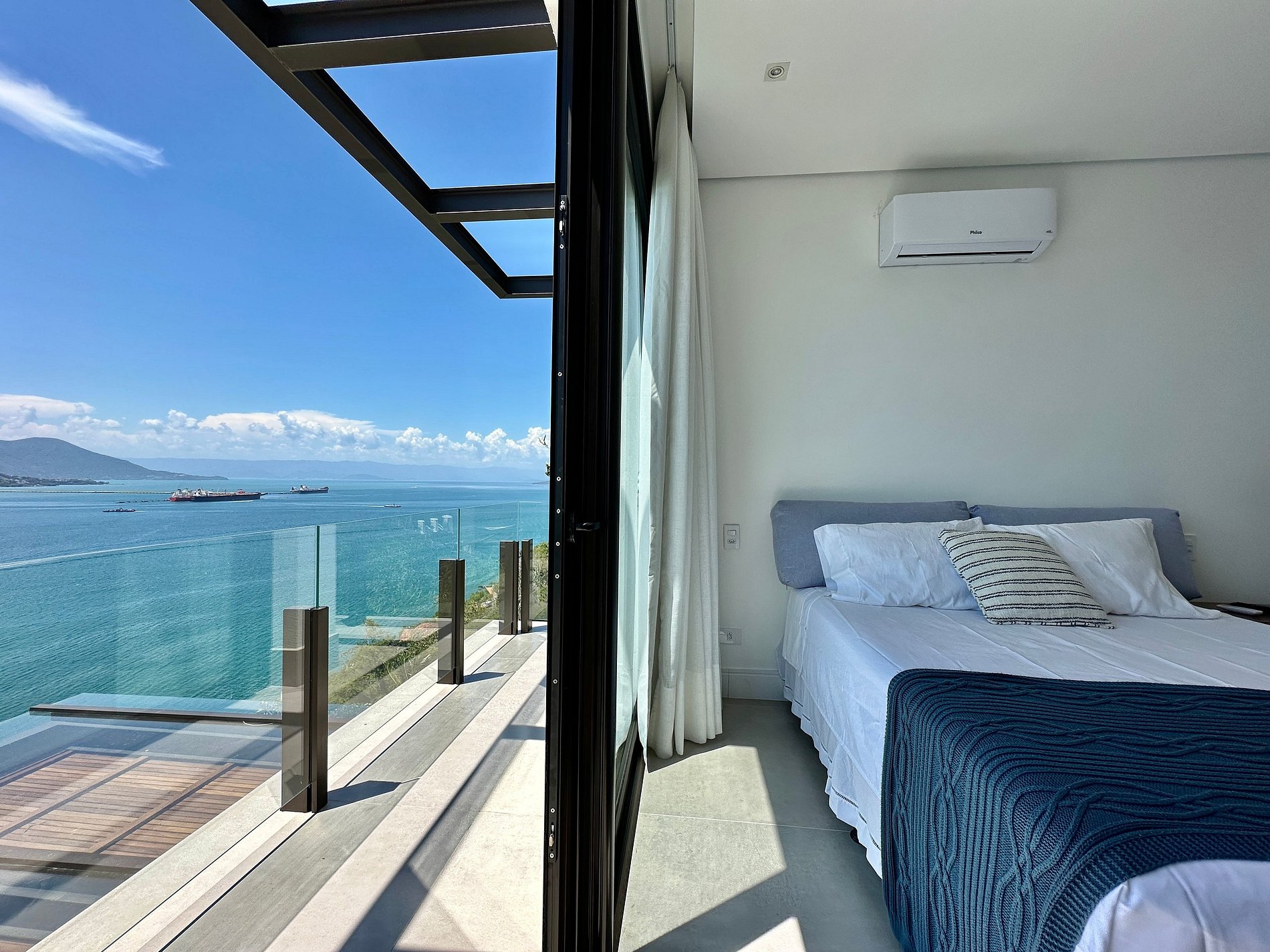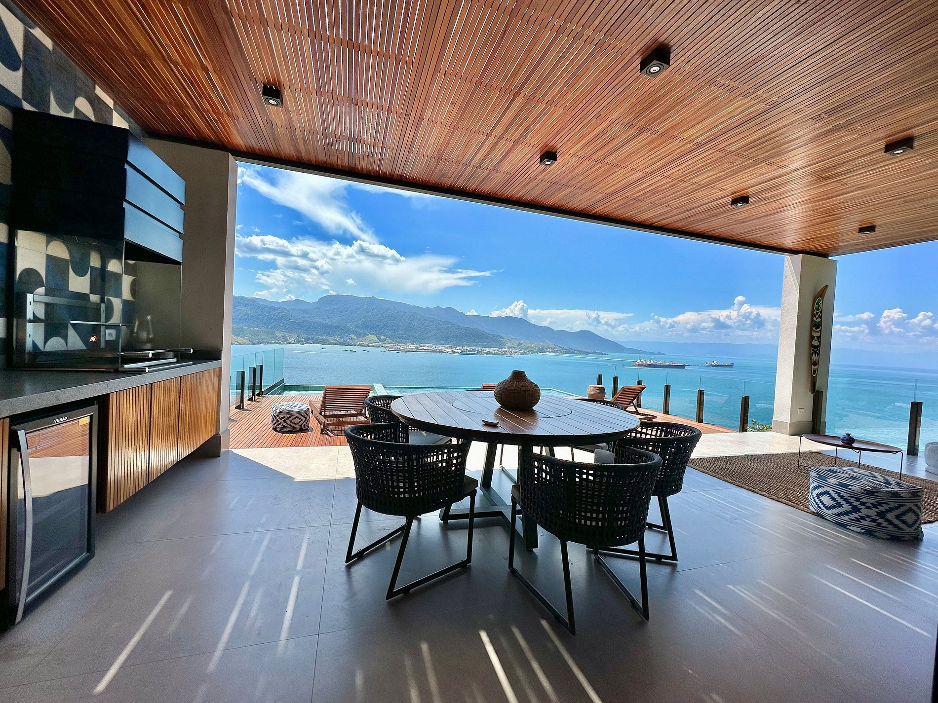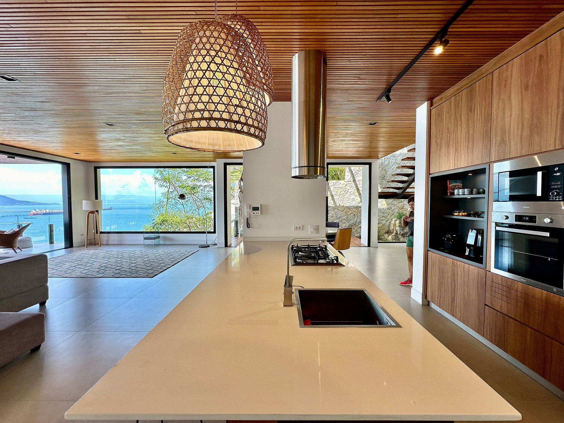 - Já no andar inferior está a parte social e externa da casa, ambas com uma vista deslumbrante para o mar. Nesta área, o hóspede irá usufruir de um ambiente totalmente integrado com salas de estar, jantar, lavabo, cozinha completa e uma varanda gourmet incrível, com Wi-fi disponível;