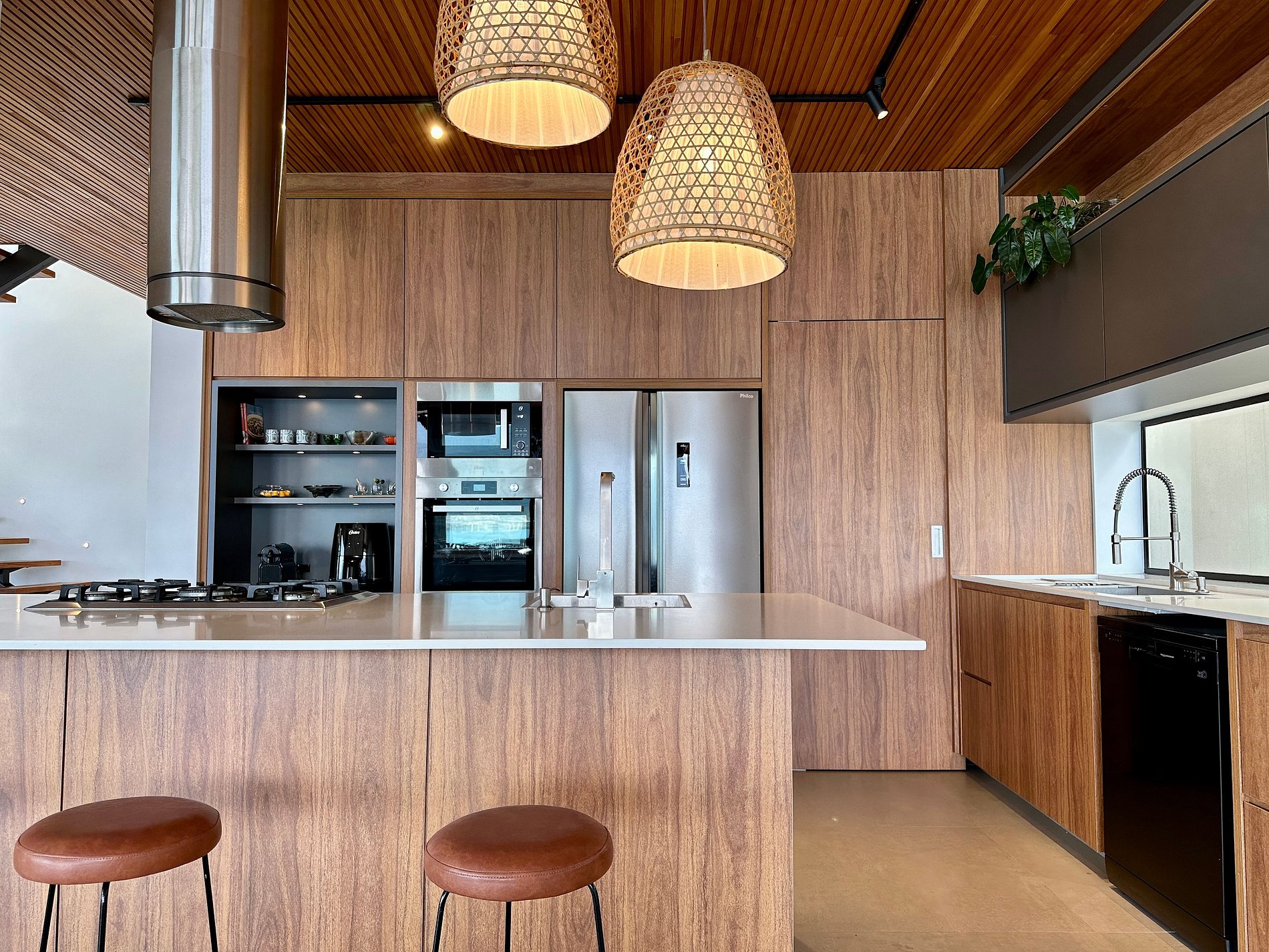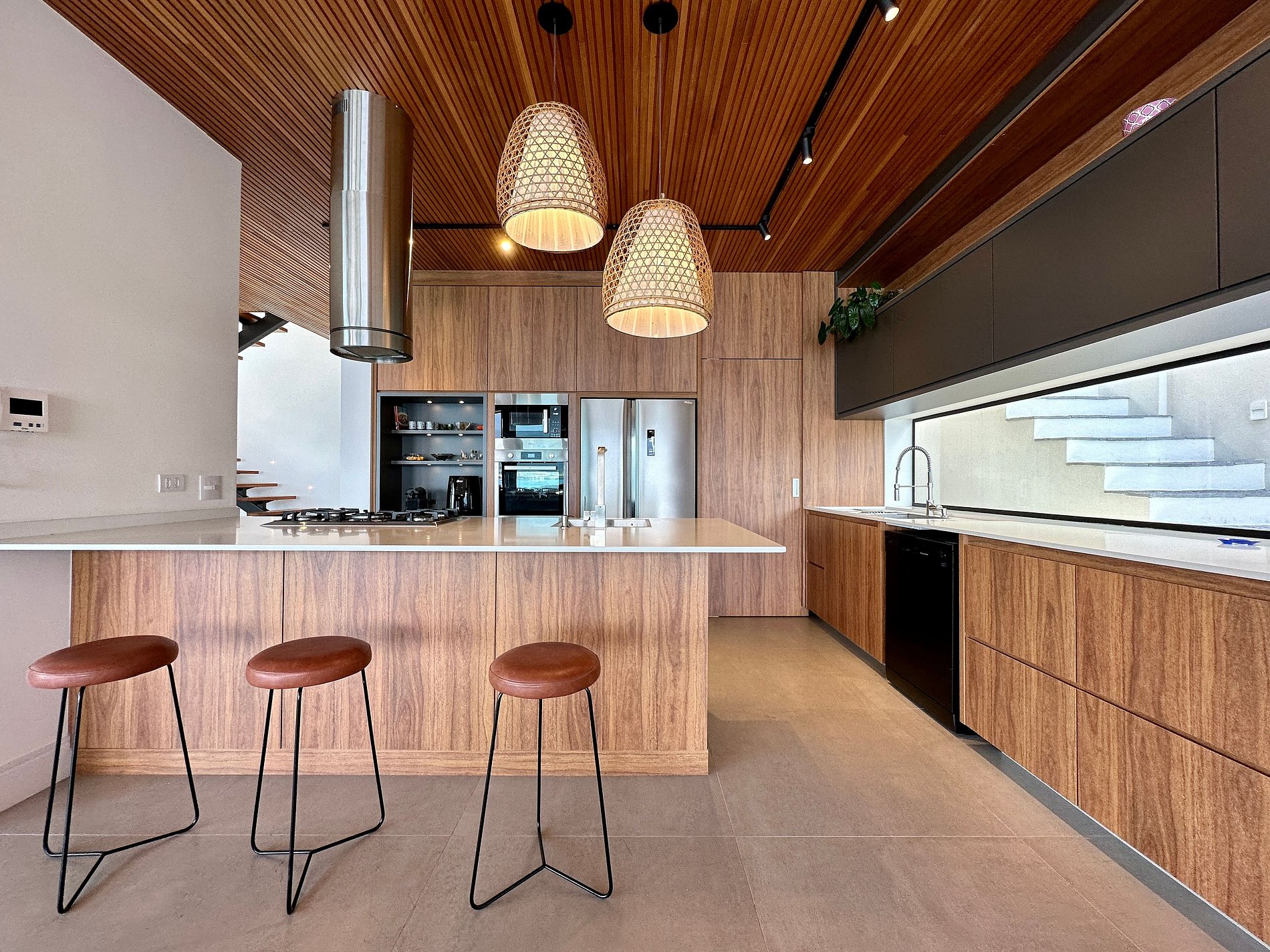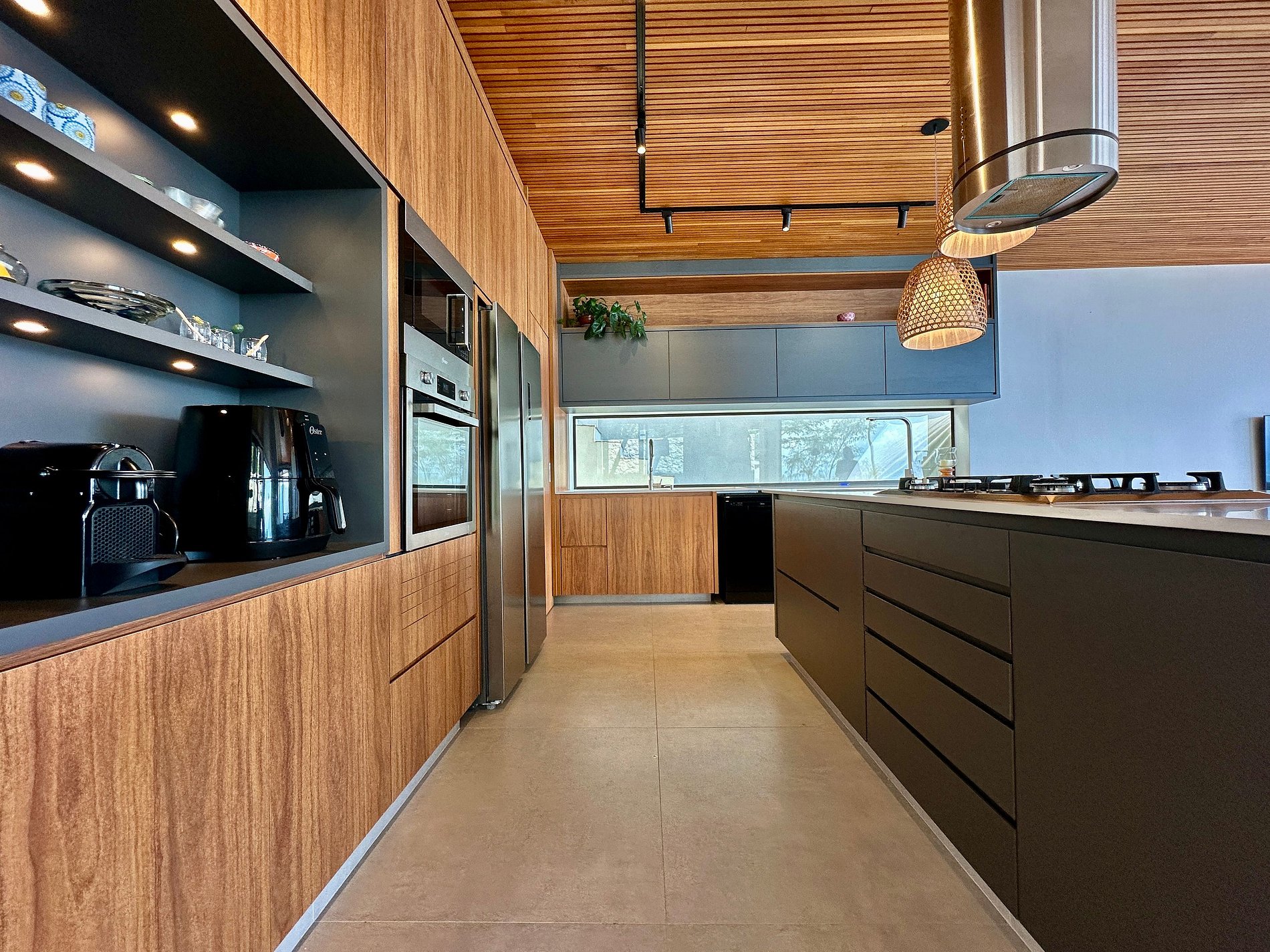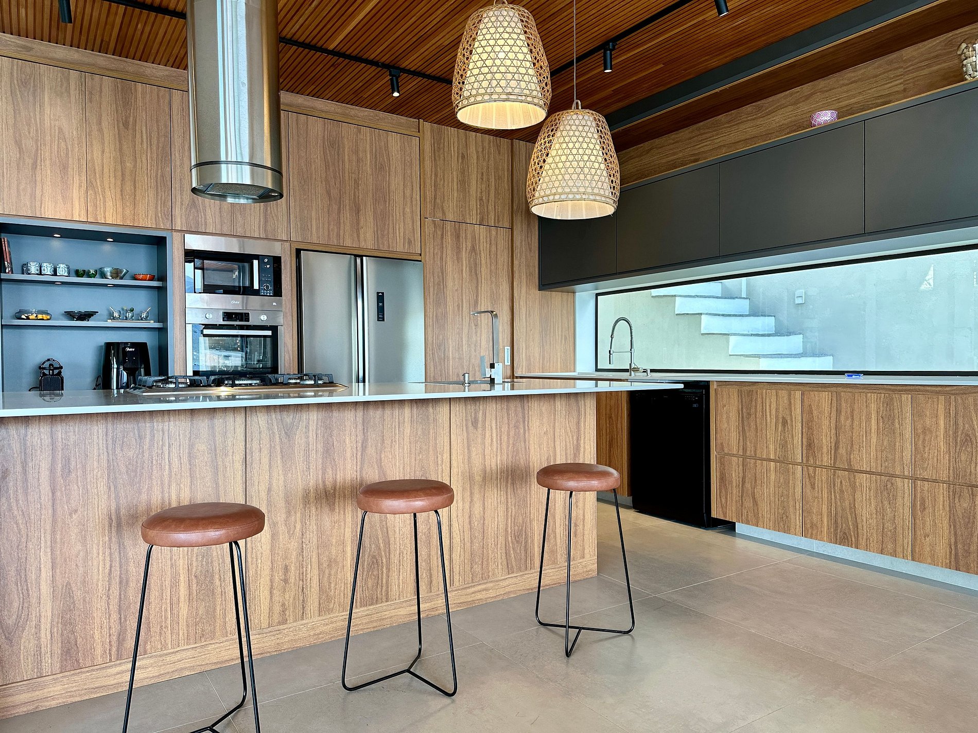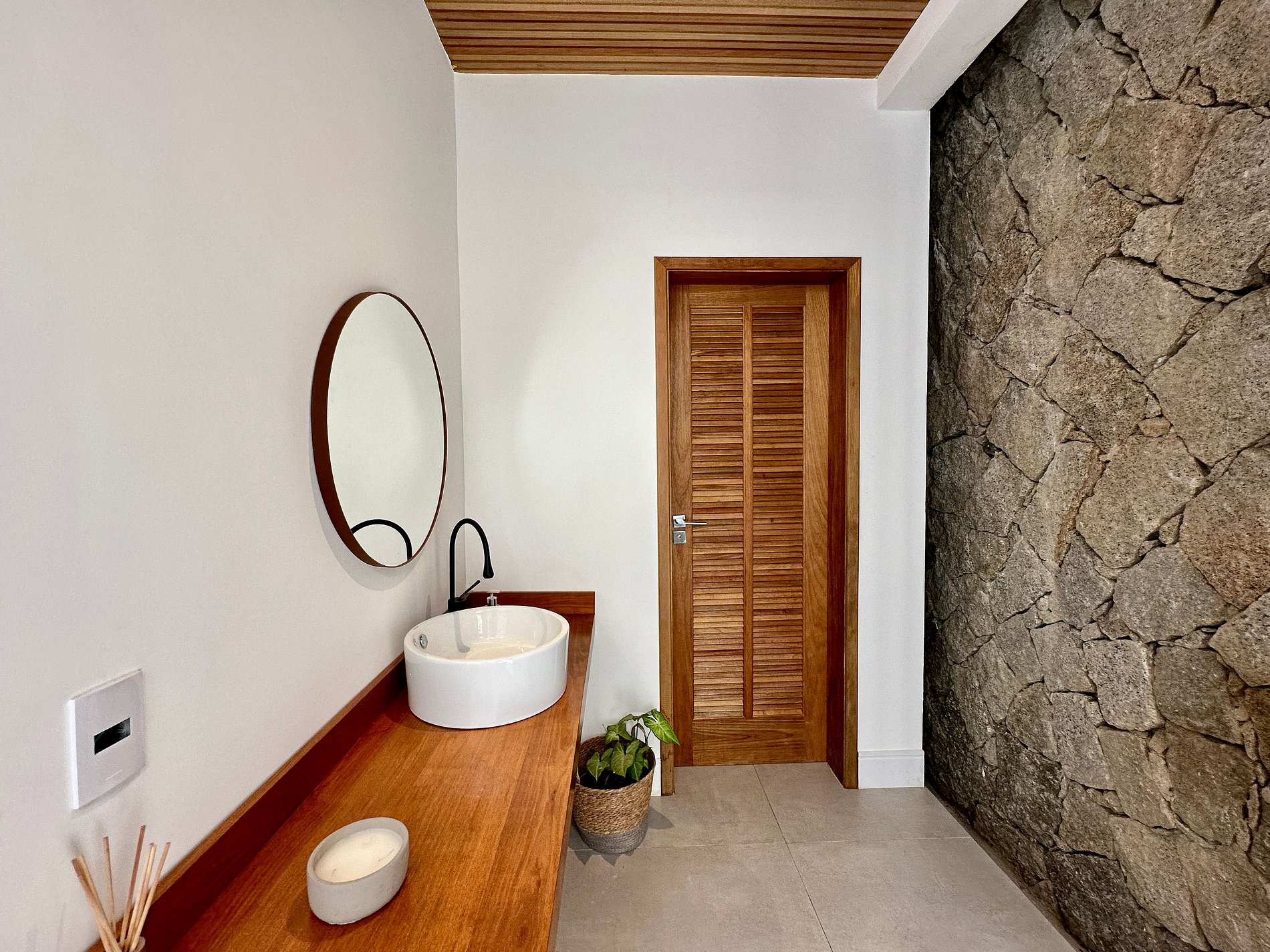 - Já no andar inferior está a parte social e externa da casa, ambas com uma vista deslumbrante para o mar. Nesta área, o hóspede irá usufruir de um ambiente totalmente integrado com salas de estar, jantar, lavabo, cozinha completa e uma varanda gourmet incrível, com Wi-fi disponível;
