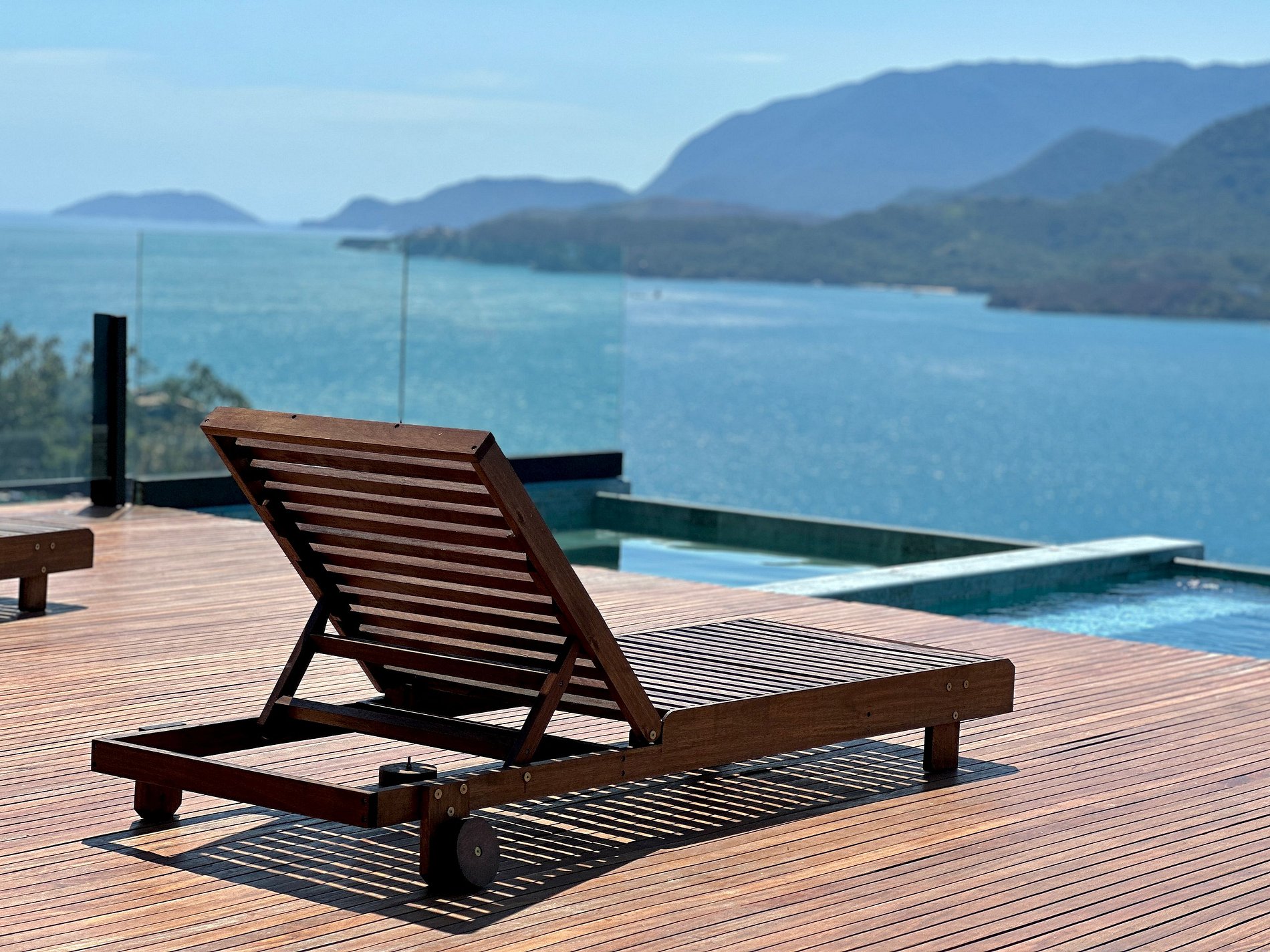 - Piscina de borda infinita (sem aquecimento) e, ao lado, uma jacuzzi aquecida, uma vista estonteante para o mar e ilha das cabras, proporcionam um momento único de celebração e paz, com direito a assistir o pôr do sol mais bonito do Brasil de forma exclusiva;