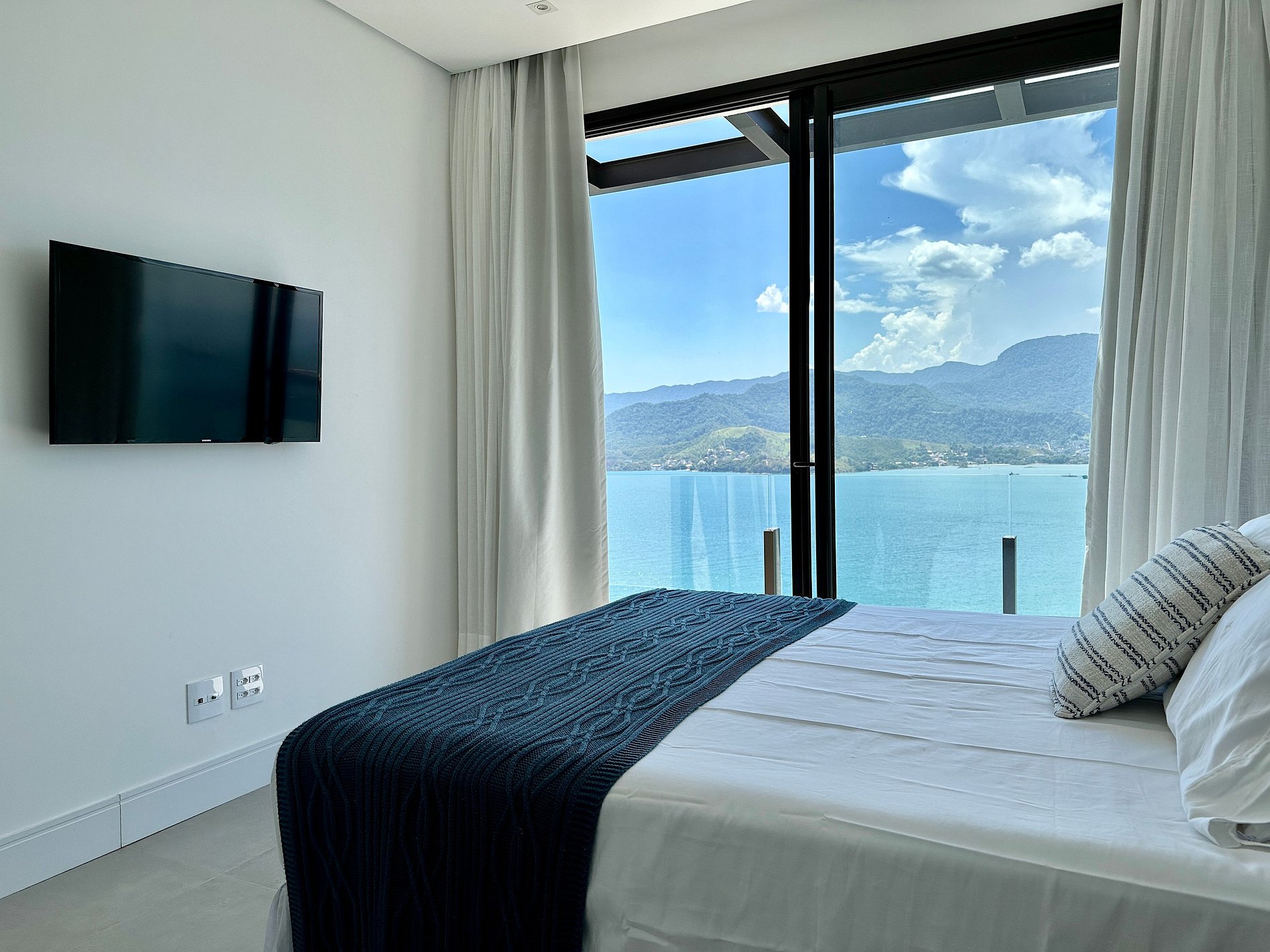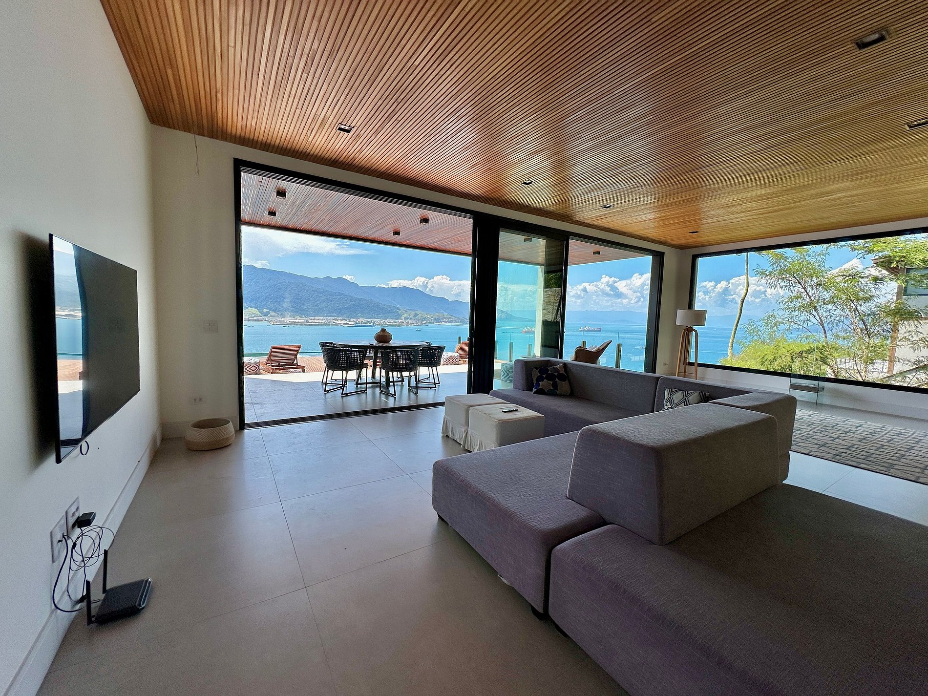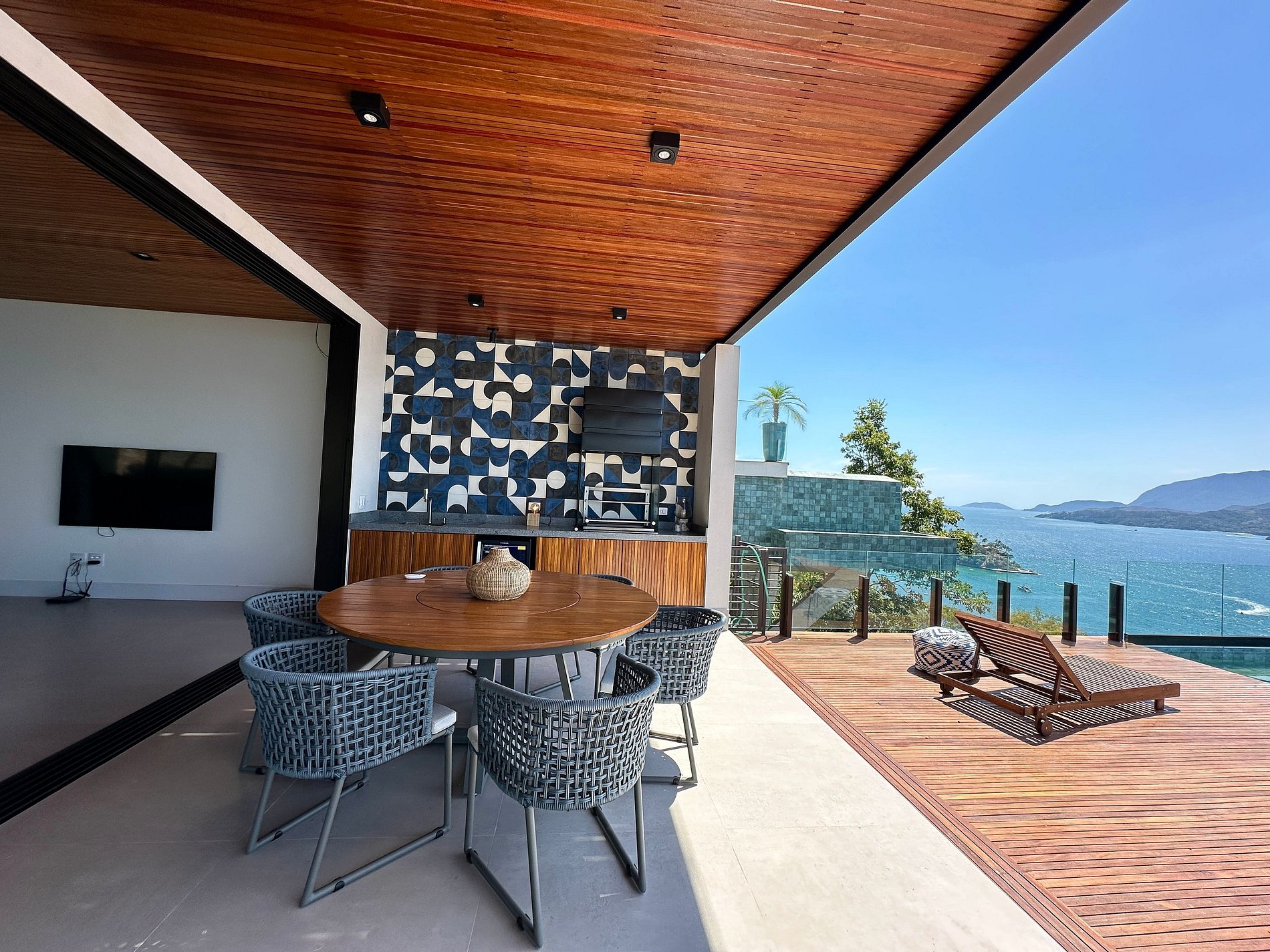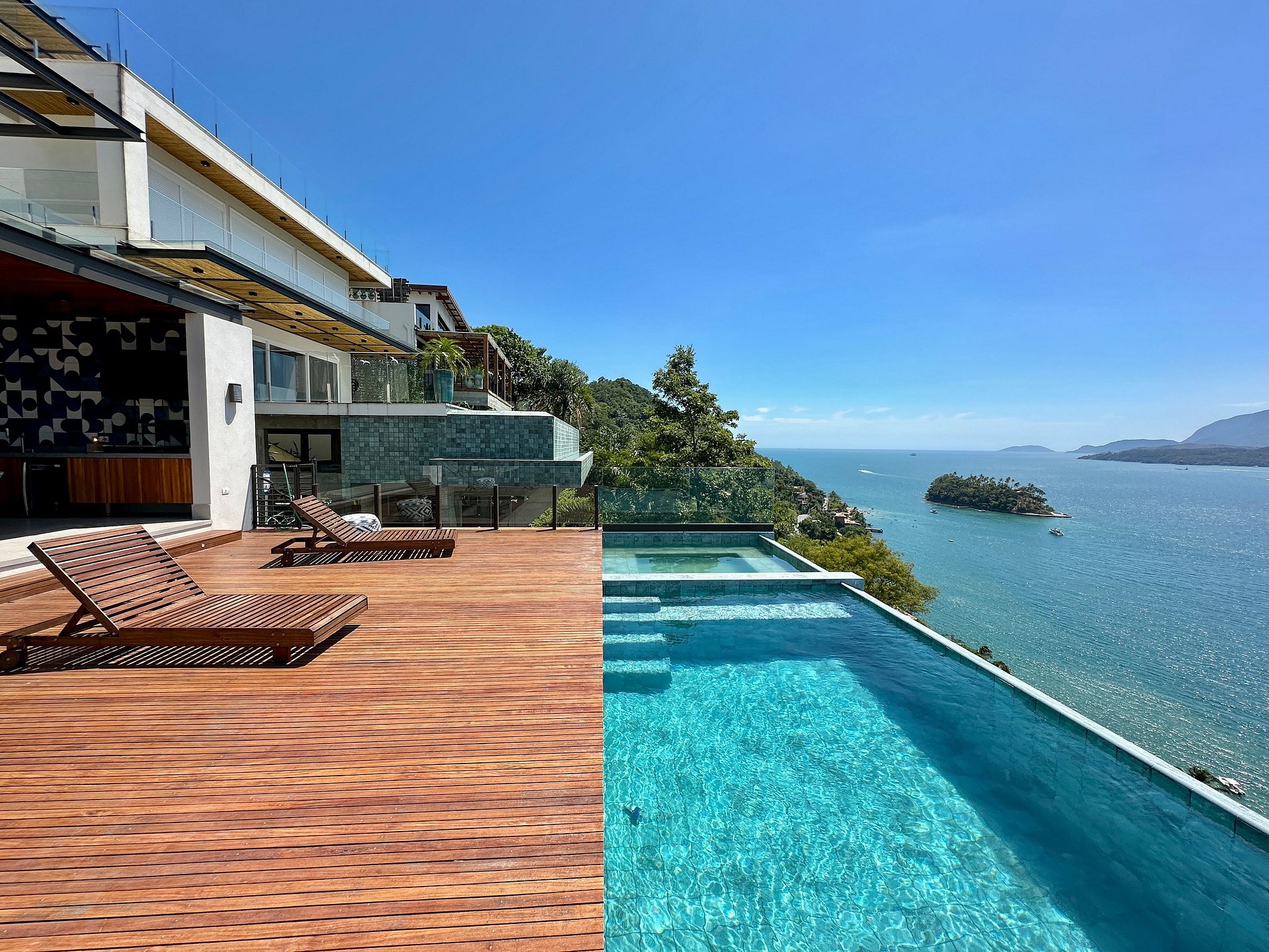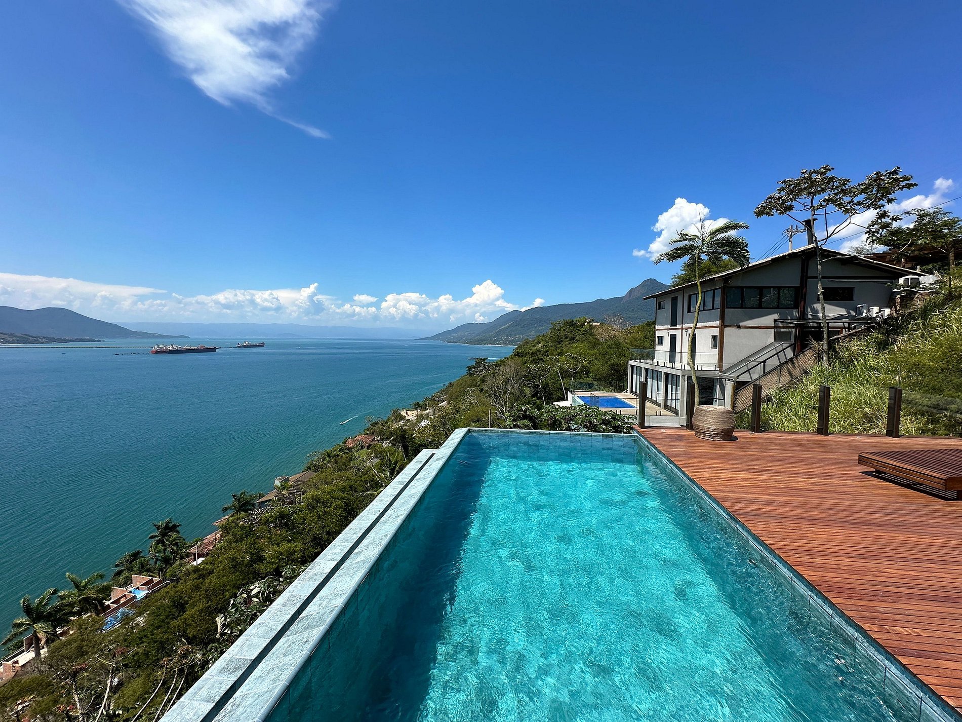 Casa moderna em um local paradisíaco ao Sul de Ilhabela! Ideal para 6 hóspedes. São 3 suítes com ar-condicionado. Suíte principal com uma charmosa banheira, um espaço de relaxamento perfeito. Wi-fi, varanda gourmet com churrasqueira e vista espetacular para o mar, proporcionando um cenário de tirar o fôlego. A piscina de borda infinita, jacuzzi com hidromassagem aquecida é ideal para um fim de tarde memorável. **Há câmeras nos portões de acesso para detectar a quantidade correta de hóspedes.