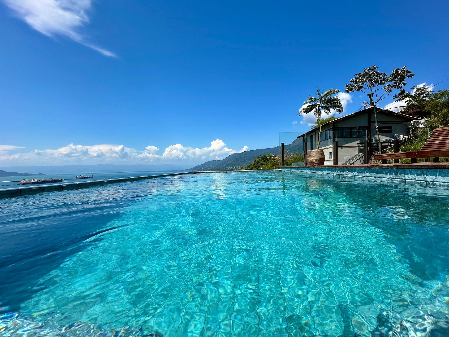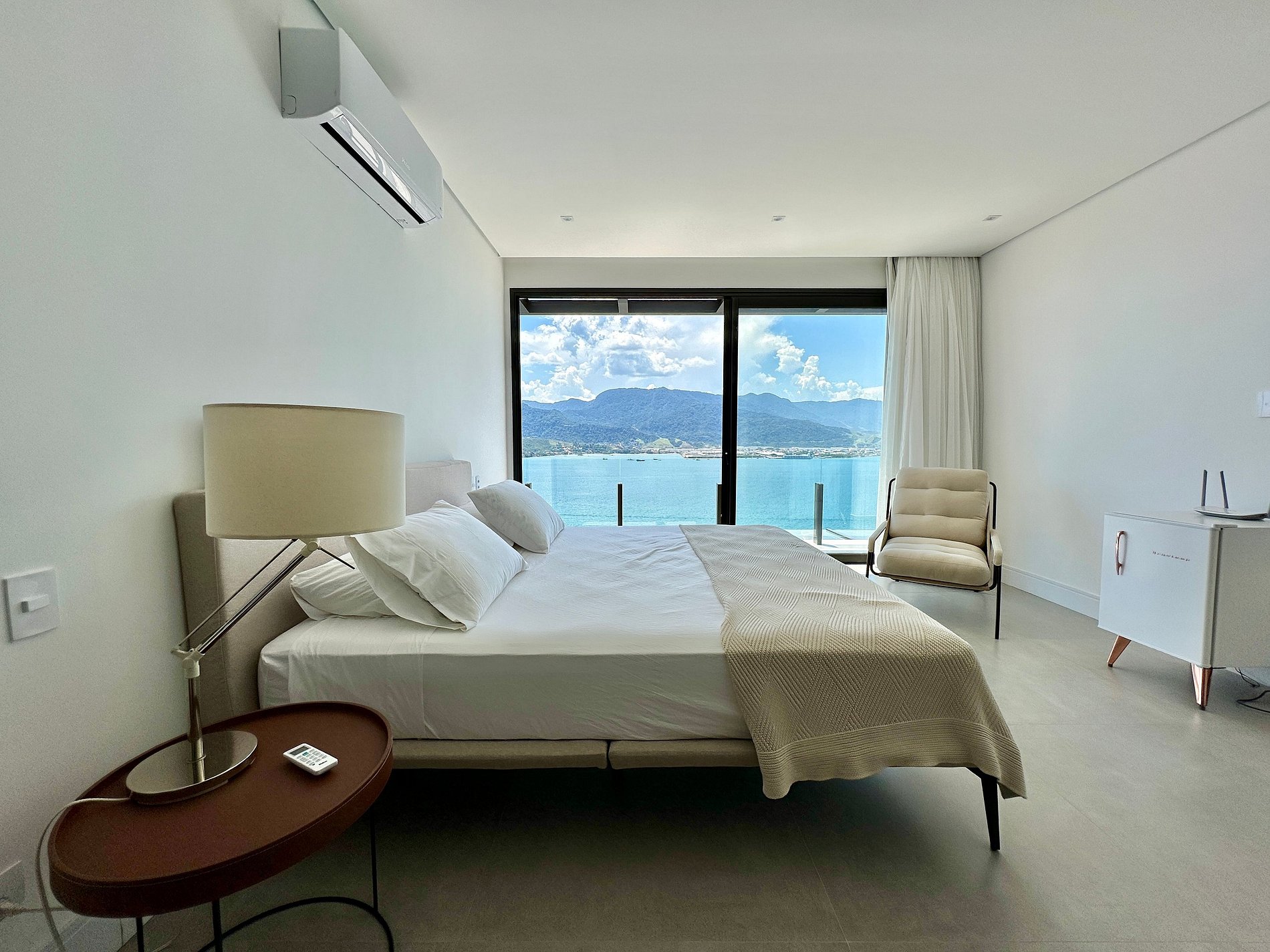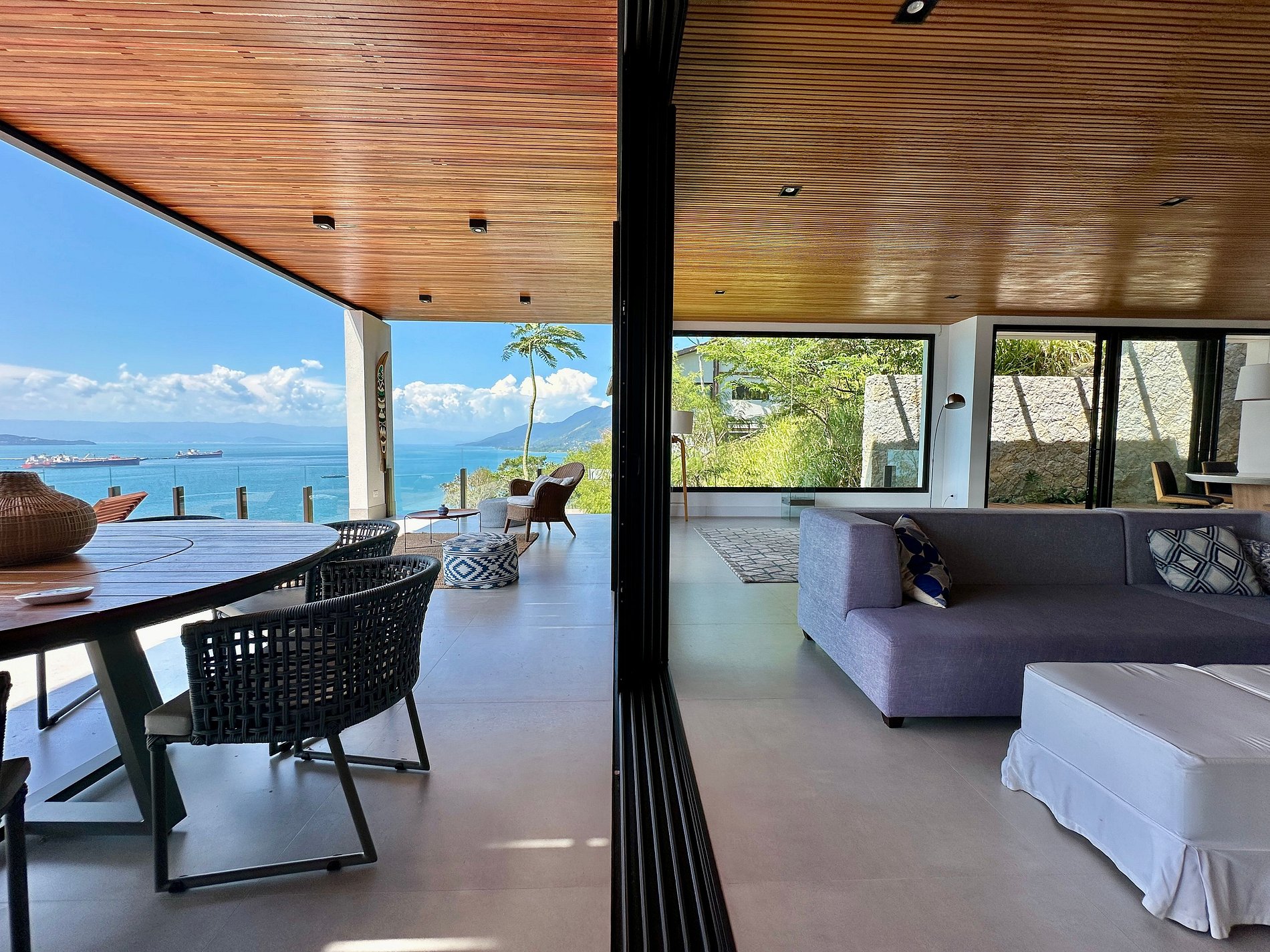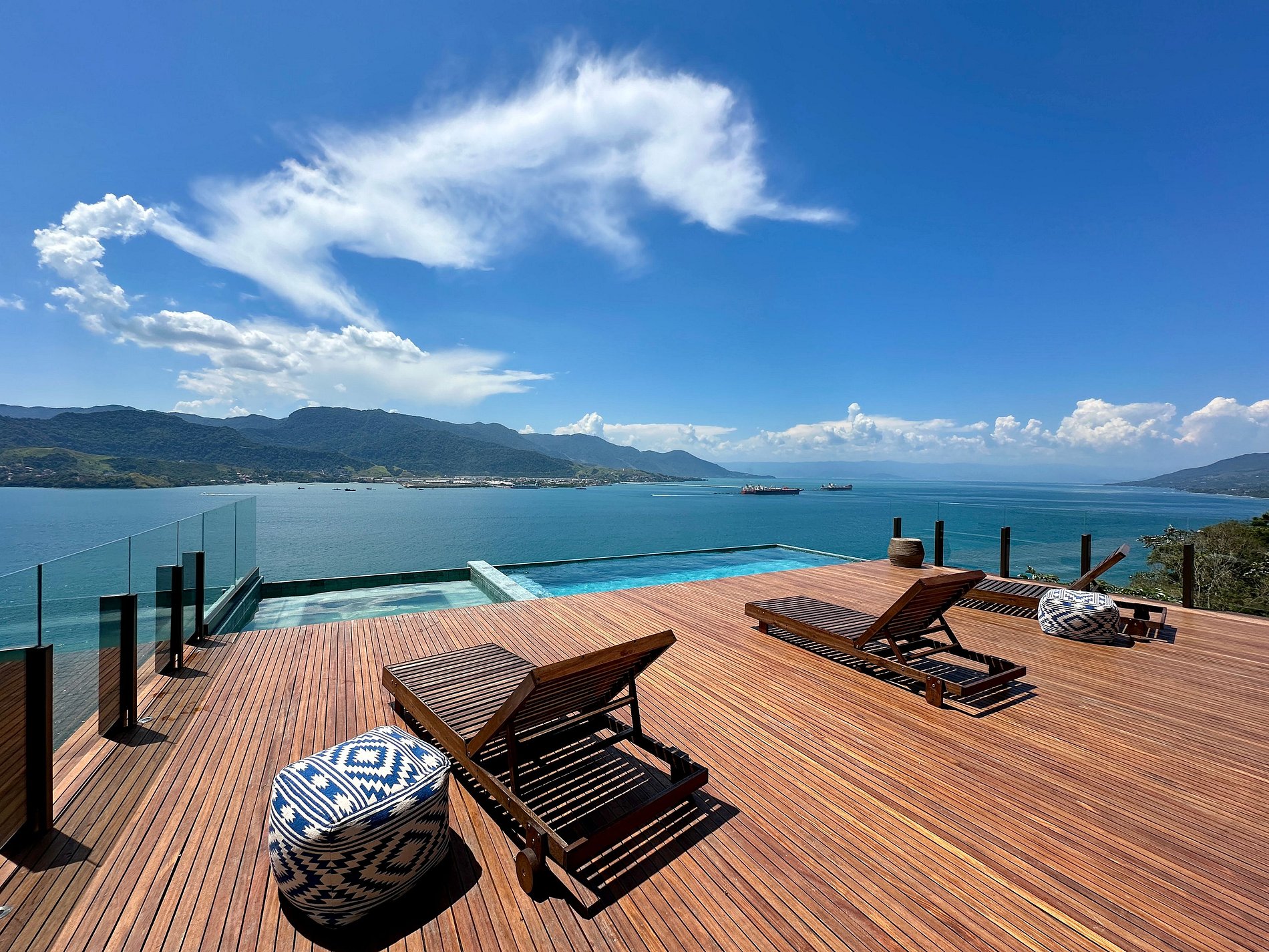 Casa moderna em um local paradisíaco ao Sul de Ilhabela! Ideal para 6 hóspedes. São 3 suítes com ar-condicionado. Suíte principal com uma charmosa banheira, um espaço de relaxamento perfeito. Wi-fi, varanda gourmet com churrasqueira e vista espetacular para o mar, proporcionando um cenário de tirar o fôlego. A piscina de borda infinita, jacuzzi com hidromassagem aquecida é ideal para um fim de tarde memorável. **Há câmeras nos portões de acesso para detectar a quantidade correta de hóspedes.