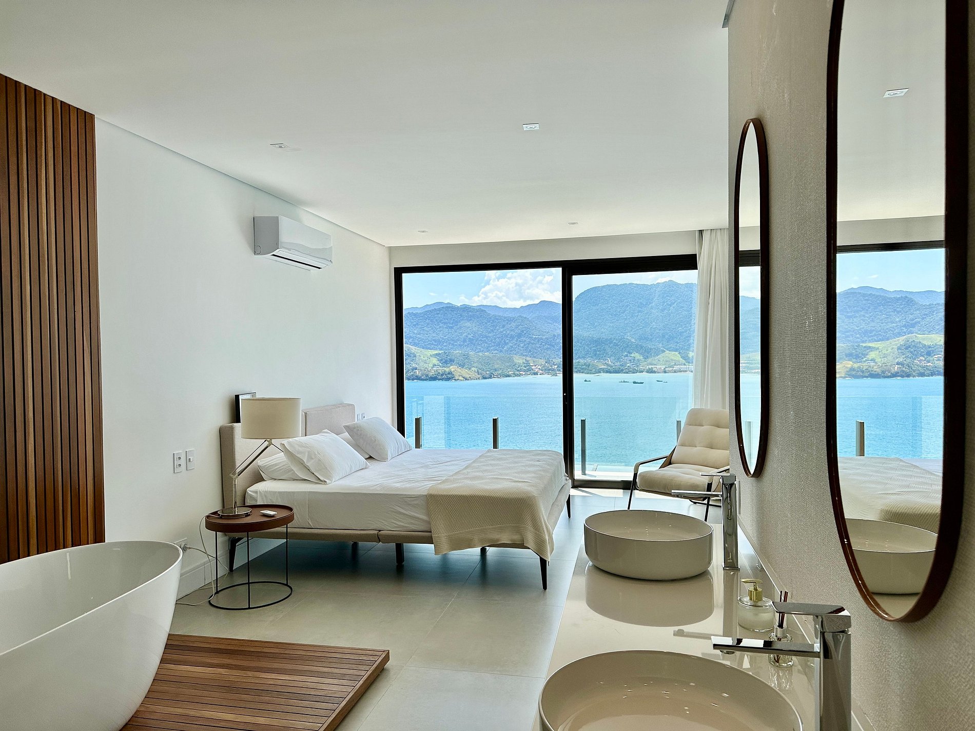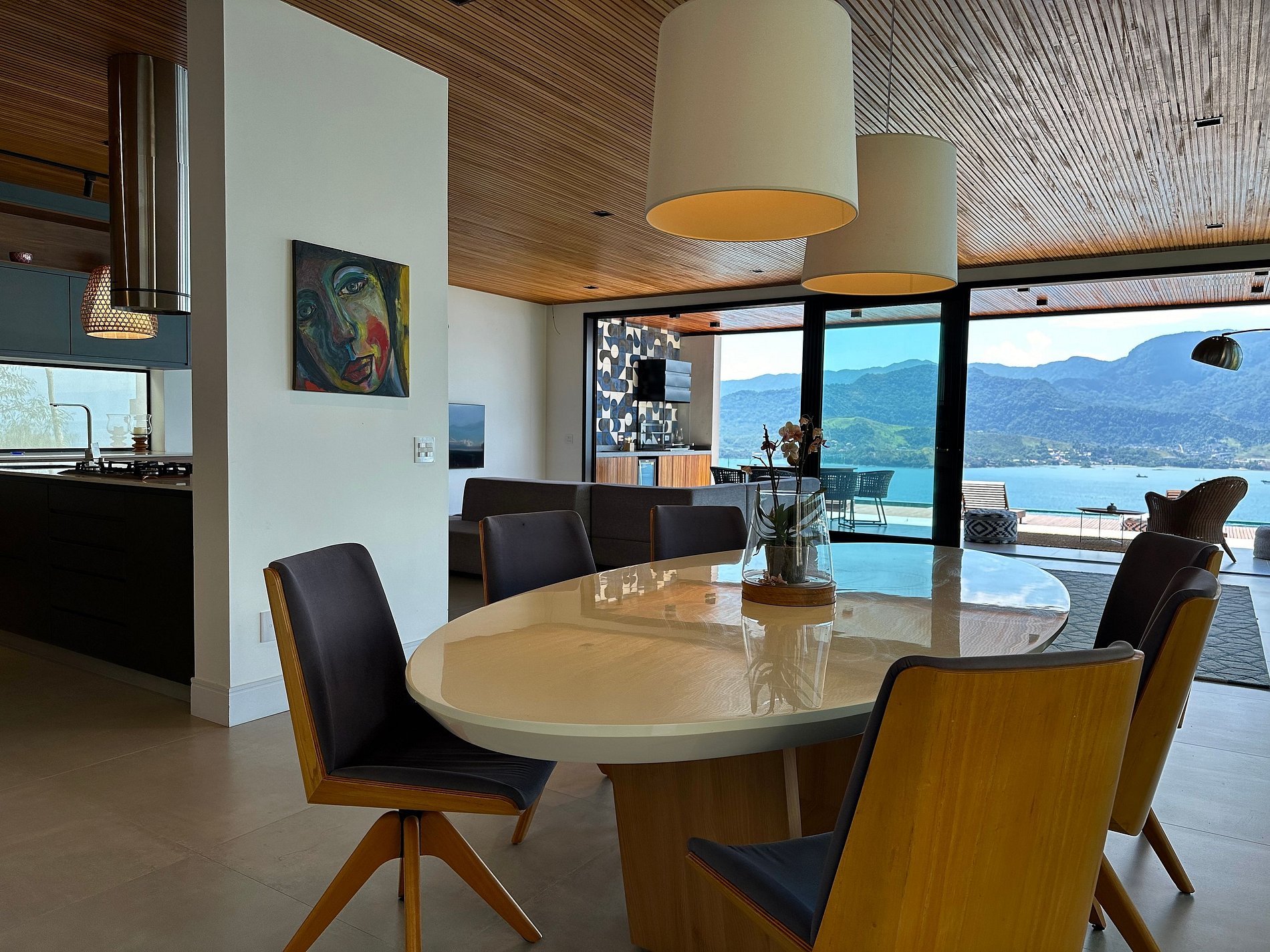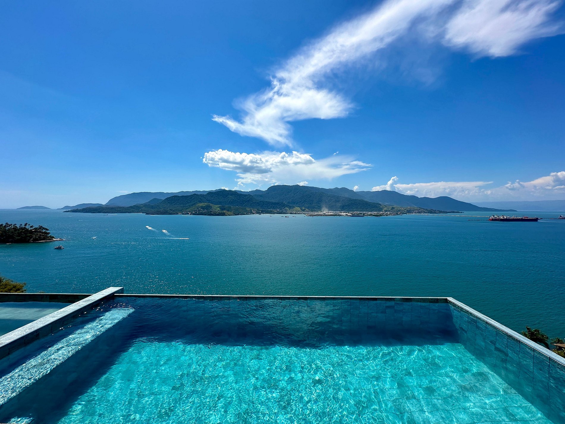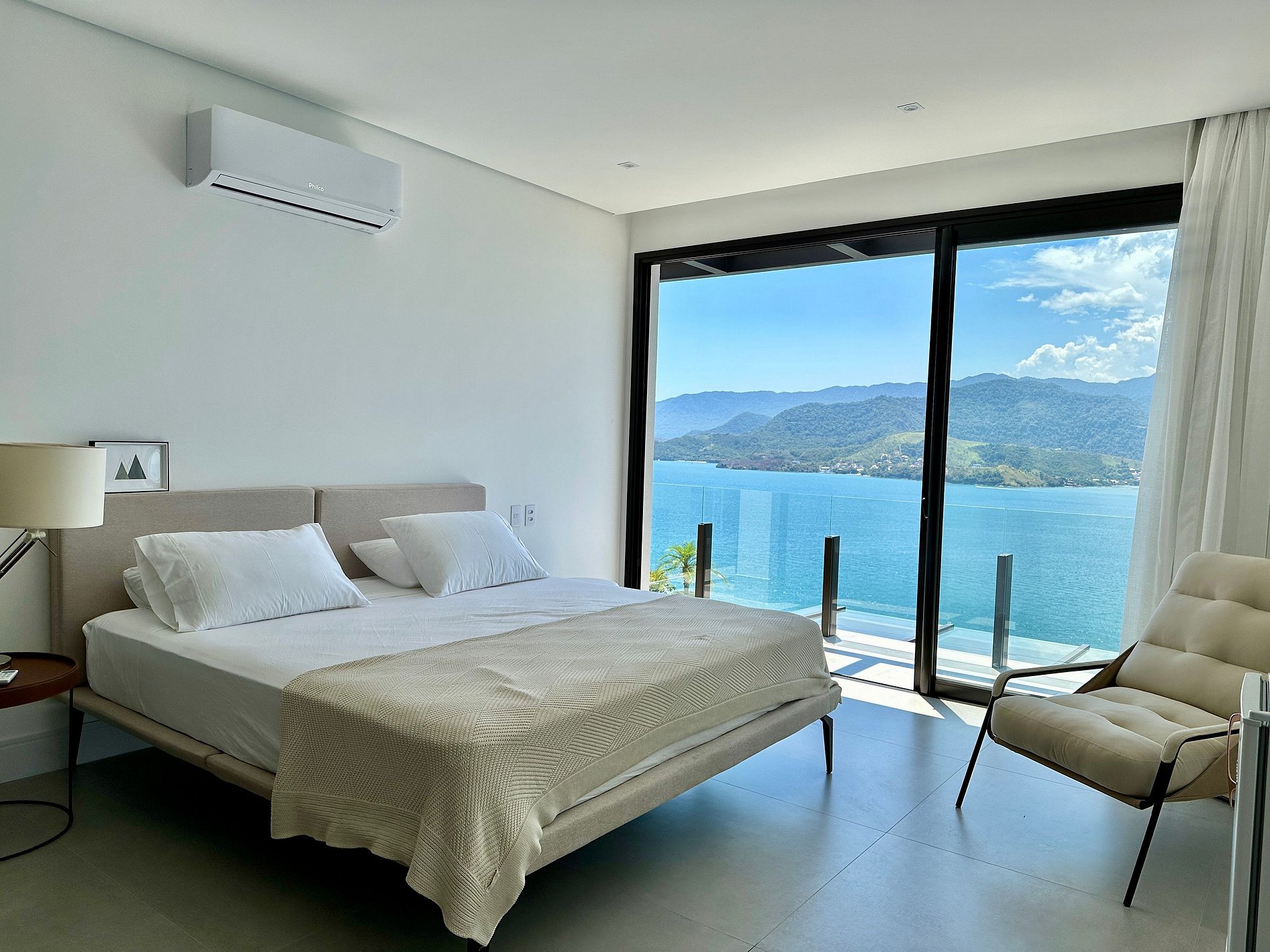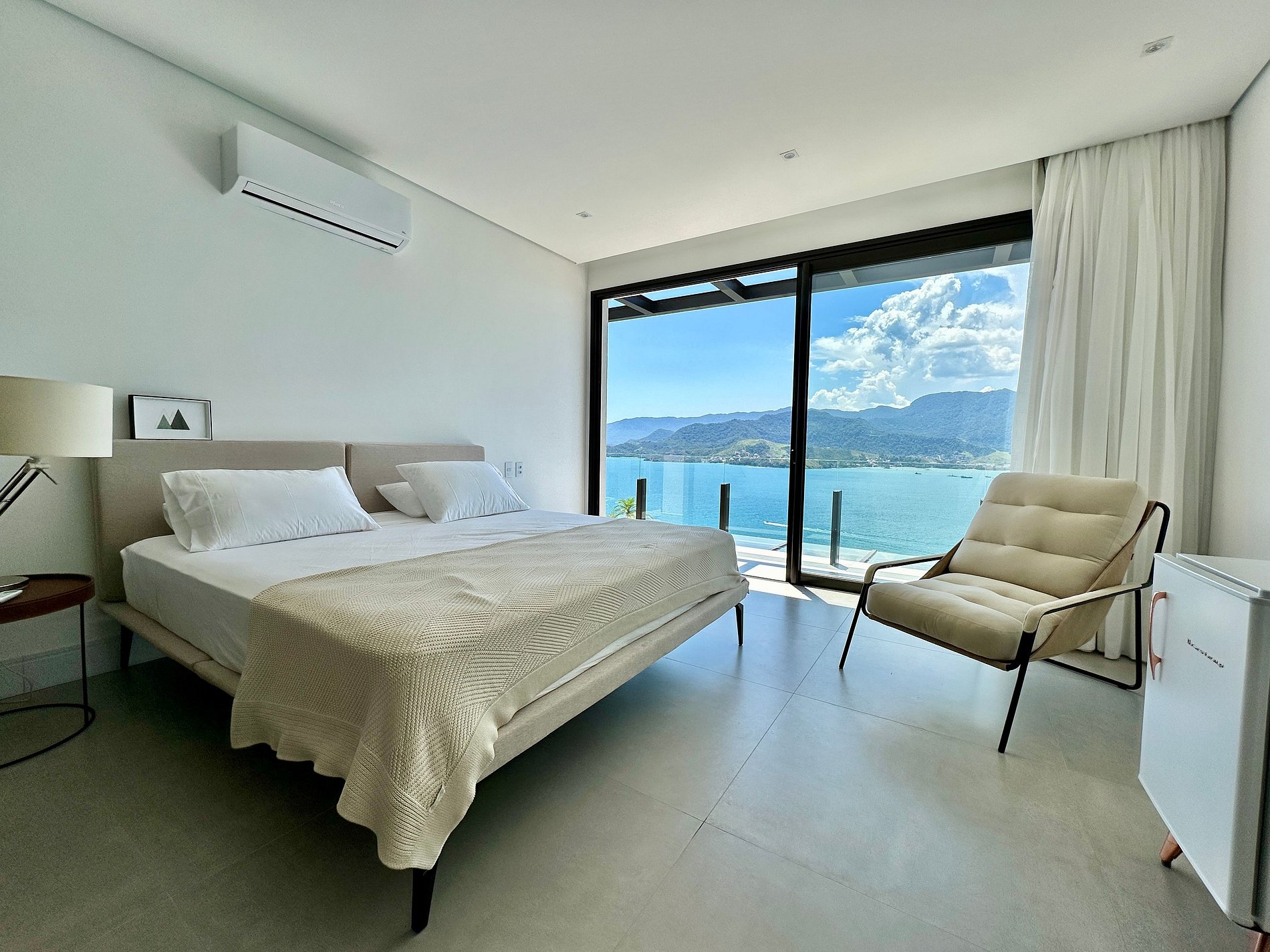 Casa moderna em um local paradisíaco ao Sul de Ilhabela! Ideal para 6 hóspedes. São 3 suítes com ar-condicionado. Suíte principal com uma charmosa banheira, um espaço de relaxamento perfeito. Wi-fi, varanda gourmet com churrasqueira e vista espetacular para o mar, proporcionando um cenário de tirar o fôlego. A piscina de borda infinita, jacuzzi com hidromassagem aquecida é ideal para um fim de tarde memorável. **Há câmeras nos portões de acesso para detectar a quantidade correta de hóspedes.