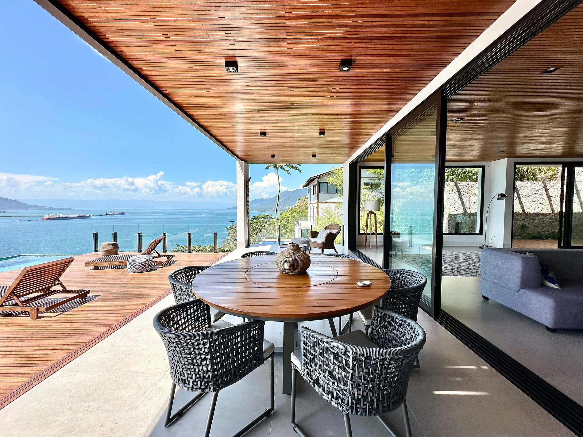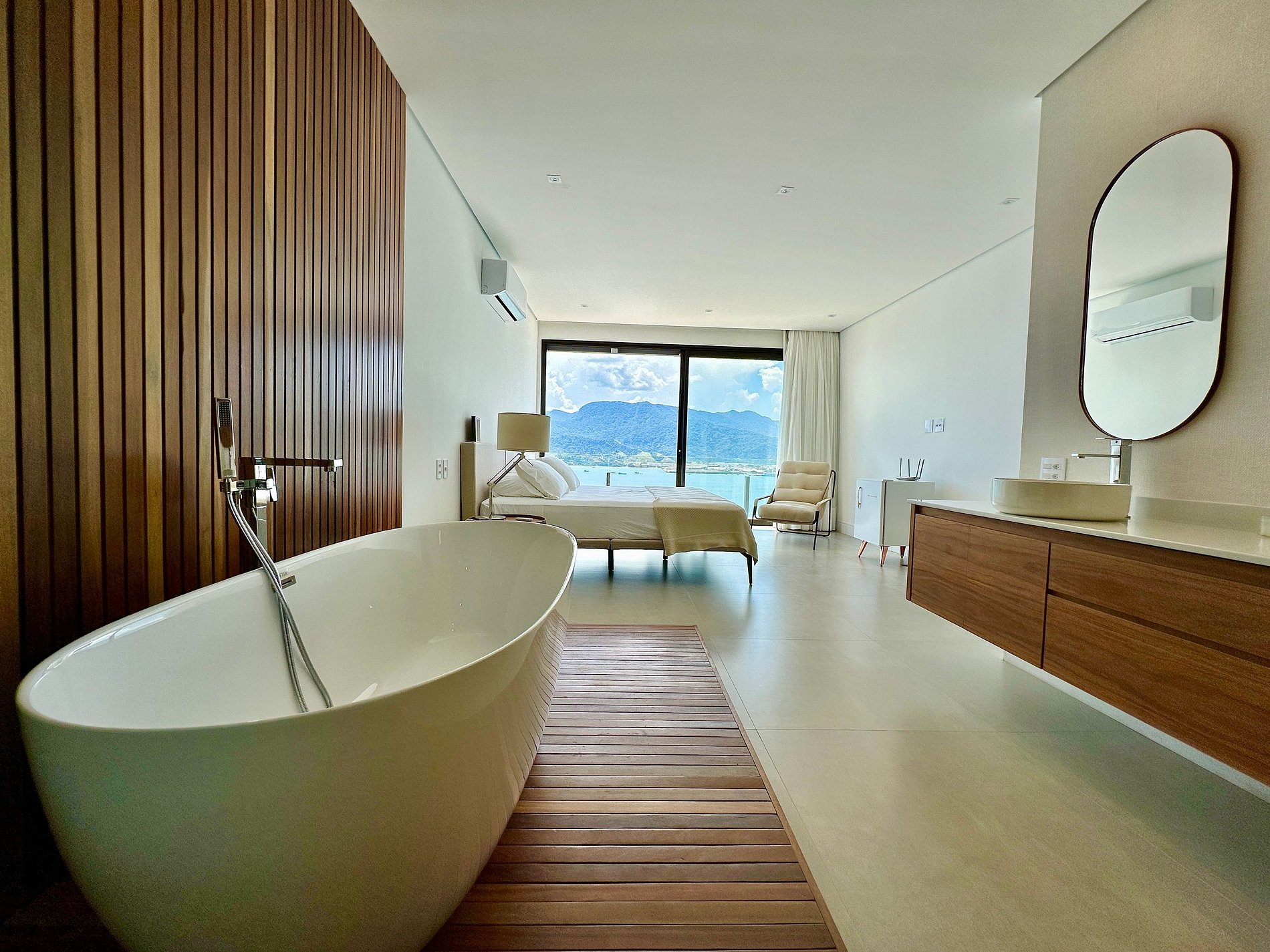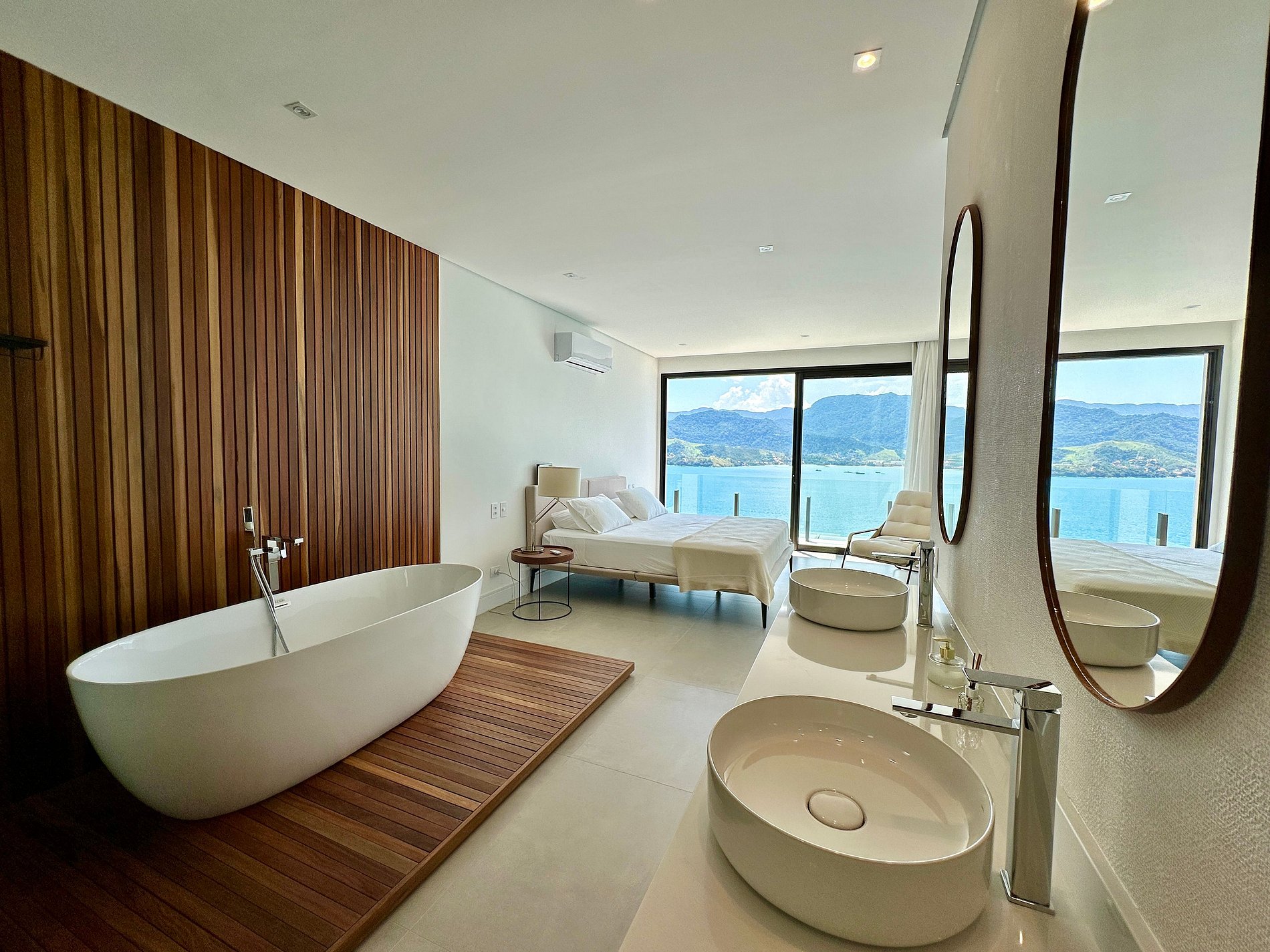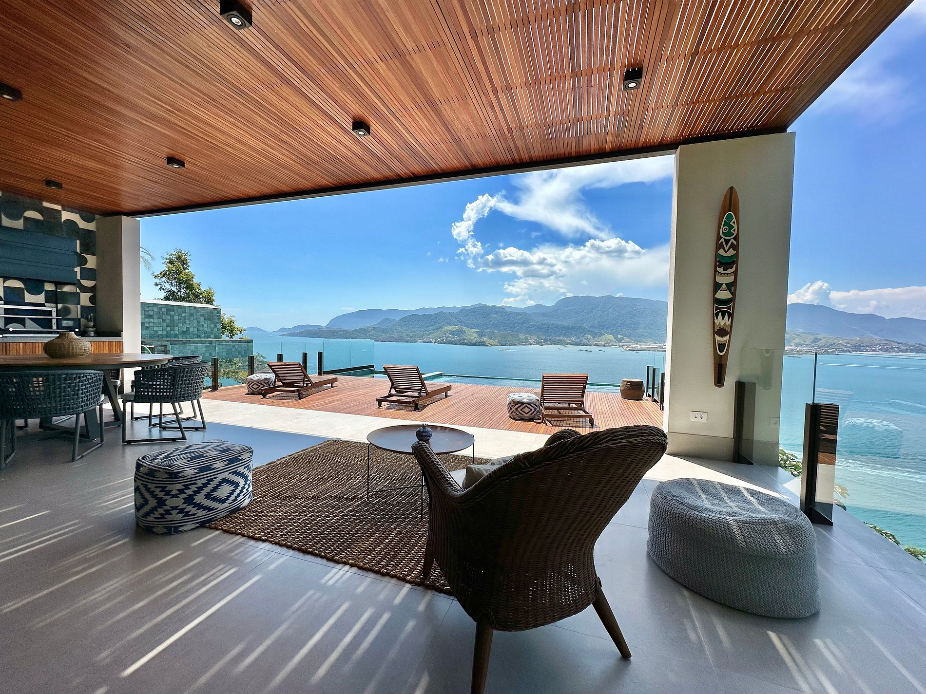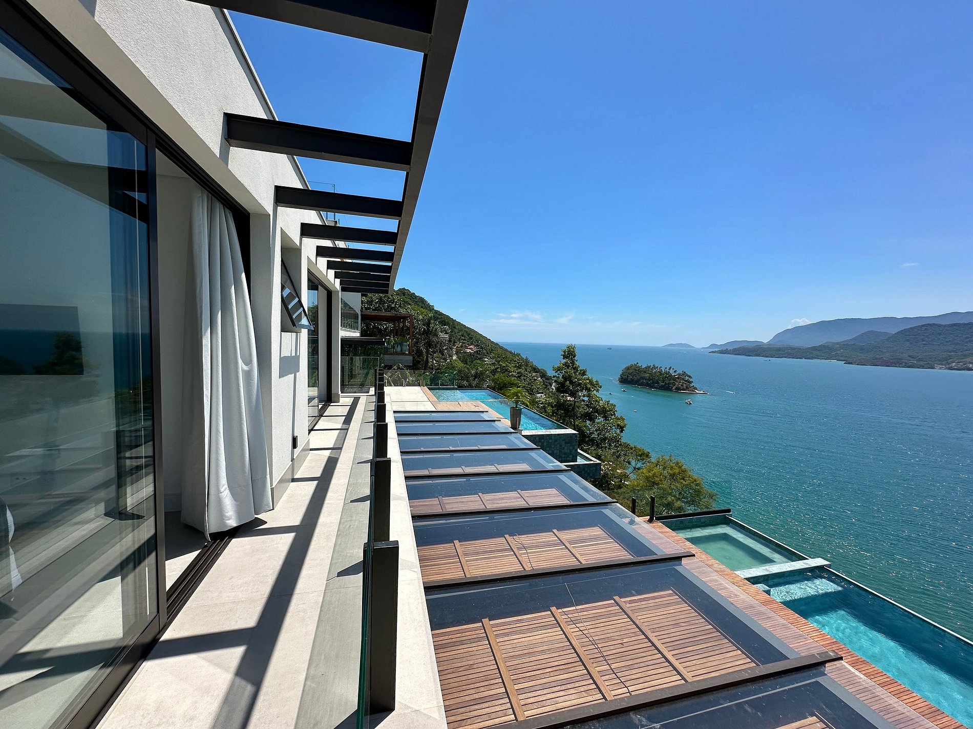 Casa moderna em um local paradisíaco ao Sul de Ilhabela! Ideal para 6 hóspedes. São 3 suítes com ar-condicionado. Suíte principal com uma charmosa banheira, um espaço de relaxamento perfeito. Wi-fi, varanda gourmet com churrasqueira e vista espetacular para o mar, proporcionando um cenário de tirar o fôlego. A piscina de borda infinita, jacuzzi com hidromassagem aquecida é ideal para um fim de tarde memorável. **Há câmeras nos portões de acesso para detectar a quantidade correta de hóspedes.