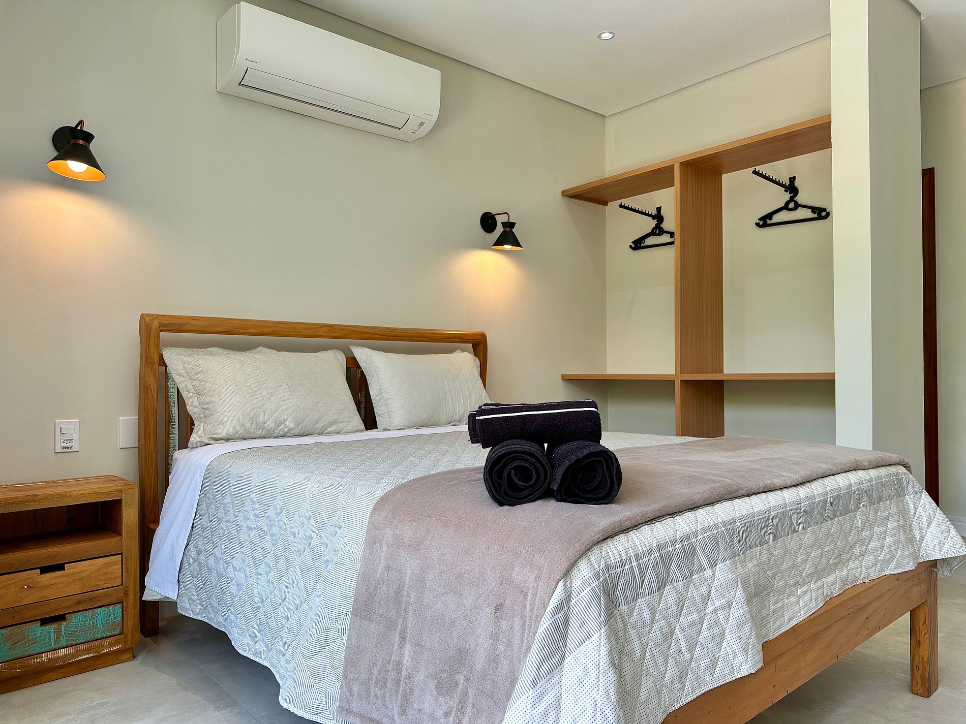 Desfrute de um refúgio à beira-mar no nosso moderno flat em Ilhabela, a poucos passos da Praia do Veloso. Projetado para casais, cada flat oferece uma cozinha compacta. Explore cachoeiras e trilhas nas proximidades, depois retorne e relaxe na piscina com espreguiçadeiras. ATENÇÃO: NÃO É PERMITIDO USO DE FOGÃO NO FLAT!