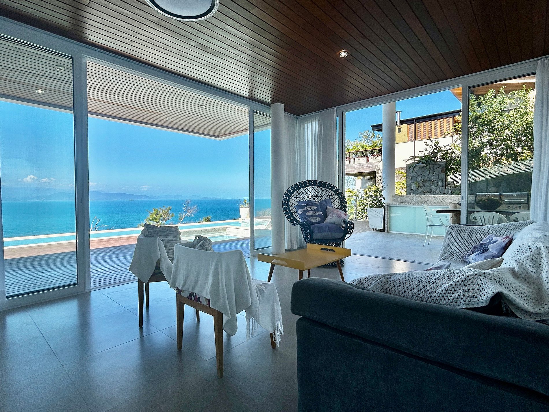 • Arquitetura moderna, integração total com a natureza e vista mar/montanha de todos os ambientes.