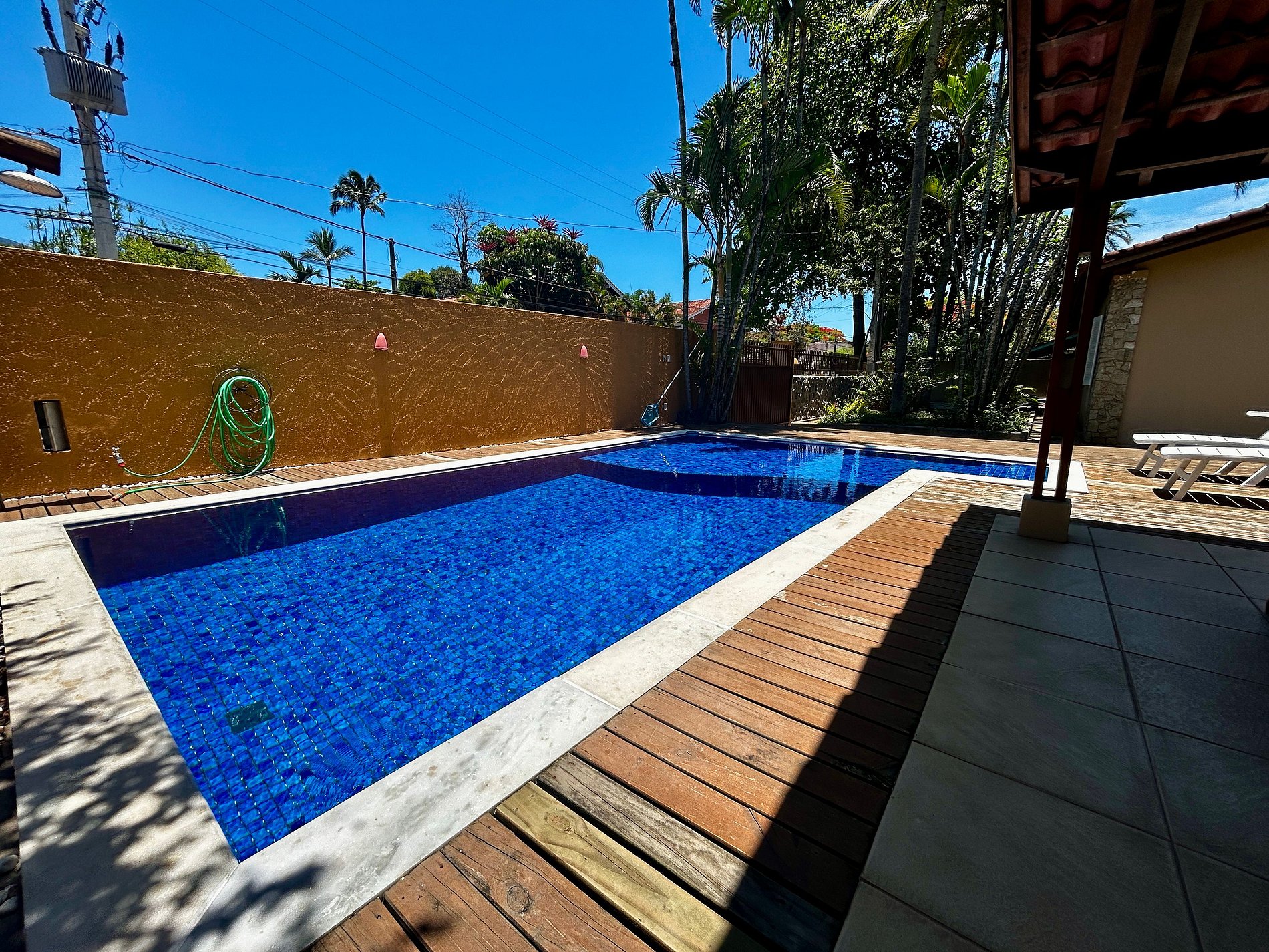 - Área externa deliciosa, com varanda, piscina, espreguiçadeiras, espaço gourmet com churrasqueira e jardim. Ideal para descansar e curtir dias incríveis entre amigos e familiares;