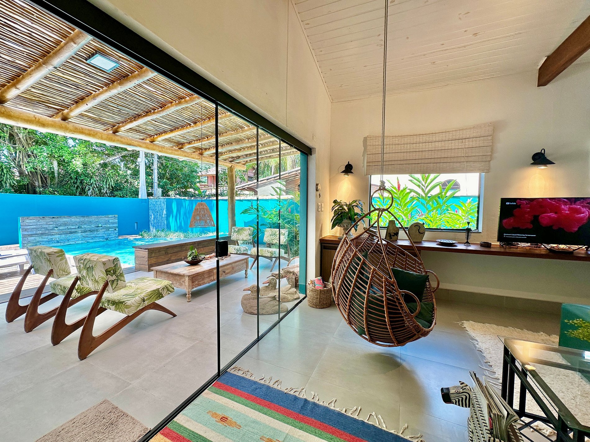 - A área externa é incrível, com varanda confortavelmente mobiliada, churrasqueira, jardim e piscina com espreguiçadeiras. Lugar perfeito para vivenciar momentos incríveis junto a familiares e amigos;