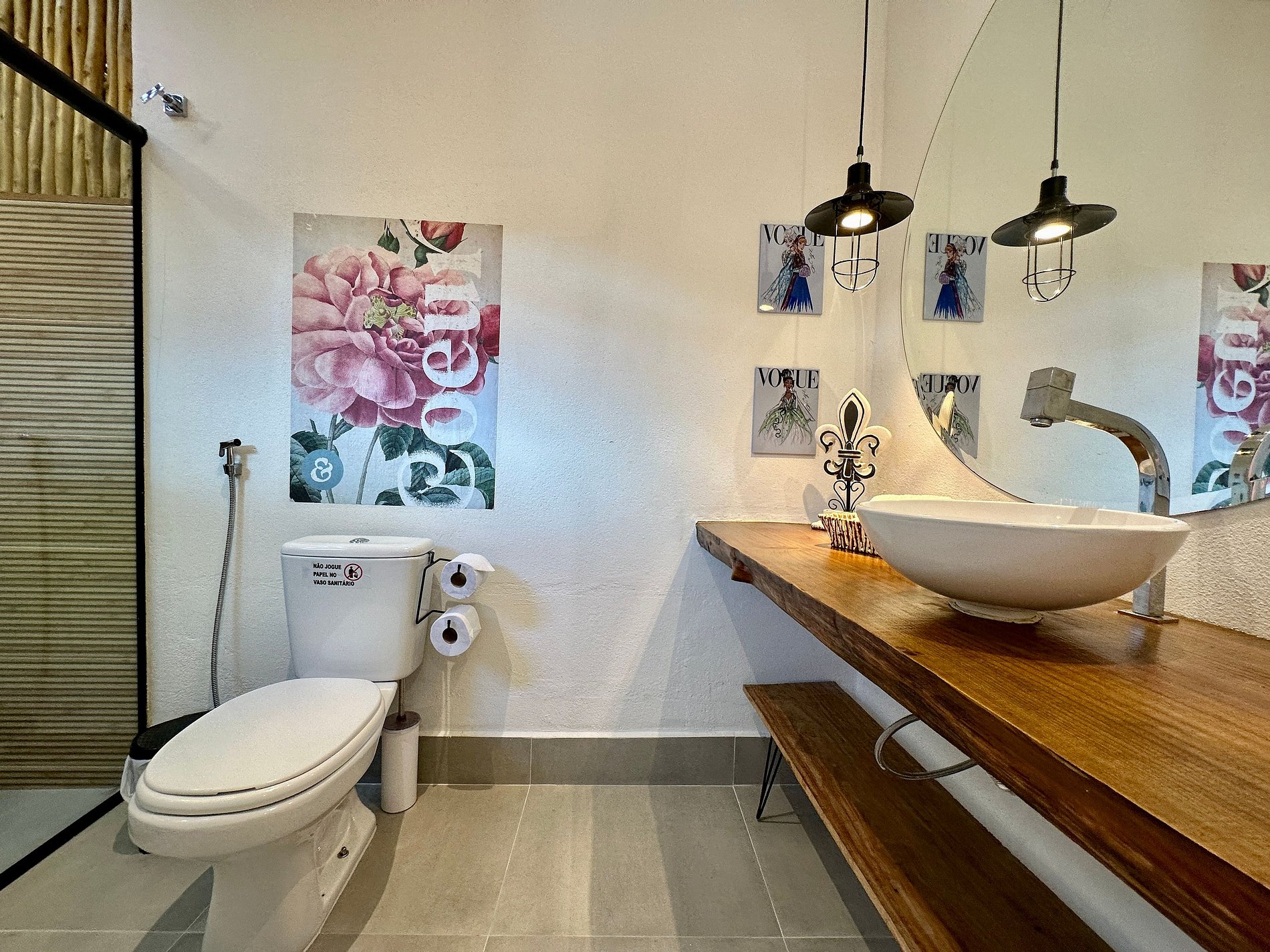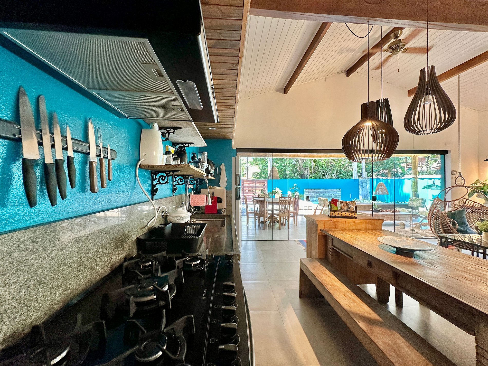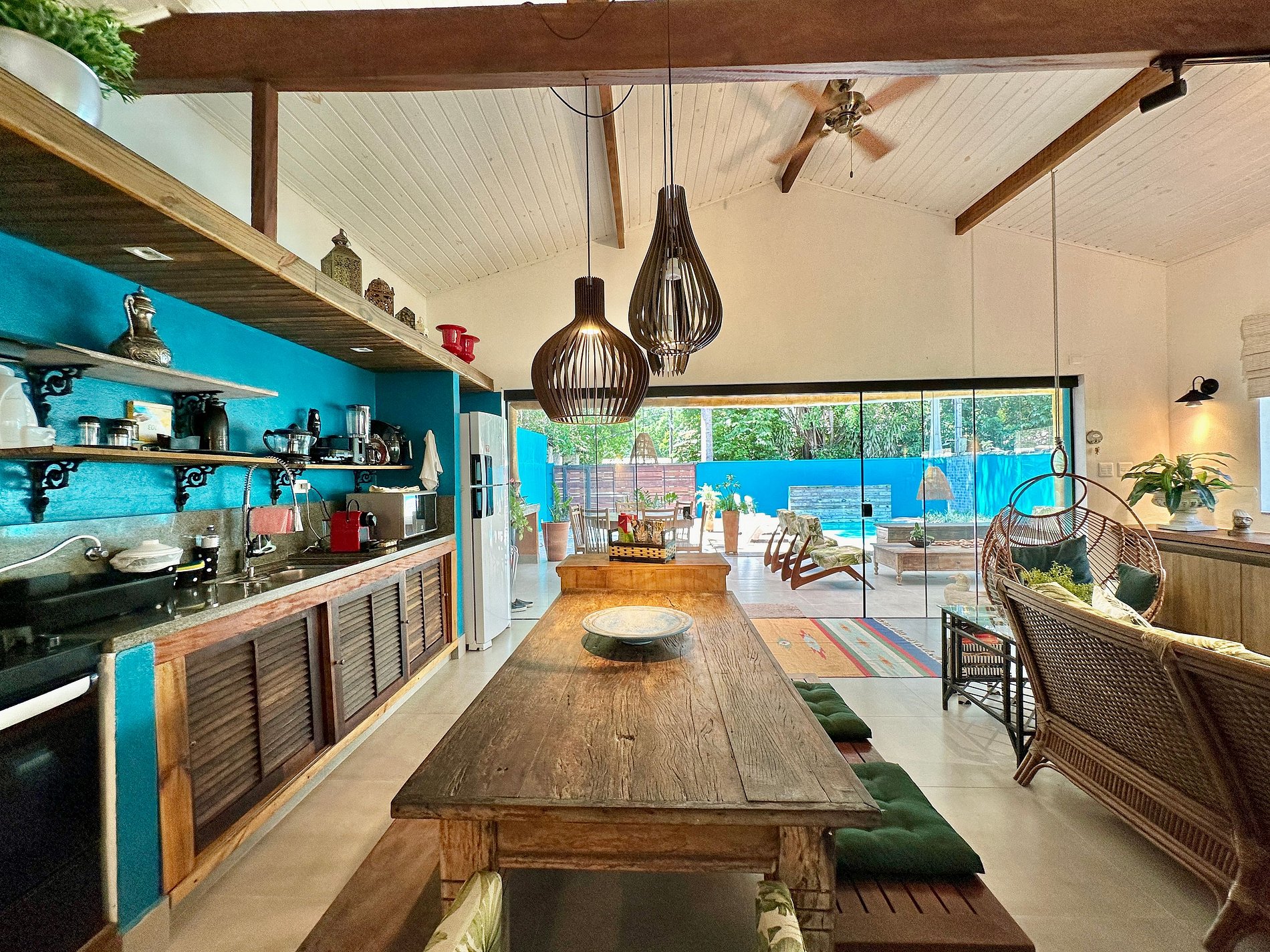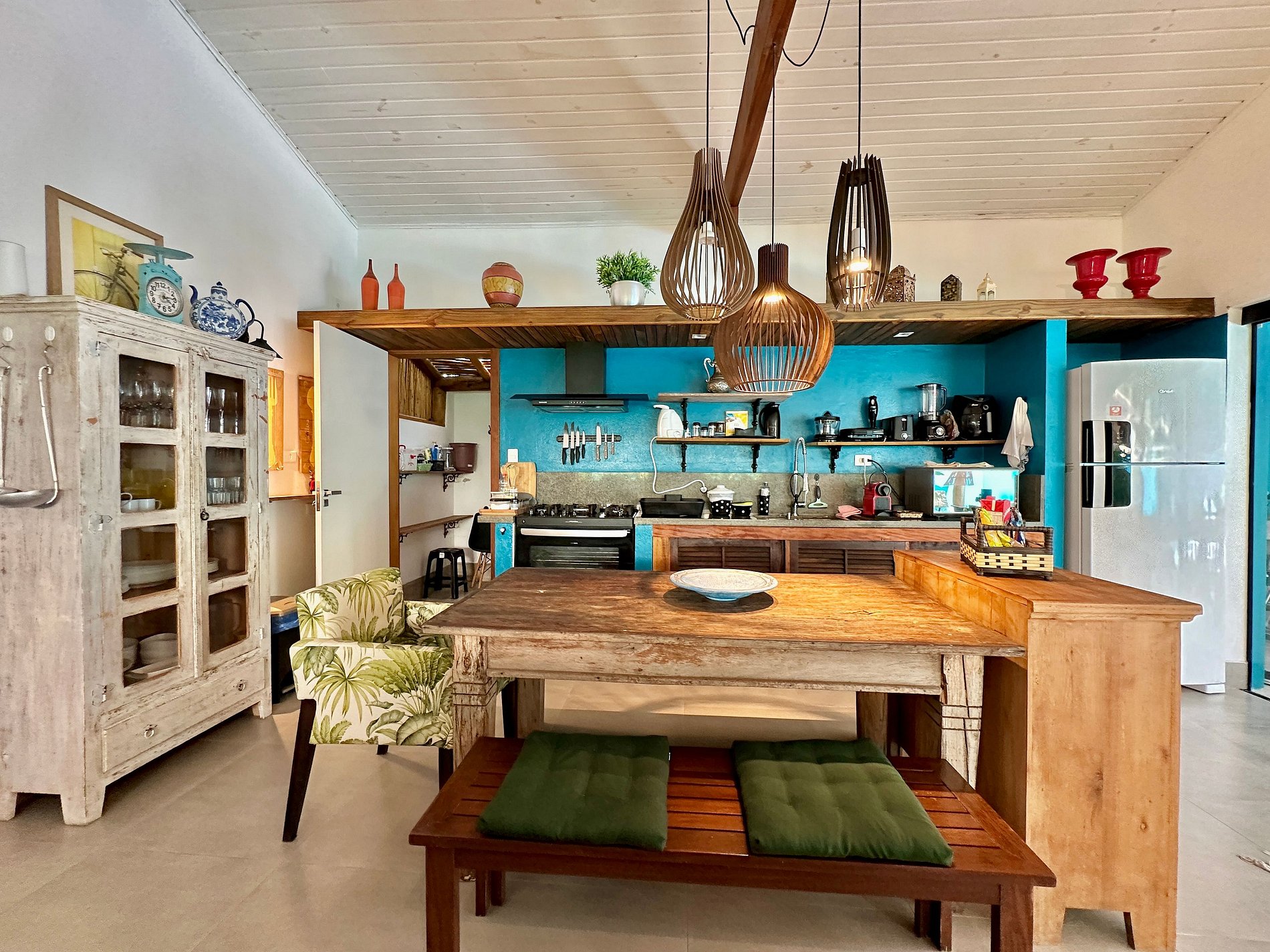 - Ambiente social muito aconchegante, com ventiladores, lavabo, sala de estar, TV, jantar e cozinha integradas;