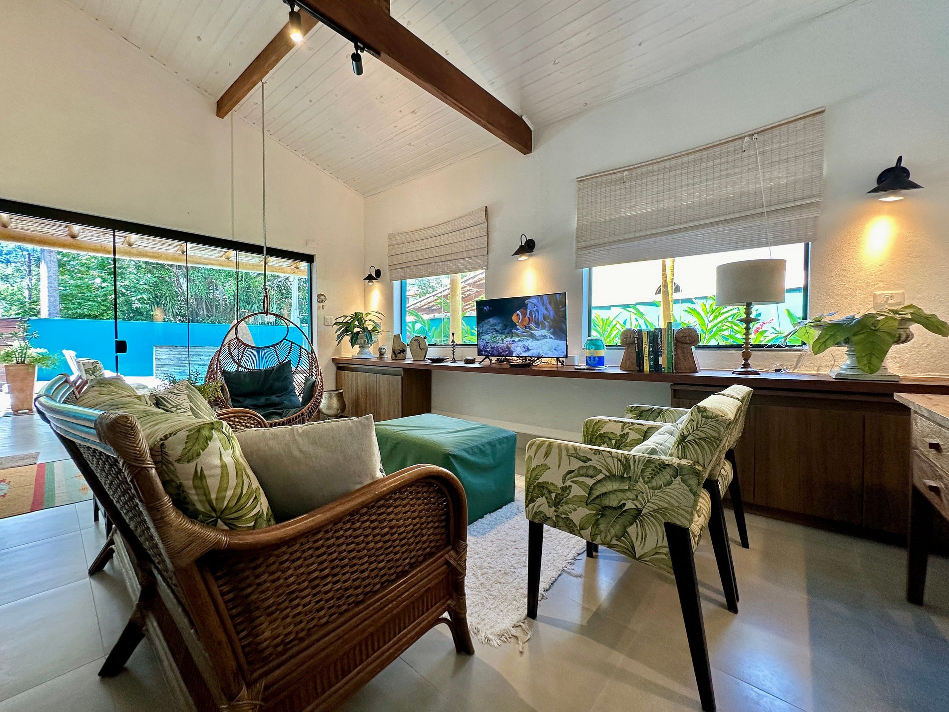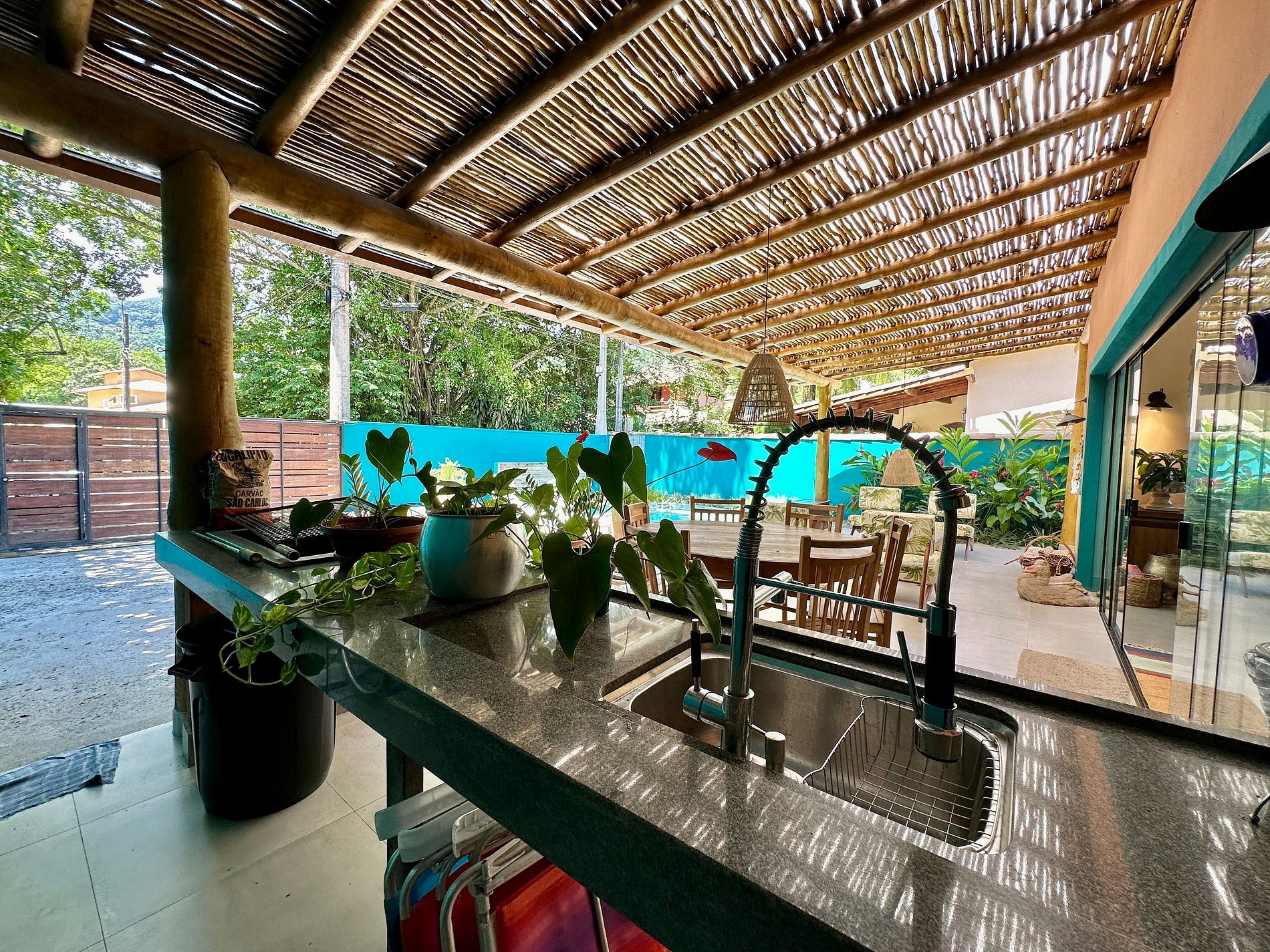 Creo que es la casa perfecta en Ilhabela. Ubicada en el mejor sector, Perequé, donde hay restoranes, playas, bares, mall y lo mejor es que esta muy cerca de todo, pero lo suficientemente alejado (500m, a 5 minutos caminando) para que no moleste el ruido y uno pueda descansar.