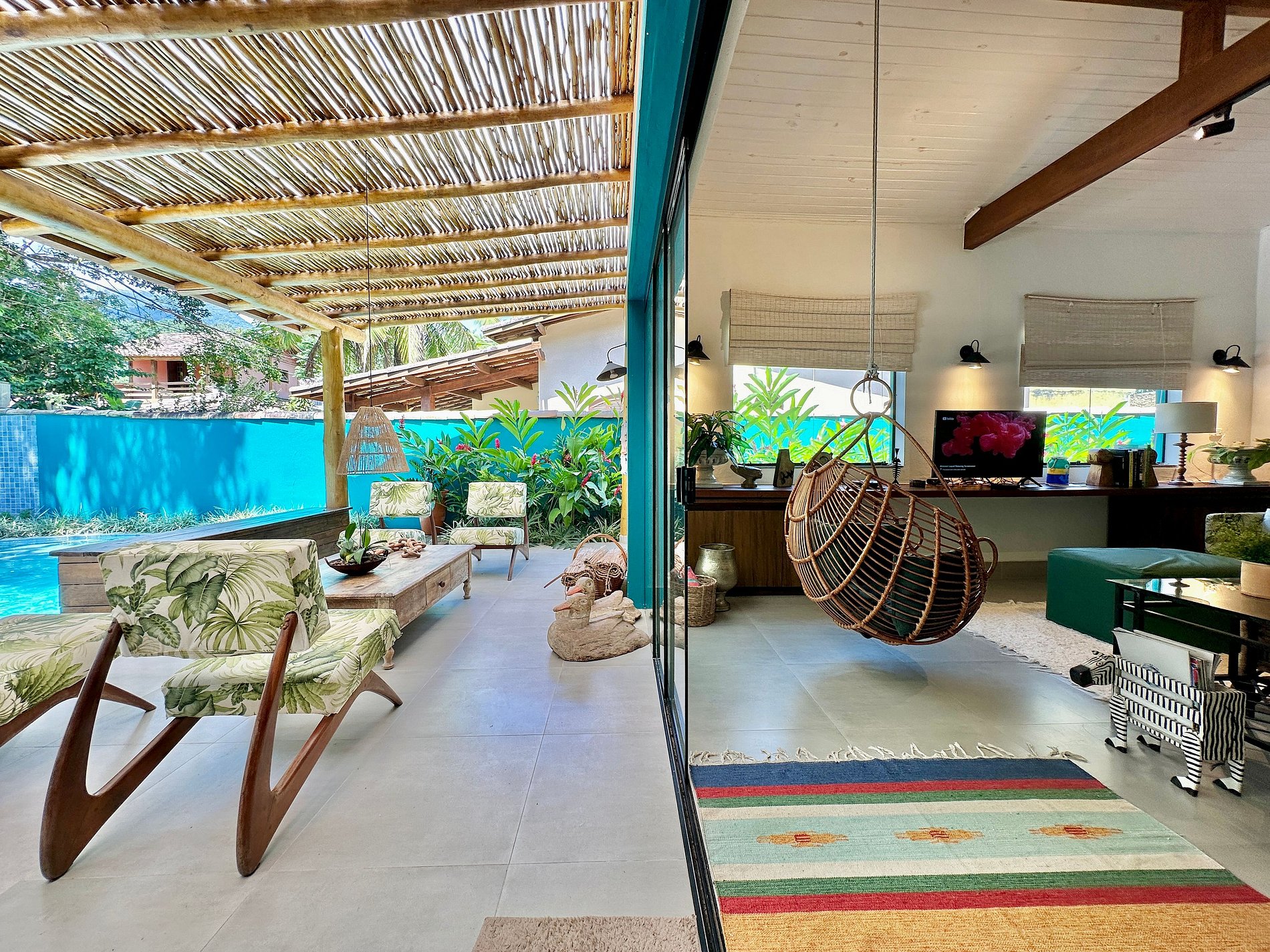 Imagine se hospedar com conforto e tranquilidade no centro de Ilhabela? Essa é a casa perfeita! Está no Perequê, a 500m da praia e a 6 minutos do centrinho do Perequê, onde estão bares, restaurantes e o shopping local. Ideal para 8 pessoas. São 4 suítes, todas com ar-condicionado. Área externa com bela varanda, churrasqueira, piscina e jardim. Área interna aconchegante, em ambiente integrado, com sala de estar, jantar, cozinha e uma decoração de muito bom gosto. Conta ainda com Wi-fi e Smart TV.