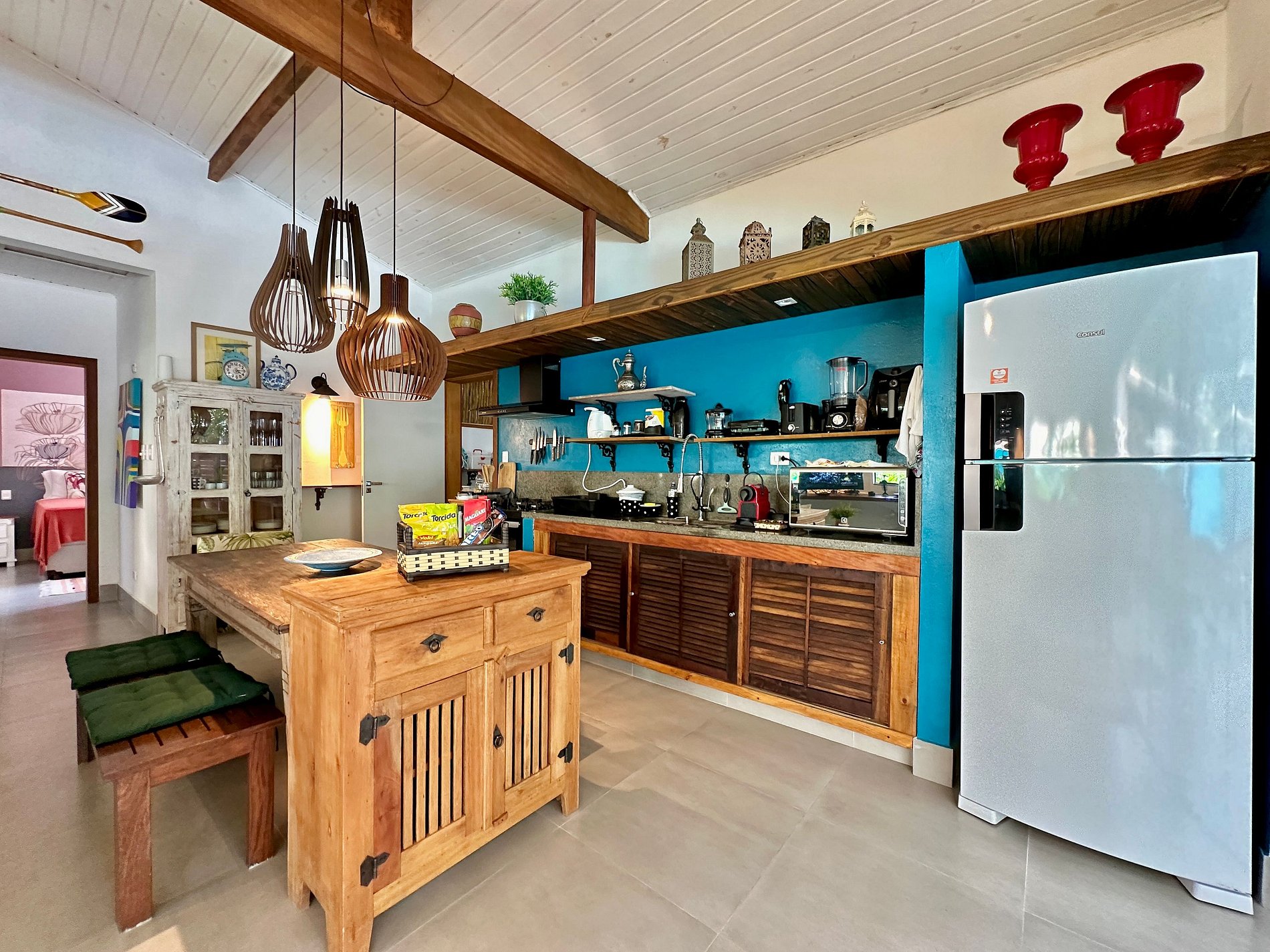 - Cozinha completa que disponibiliza: fogão, forno, geladeira com freezer, micro-ondas, filtro de água, liquidificador, torradeira, Airfryer, cafeteira nespresso, louças, talheres e demais utensílios para uma ótima estadia;