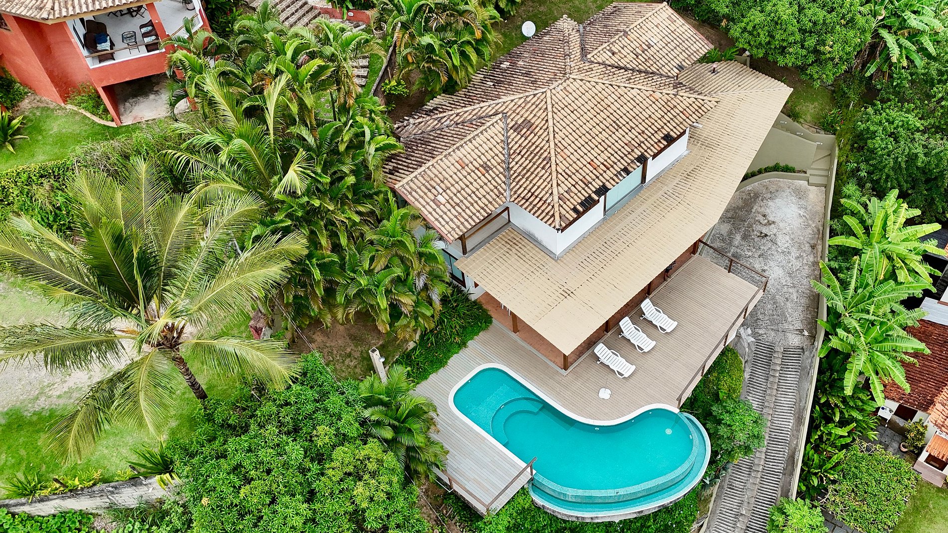 - A área de lazer é integrada à parte interna da casa, o que faz com que os hóspedes tenham ótimos momentos juntos. Os tons de azul da piscina, misturam-se com o céu e o mar. À noite as luzes da piscina podem ser acesas e o visual fica ainda mais belo. O deck é amplo, confortável e muito bem planejado;