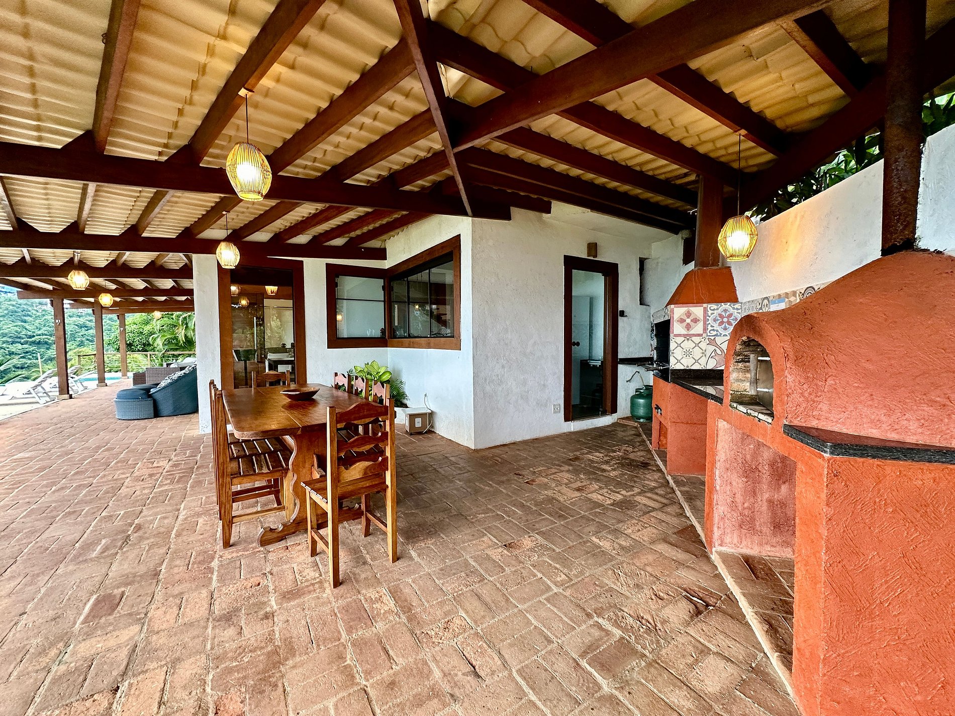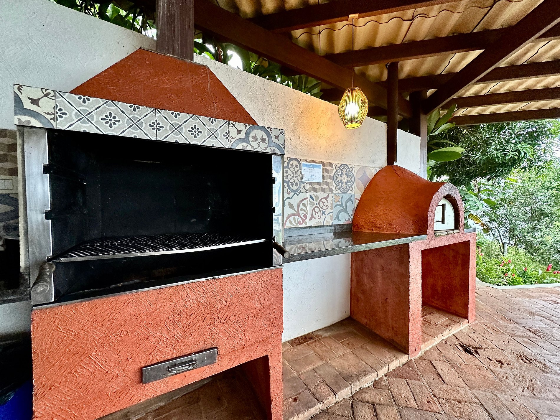 - Ainda na parte externa, a casa conta com churrasqueira e forno de pizza;