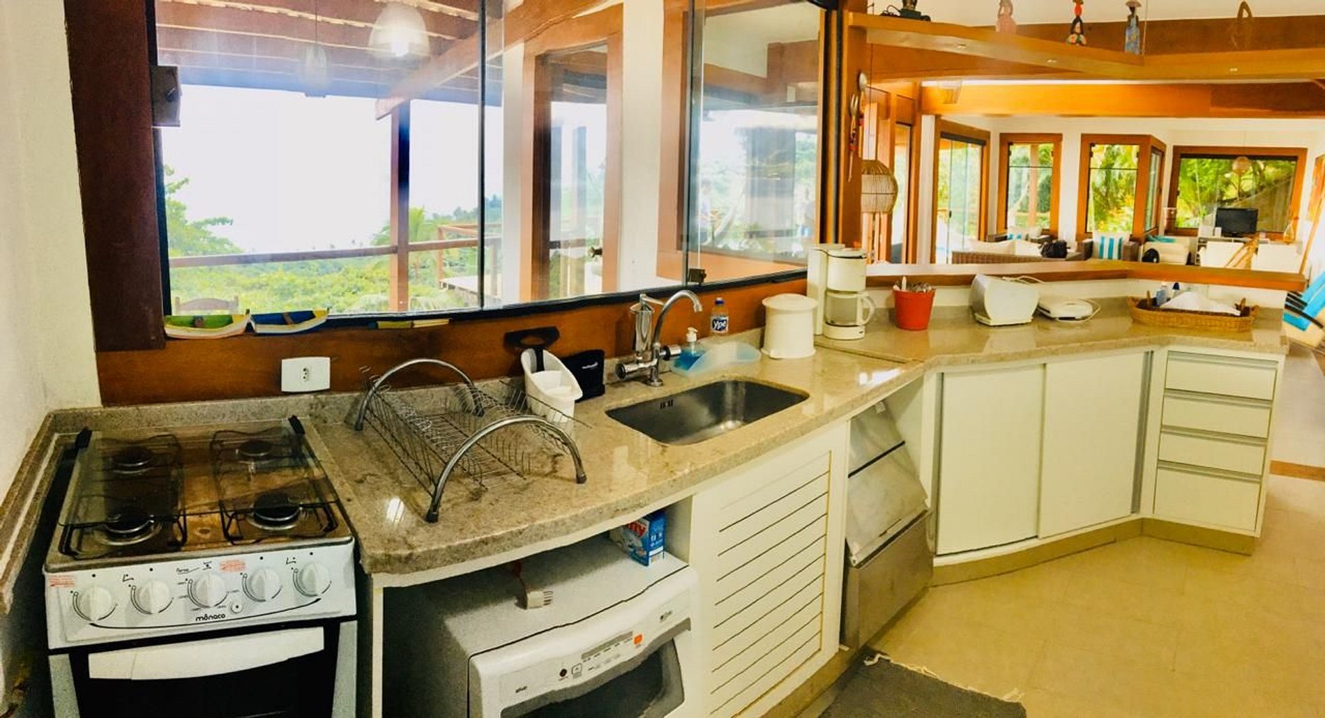 A casa tem uma das vistas mais lindas da ilha, porém é de difícil acesso com uma rampa que exigi muita atenção do motorista e potência do carro. Depois de estacionar vc não vai querer ficar saindo de carro. Existem várias opções de delivery para sua comodidade. A casa necessita de algumas manutenções importantes, havia cupim nos quartos, o ar condicionado de um deles não estava funcionando e a máquina de gelo tb. De resto nossa estadia foi maravilhosa!