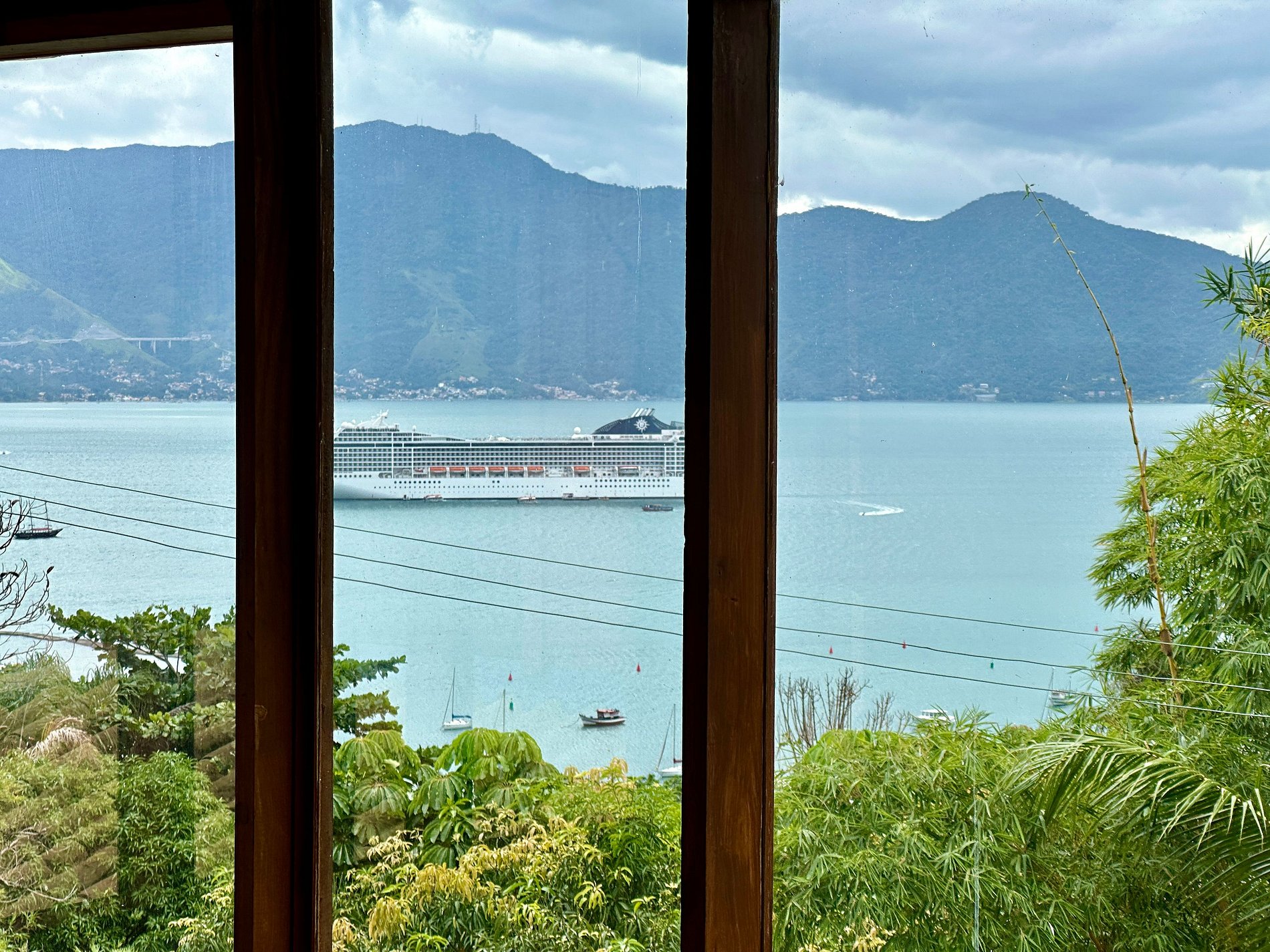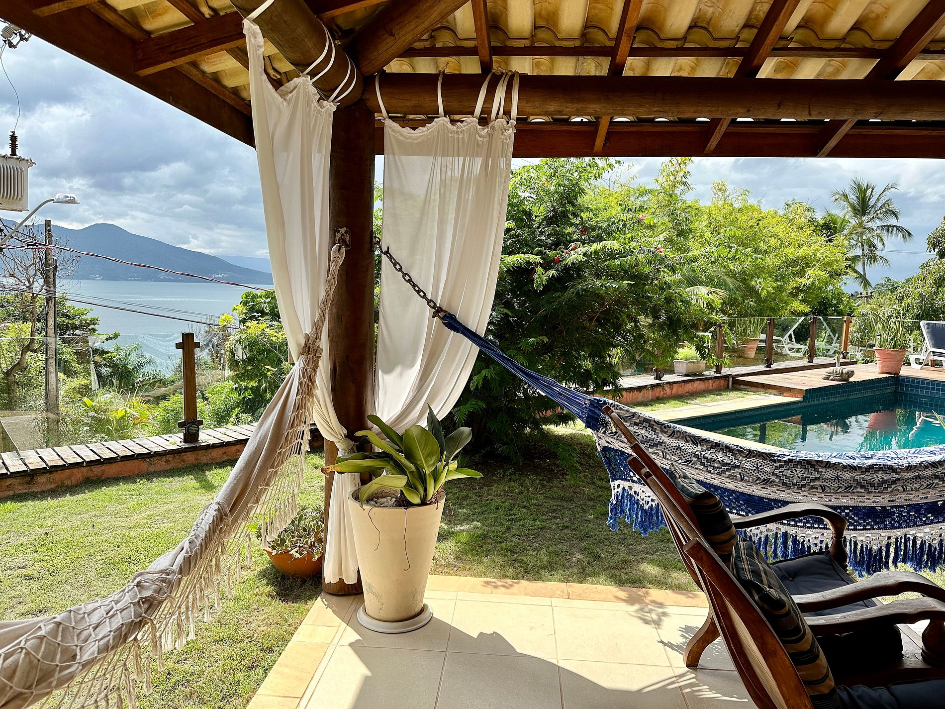 - A porta lateral da sala dá acesso à uma linda varanda com redes e um ambiente de estar muito aconchegante, ideal para descansar e curtir o visual sensacional da baía;