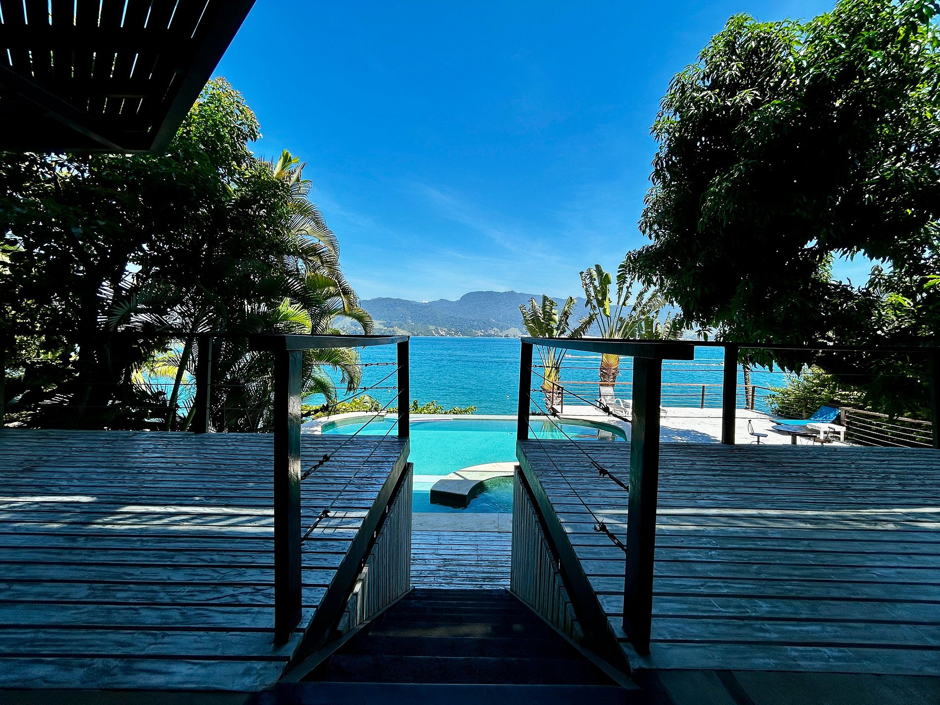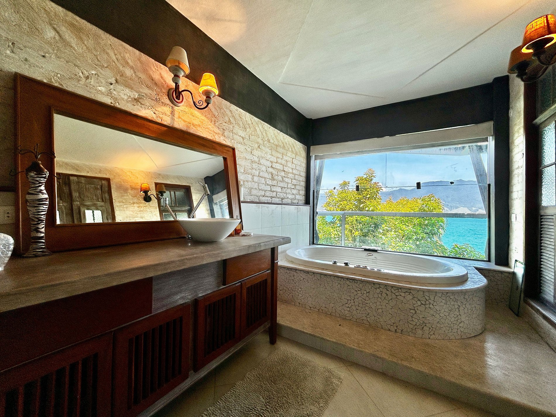 Uma das costeiras mais cobiçadas do Sul de Ilhabela! Casa ampla e confortável à beira-mar, no bairro do Piuva, com 6 pavimentos, integrada à natureza e com um visual de tirar o fôlego! O mar é visto de todos os cômodos. Ideal para 11 pessoas. São 5 suítes, todas com ar-condicionado. Salas de estar, jantar, TV e cozinha, em ambiente integrado e climatizado. Smart TV e Wi-fi. Varandas, piscinas adulto e infantil, amplo deck de madeira, espreguiçadeiras, guarda-sóis e acesso ao mar pela costeira.