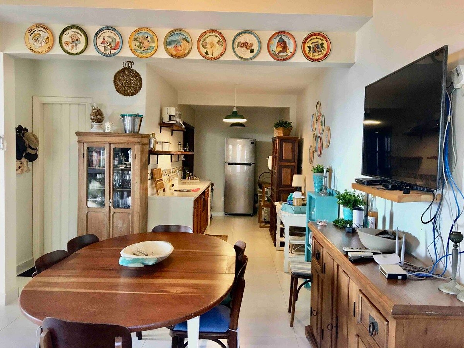 - sala de estar, jantar e cozinha completa e bem equipada;